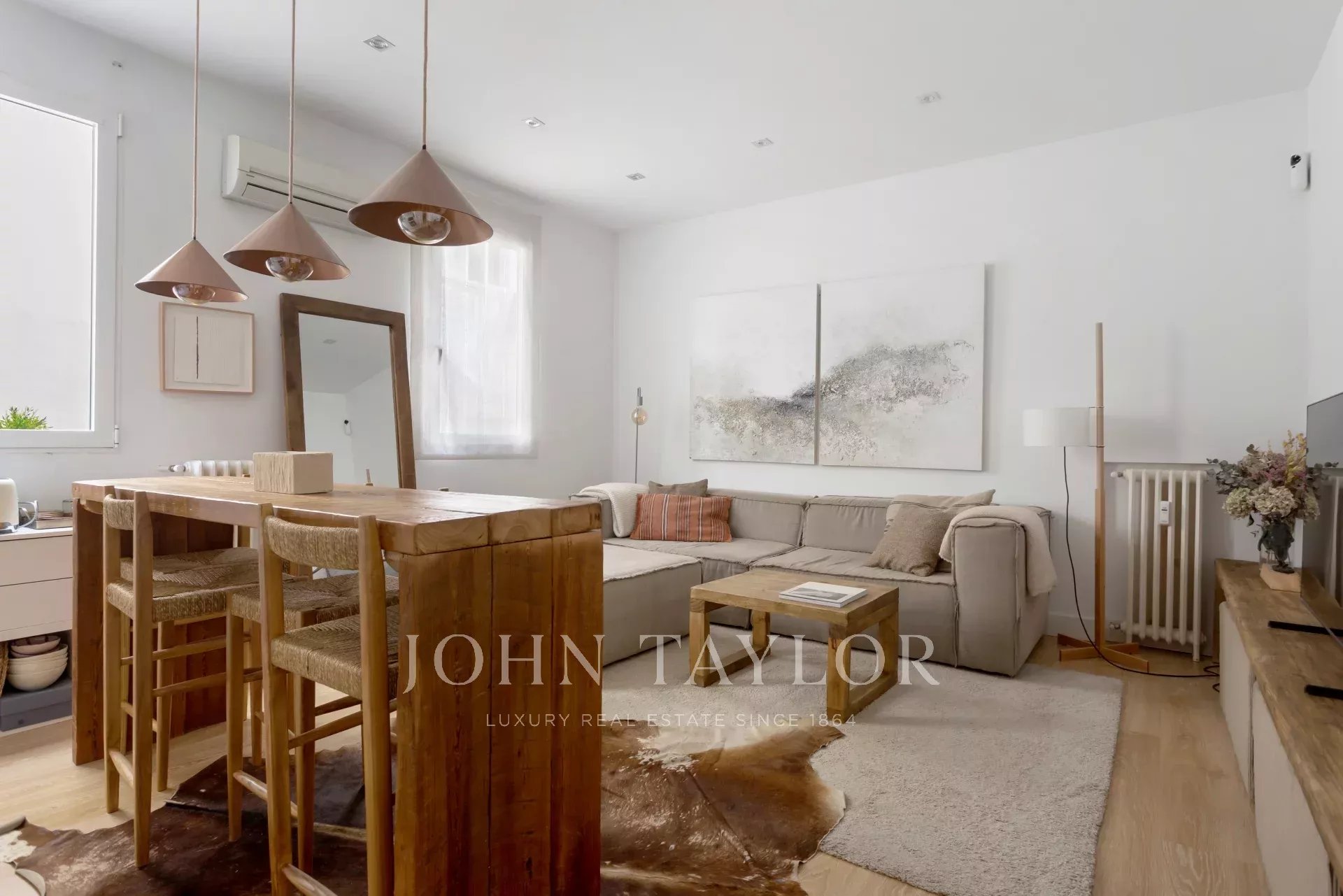 Este apartamento com dois quartos e duas casas de banho privativas foi totalmente remodelado com cuidado, aproveitando ao máximo cada espaço, misturando funcionalidade e estilo.