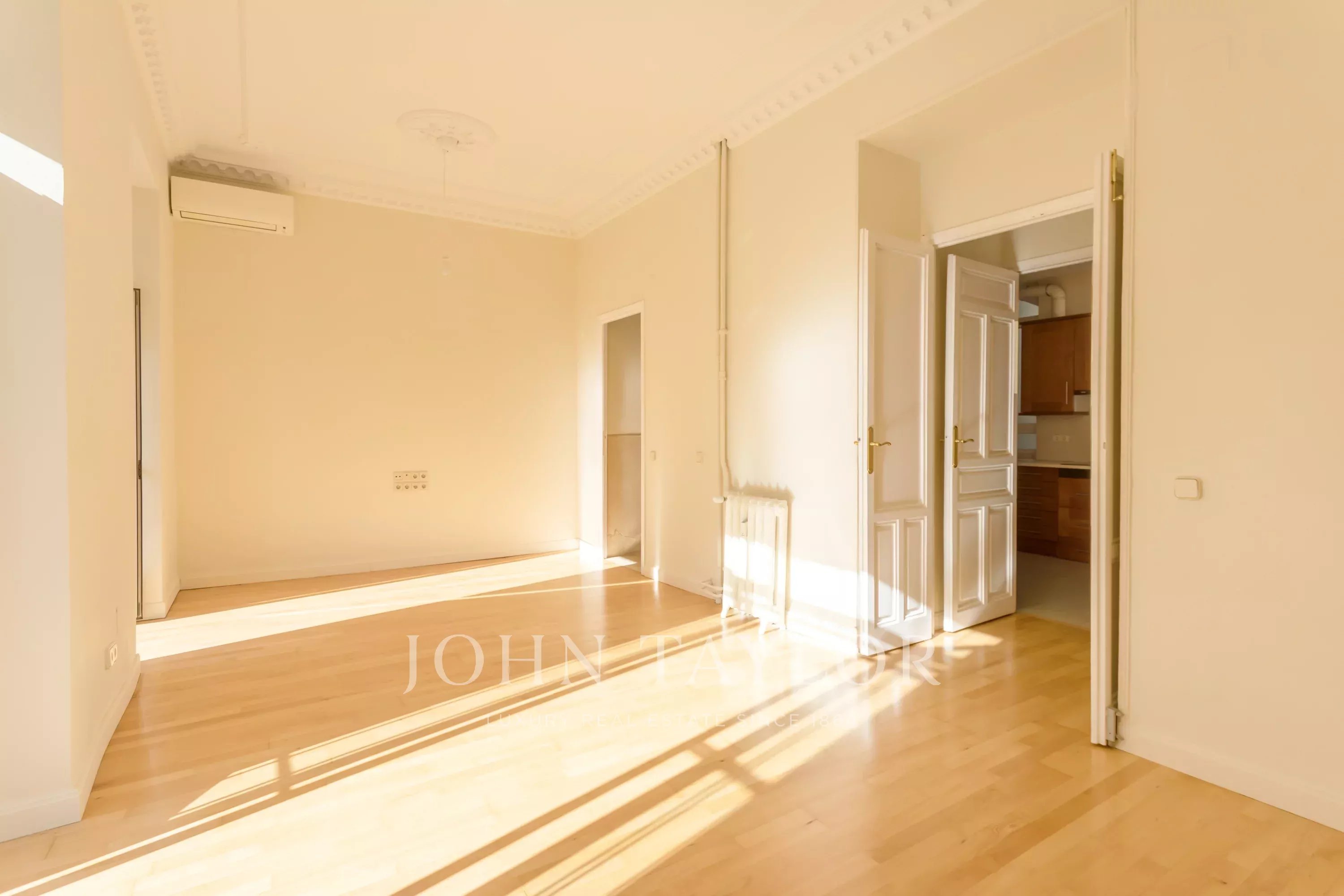A propriedade tem uma área construída de 193 m² e um pátio exterior de 20 m² de uso exclusivo, distribuído por três quartos, uma ampla sala de estar e jantar, uma cozinha independente, duas casas de banho completas, um corredor central que organiza a distribuição e separa as zonas diurnas e nocturnas. Destacamos os seus tectos altos de 3,30 metros com ornamentos clássicos típicos do bairro de Salamanca, as suas divisões são luminosas com muitas janelas que permitem uma ventilação extraordinária em toda a casa.