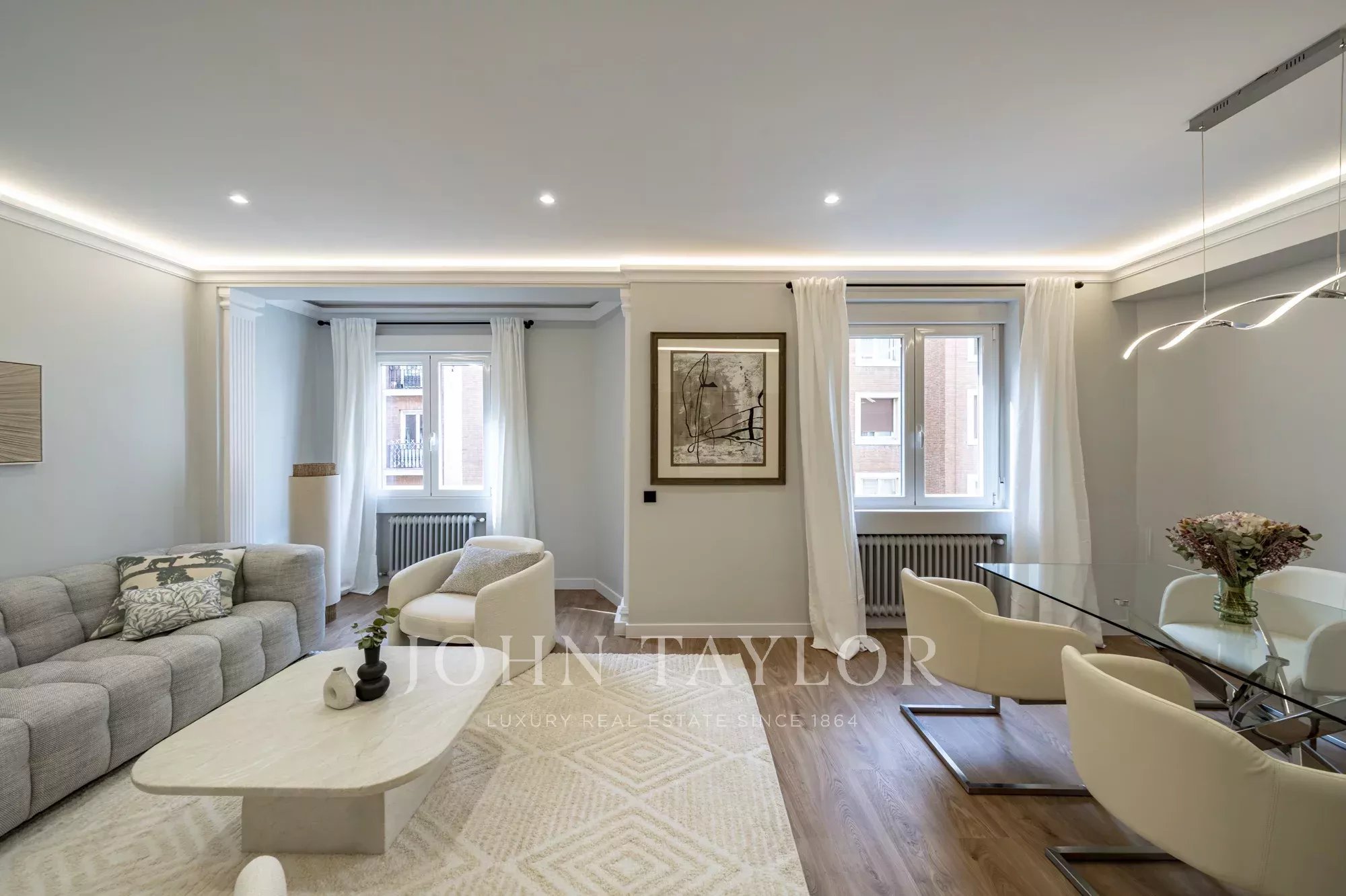 Apresentamos esta propriedade exclusiva de 111 m² situada numa das zonas mais prestigiadas de Madrid, no coração do bairro de Salamanca, Barrio de Lista.