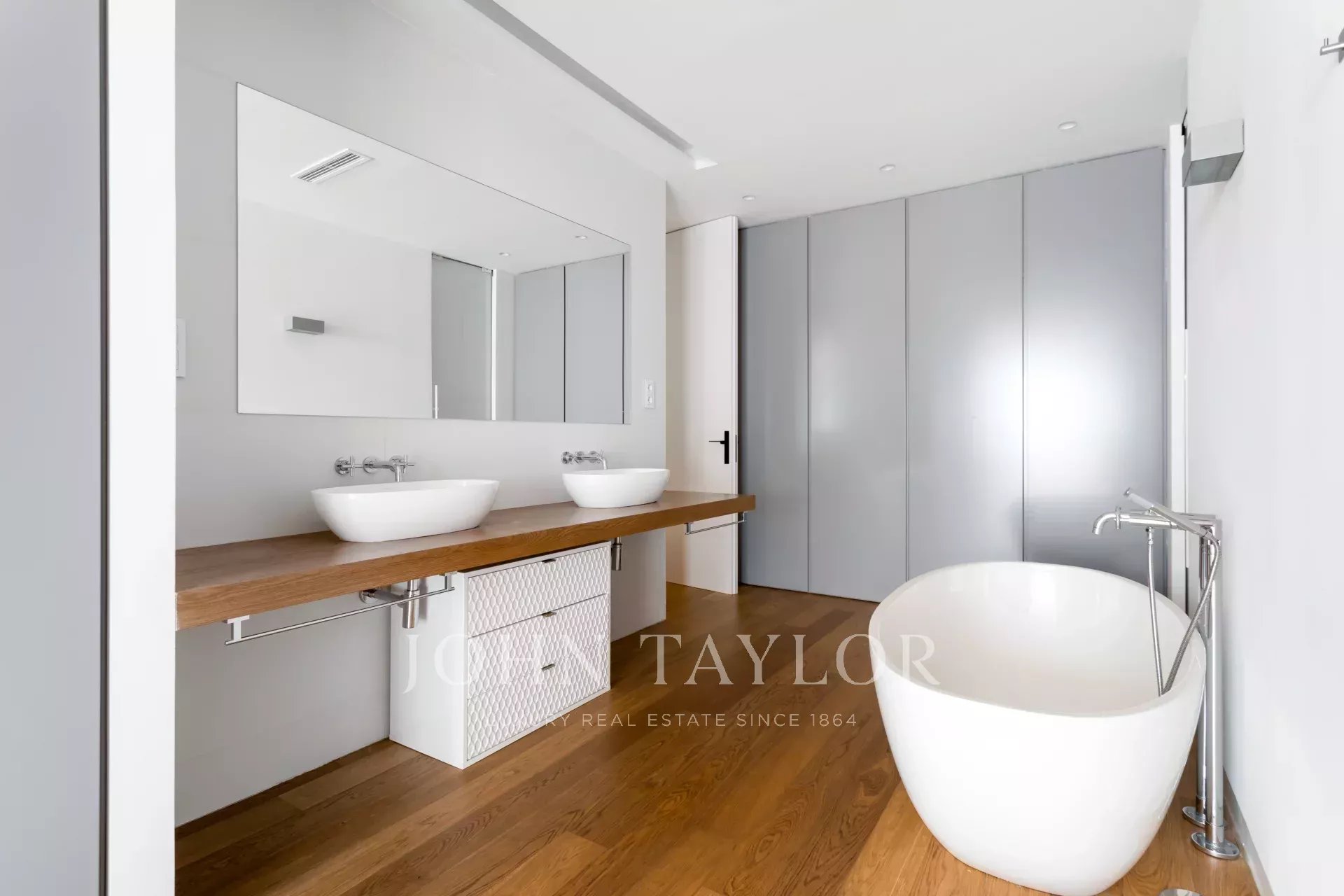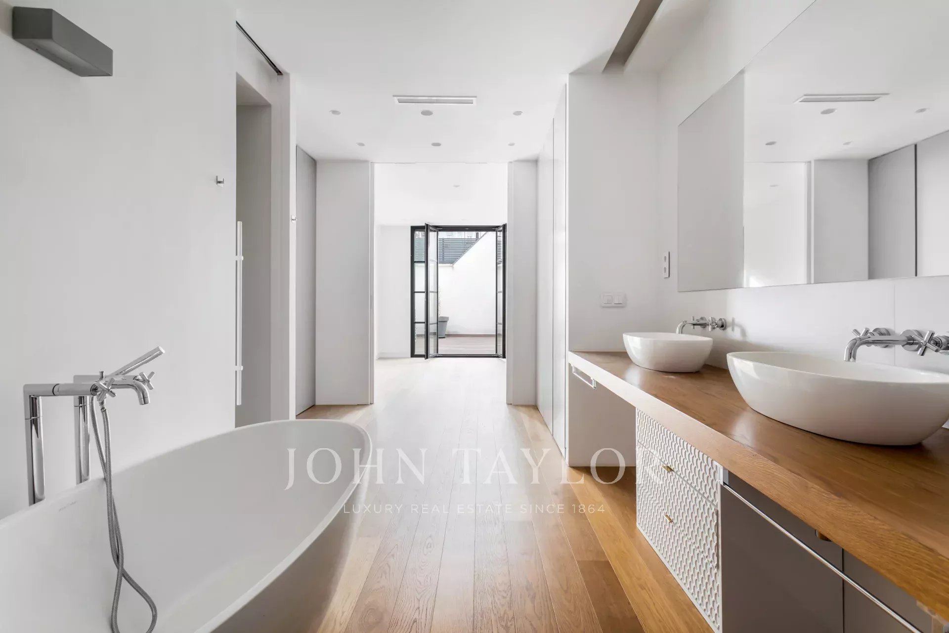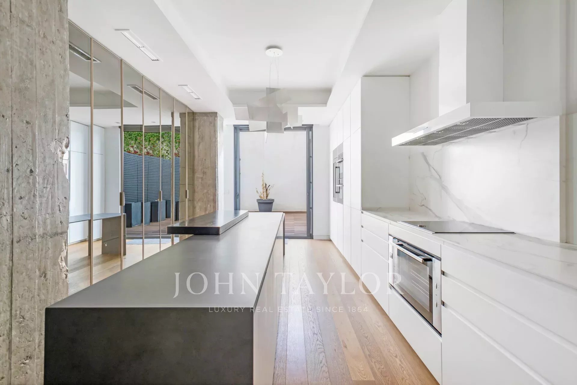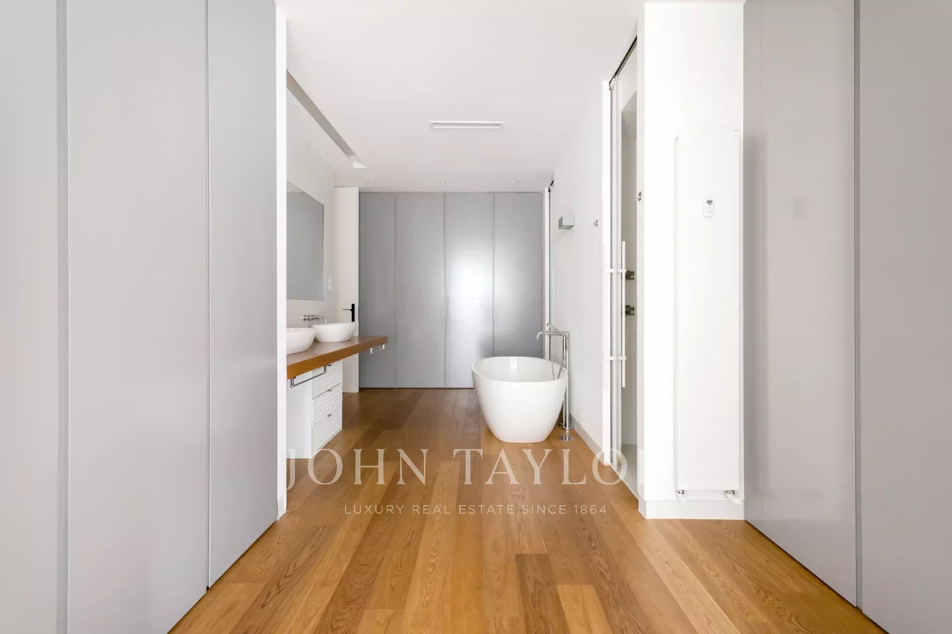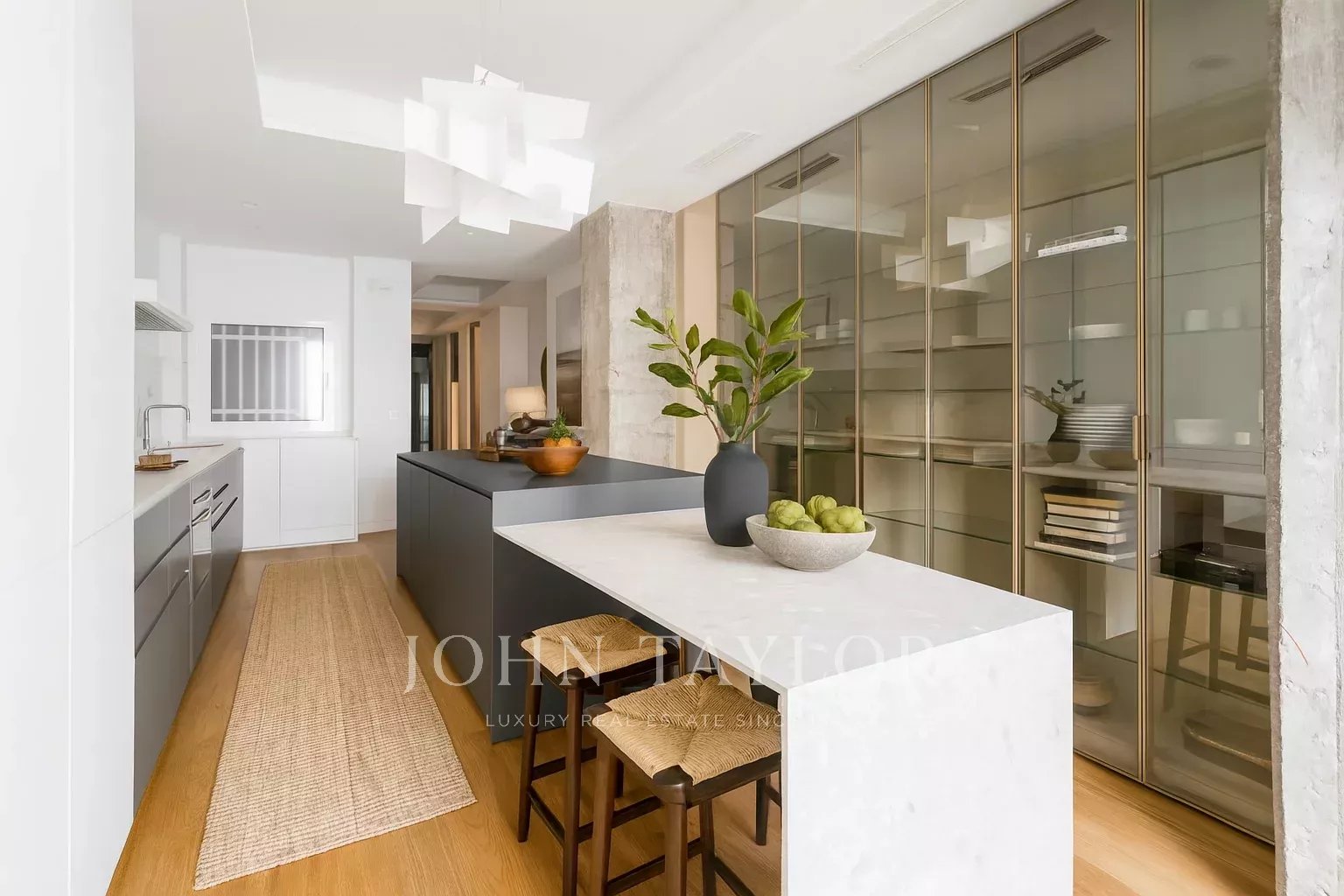 Distribuído numa ampla sala de estar com vista para a rua, tem 4 quartos, todos en-suite, e uma casa de banho de hóspedes. A cozinha está totalmente equipada com electrodomésticos de marca de topo, uma grande ilha e uma adega de vinhos.