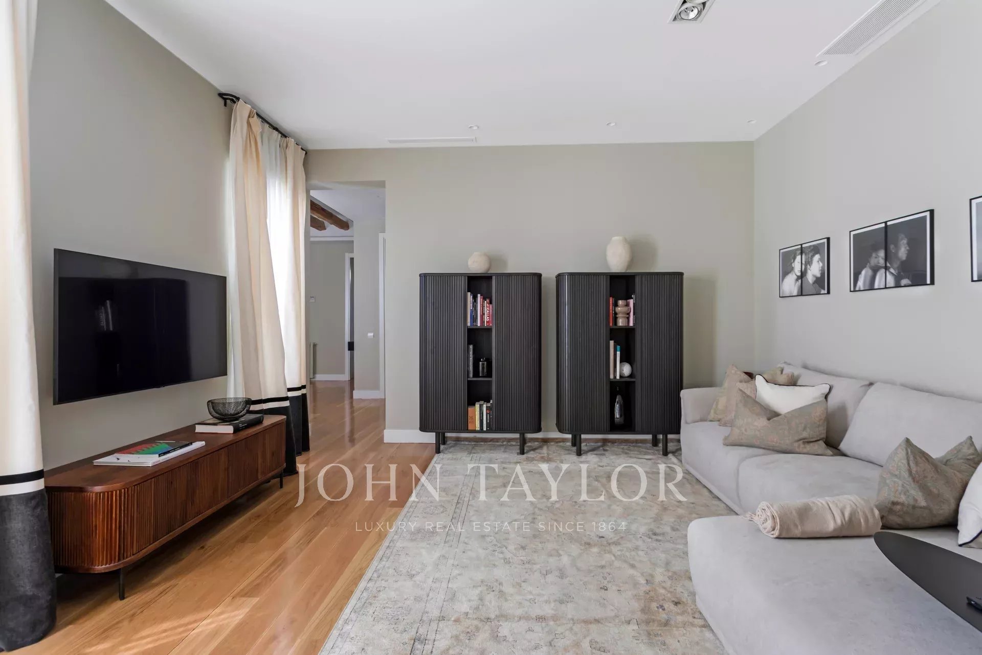 Imediatamente ao entrar, recebemo-nos com um hall espaçoso, cheio de luz que nos permite apreciar seus pisos de carvalho maciço, as vigas originais de madeira e seus teto de três metros de altura.