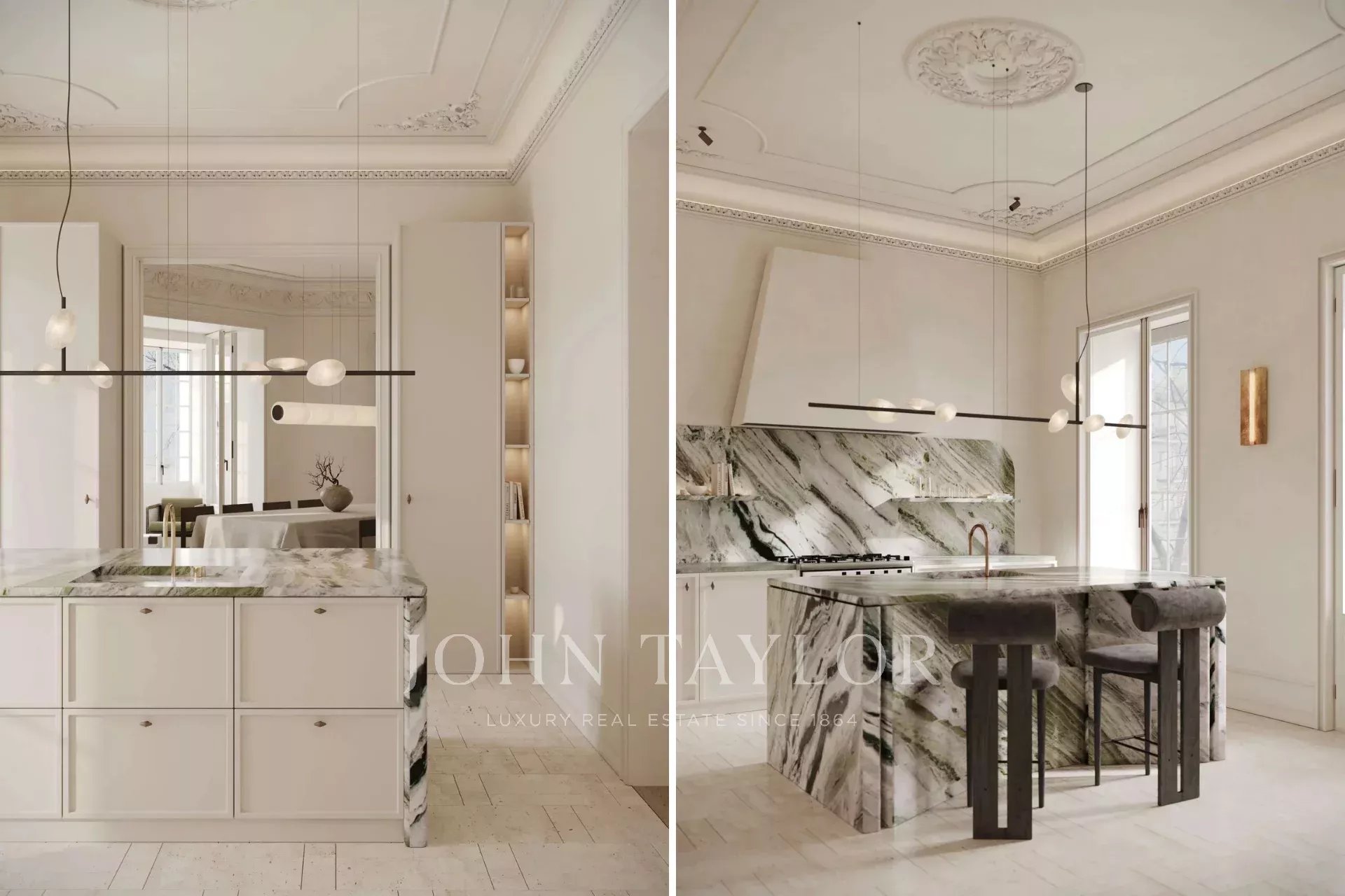 Graças à sua dimensão generosa e à excelente luz natural, existem inúmeras possibilidades de remodelação para adaptar este apartamento único ao gosto do comprador.