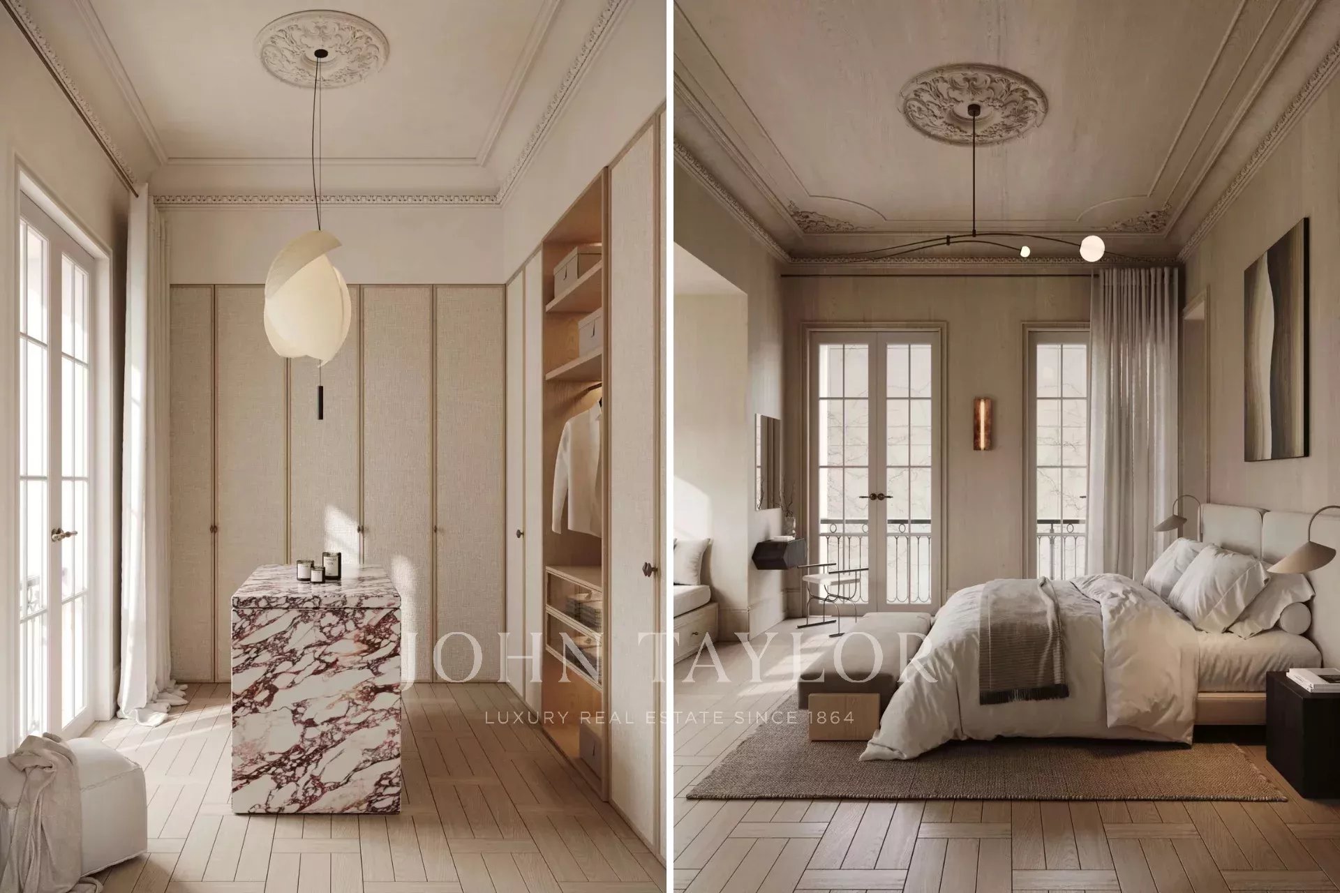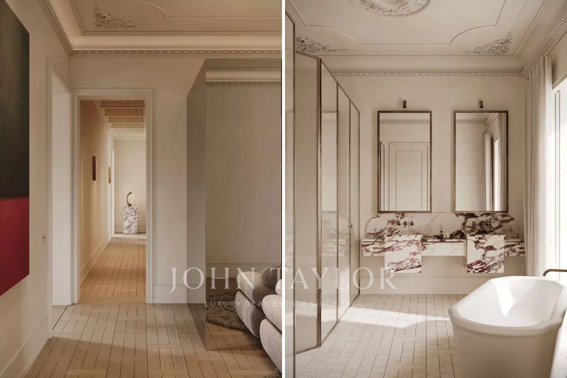 Um imóvel excecional que precisa de ser renovado. Situado na esquina do 2º andar de um belo edifício com uma fachada clássica, beneficia de duas orientações, 10 varandas para o exterior e tectos com 3,30 metros de altura.