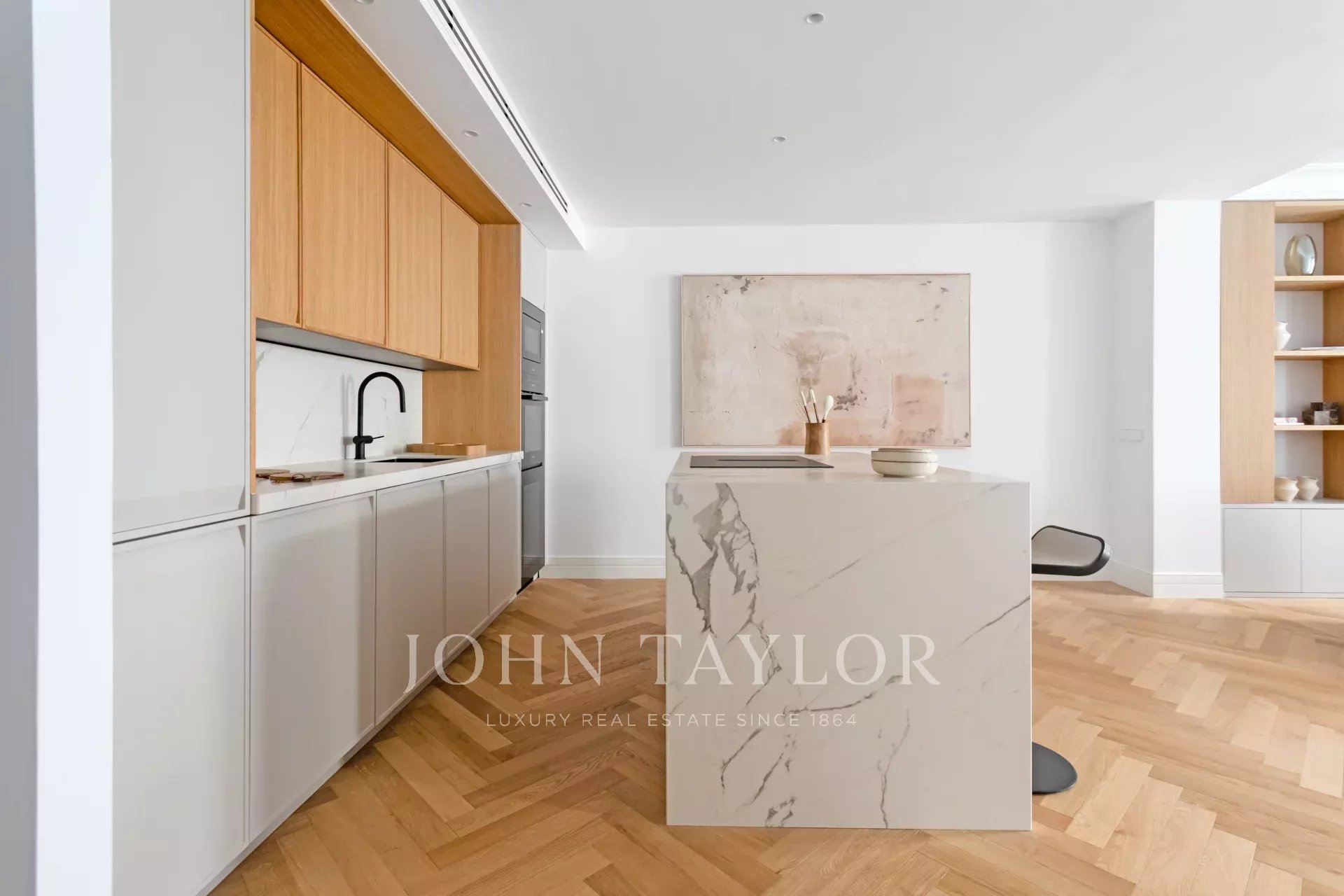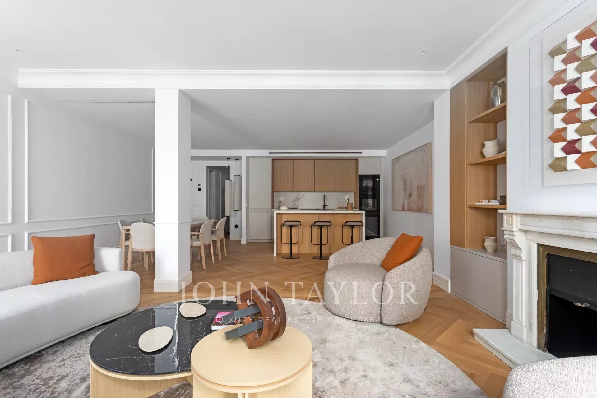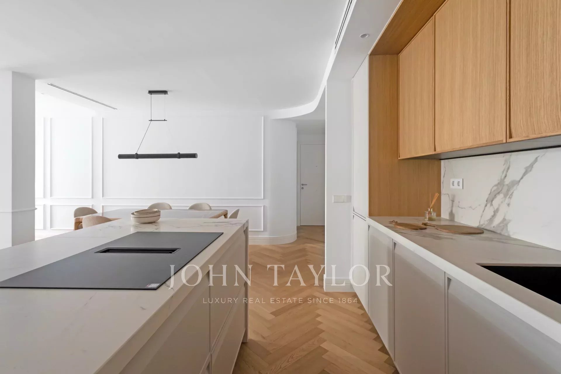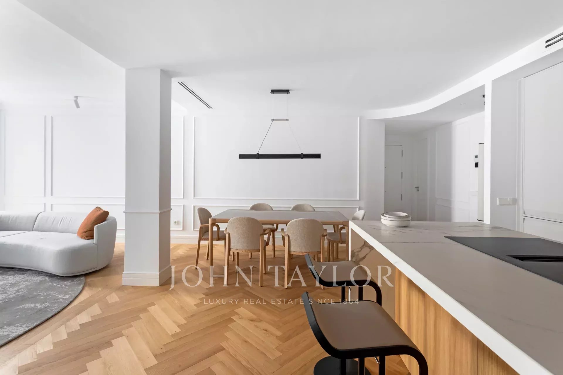 Situado no primeiro andar de um edifício clássico, o imóvel combina o encanto da arquitetura tradicional de Madrid com um design interior contemporâneo e funcional.