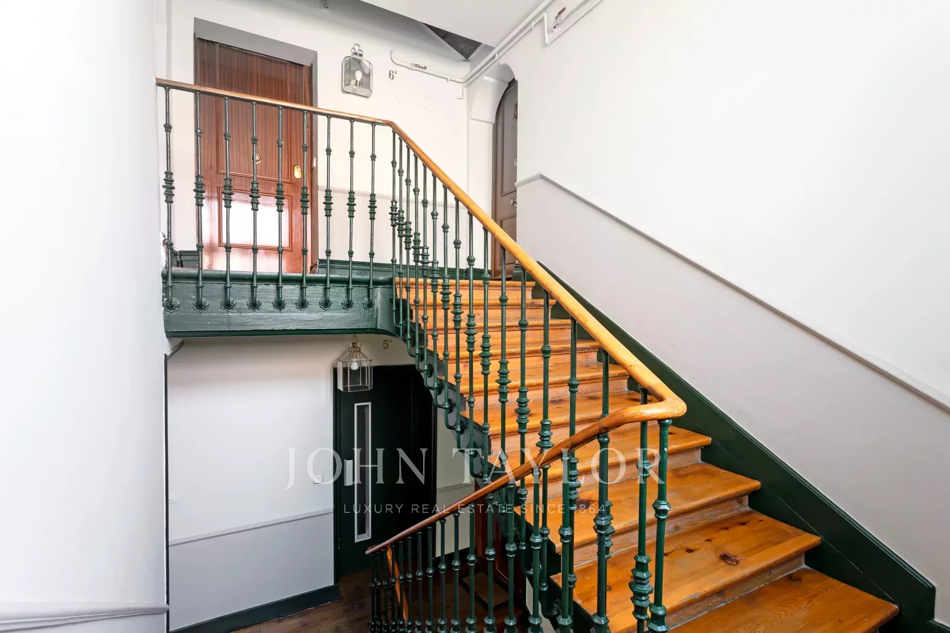 O edifício de estilo clássico data de 1897 e conserva uma entrada elegante e escadas de madeira protegidas. O elevador sobe até ao 5º andar.