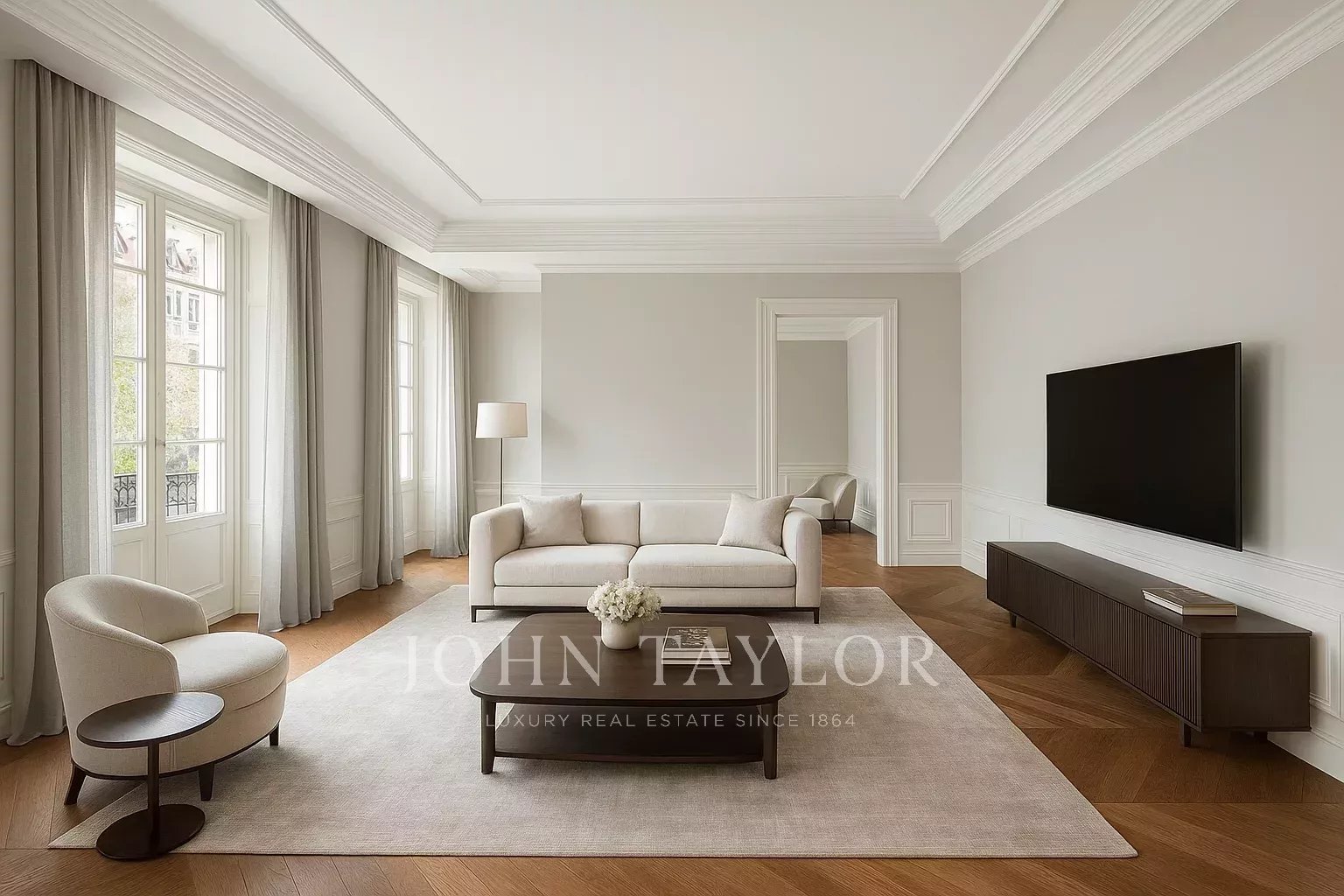 A sala de estar principal é um espaço aberto e luminoso, virado a sul, com acesso a quatro impressionantes varandas de grandes dimensões. A sala de estar tem ligação com a sala de jantar e o corredor.