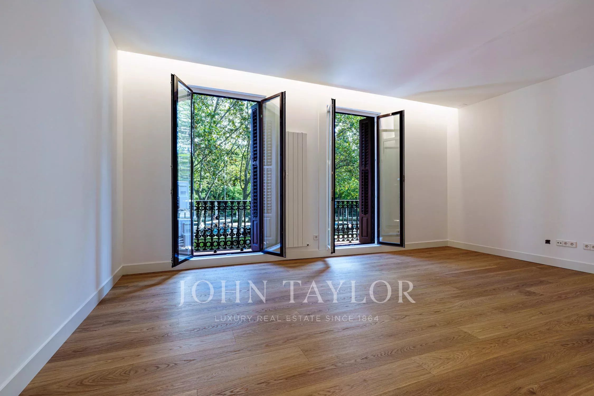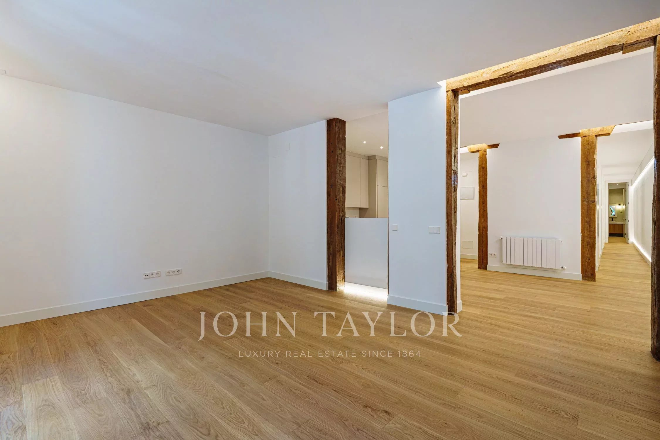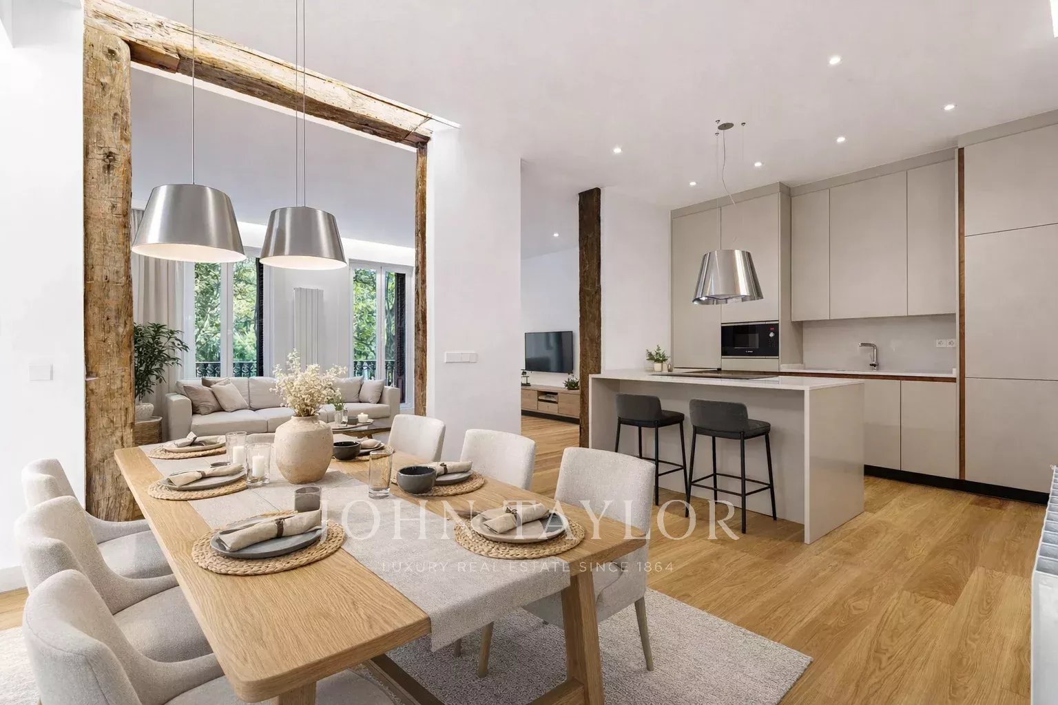 Situado no bairro de Cortes, este elegante apartamento de 152 m² oferece uma interpretação sofisticada da vida no centro de Madrid. Um espaço onde a amplitude, a luz natural e a qualidade de construção definem uma experiência residencial serena e intemporal.