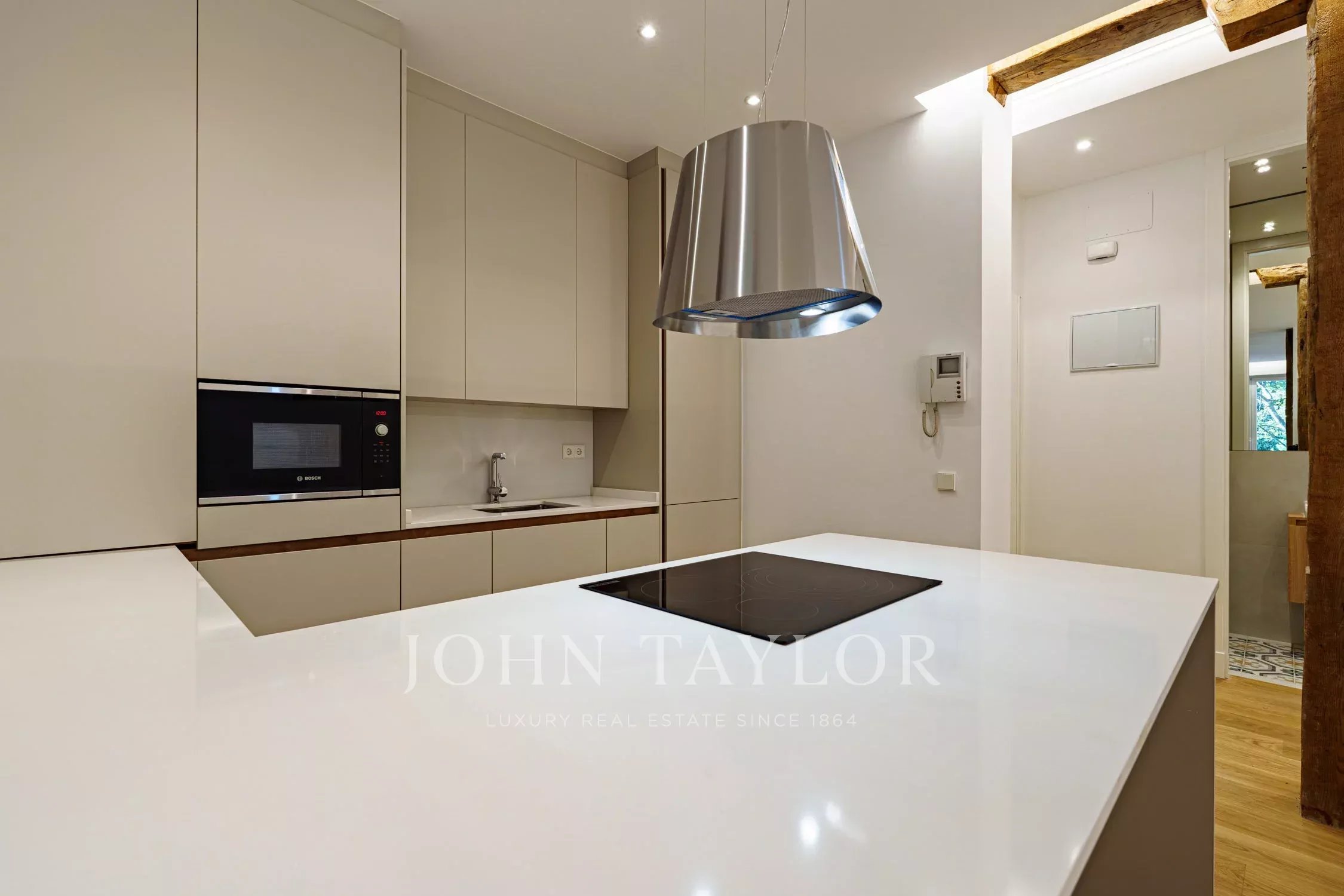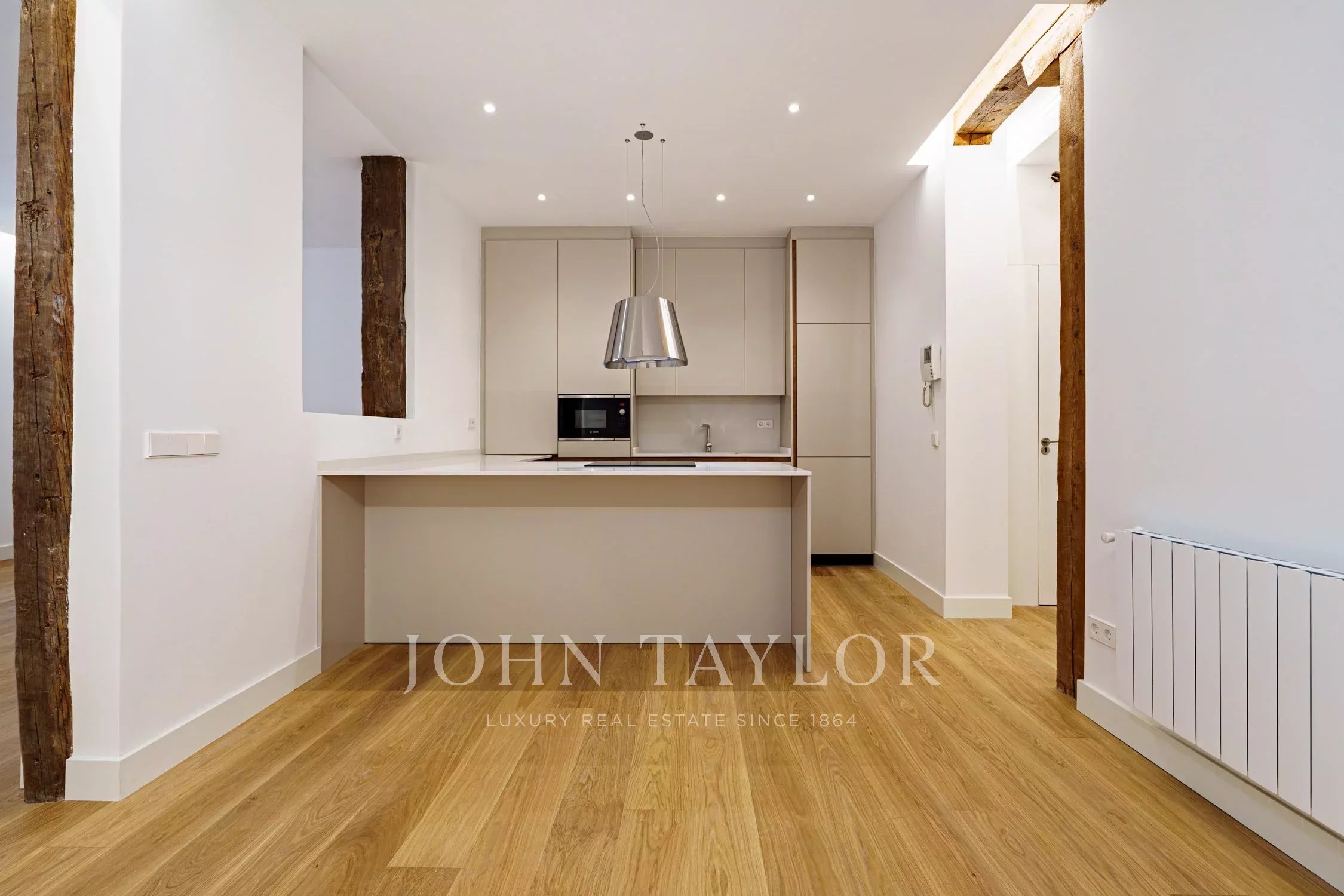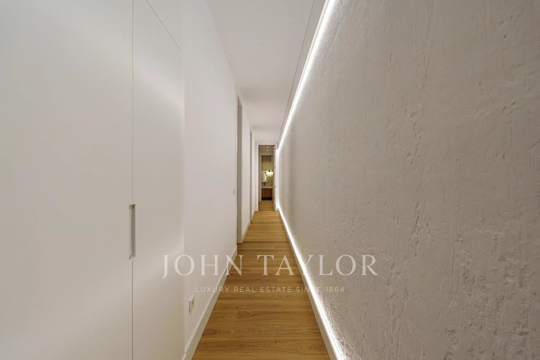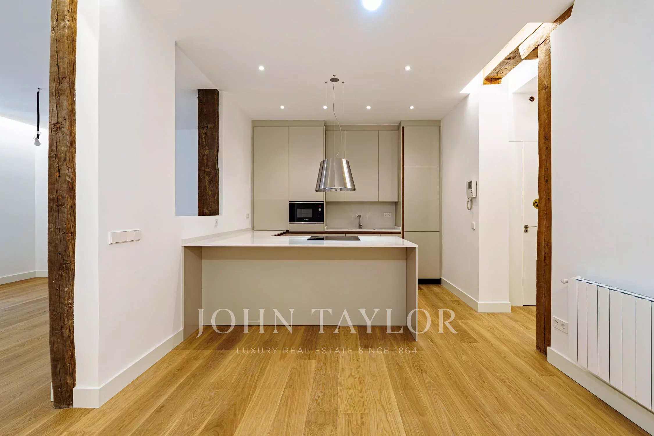 Situado no bairro de Cortes, este elegante apartamento de 152 m² oferece uma interpretação sofisticada da vida no centro de Madrid. Um espaço onde a amplitude, a luz natural e a qualidade de construção definem uma experiência residencial serena e intemporal.