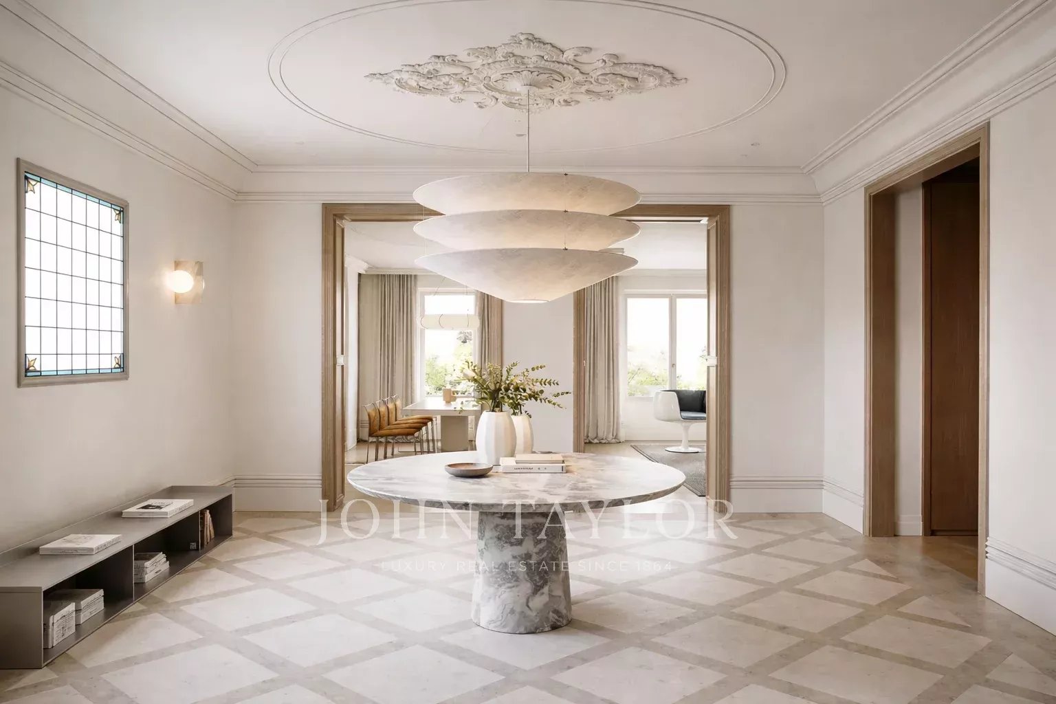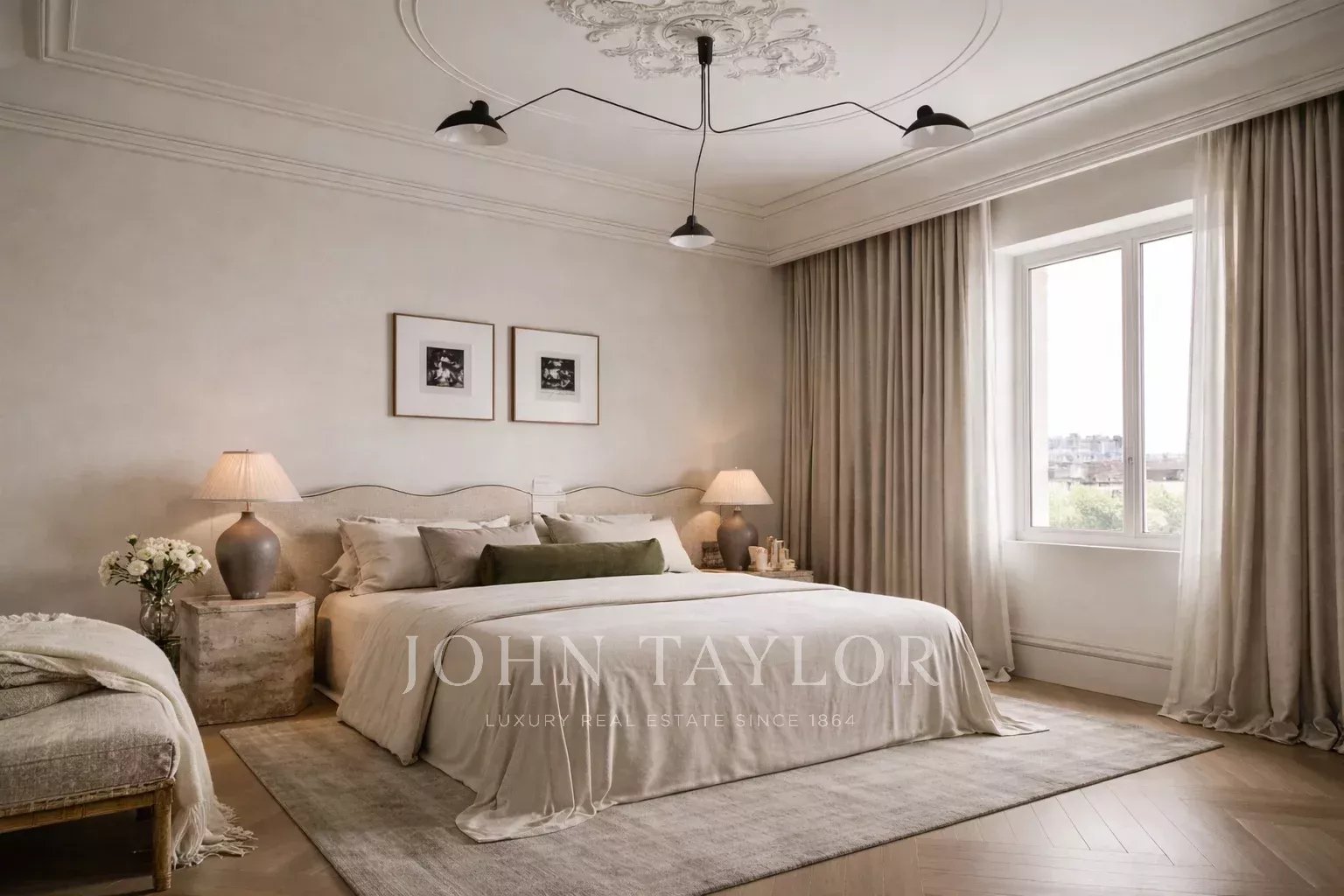 Totalmente renovado, destaca-se pelos seus volumes generosos e pela sua disposição praticamente em plano aberto, que permite uma redistribuição flexível e elegante. O projeto pode facilmente acolher três ou quatro quartos em suite, uma casa de banho social, um quarto de serviço, uma zona de lavandaria e uma grande zona social concebida como um grande espaço contínuo.