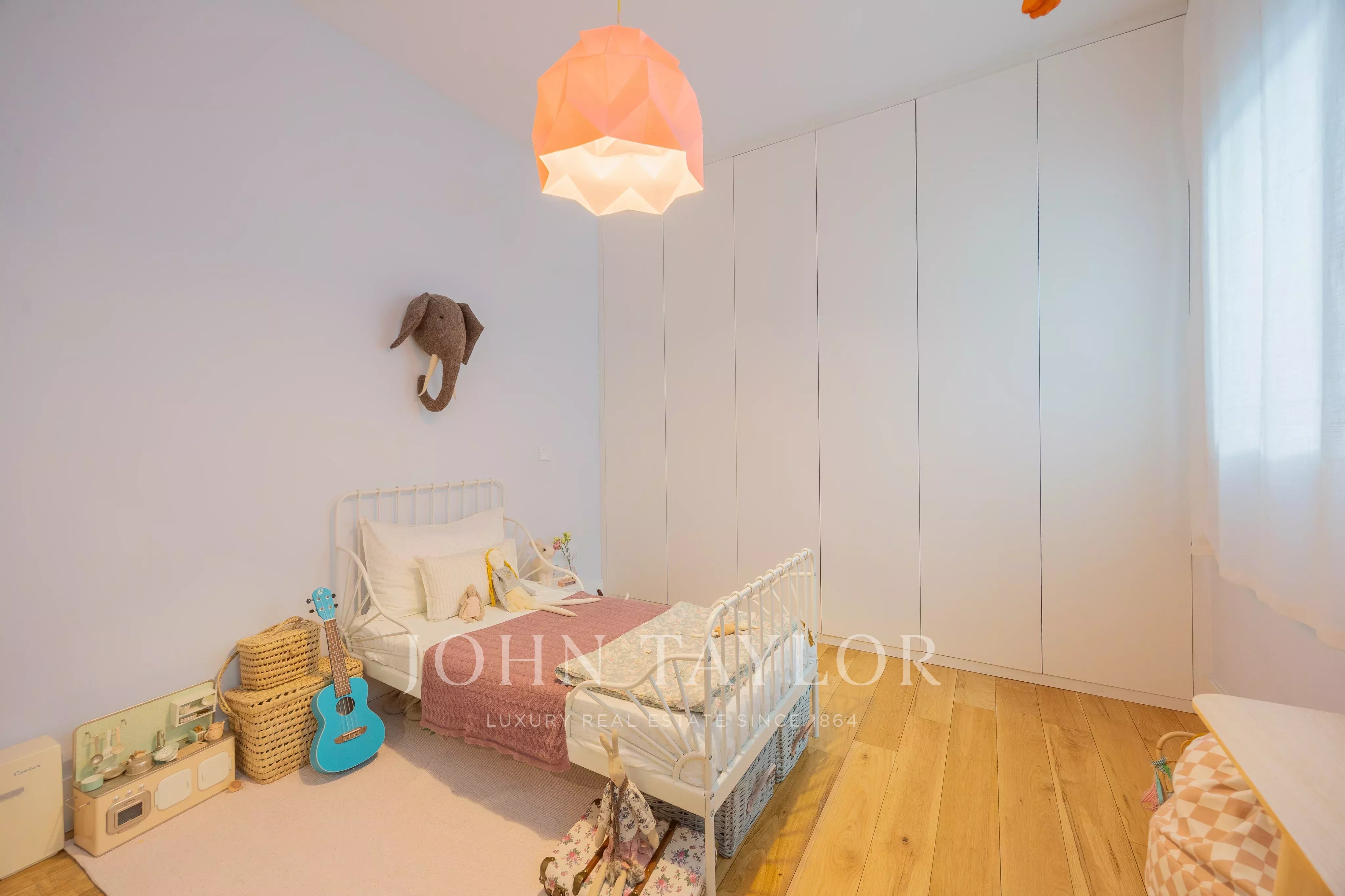 O apartamento encontra-se em um edifício de fachada clássica do século XIX, com uma entrada cuidada que mantém a antiga passagem de carruagens, um elemento arquitetônico de grande valor que confere distinção e autenticidade ao imóvel.