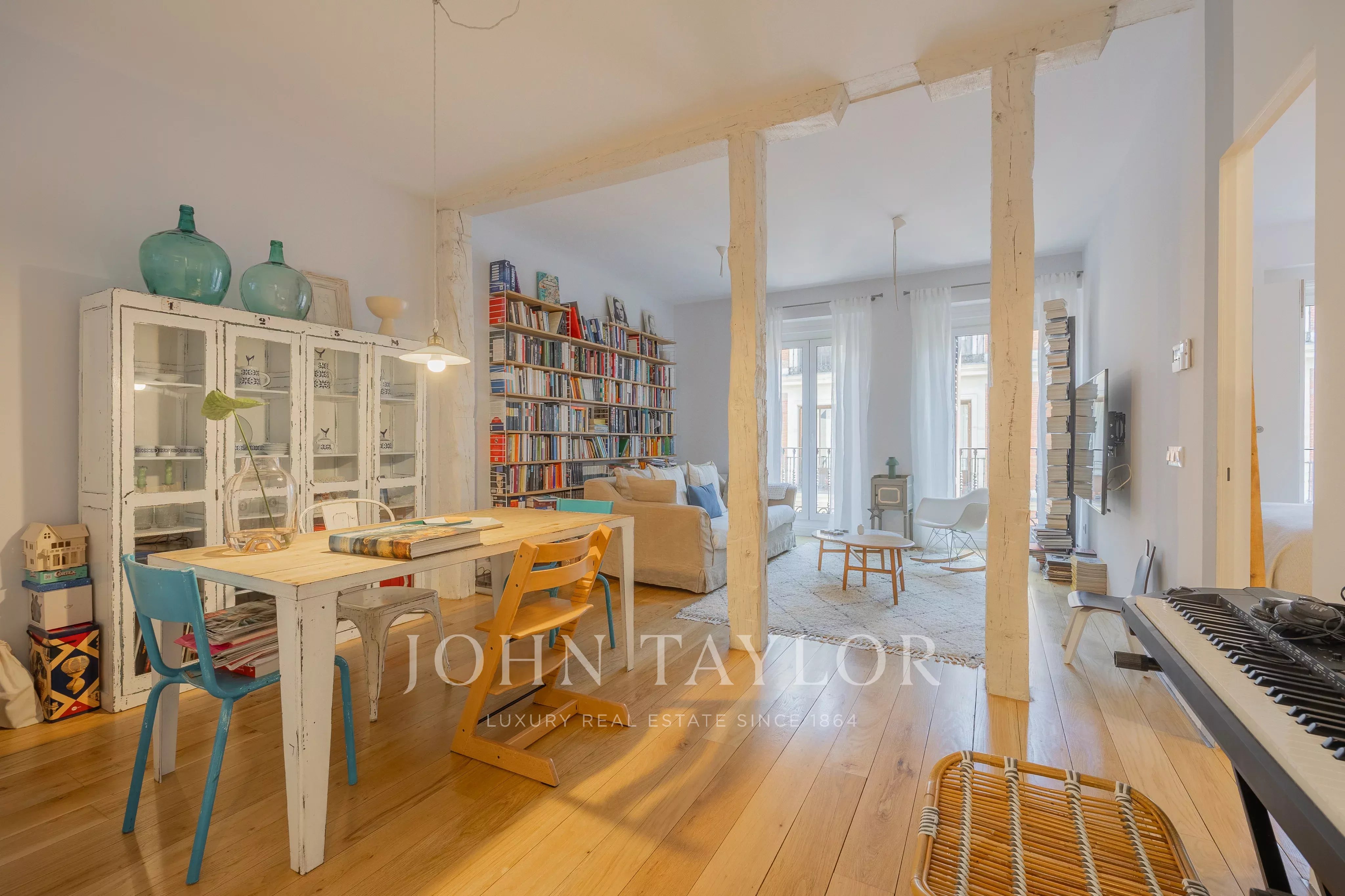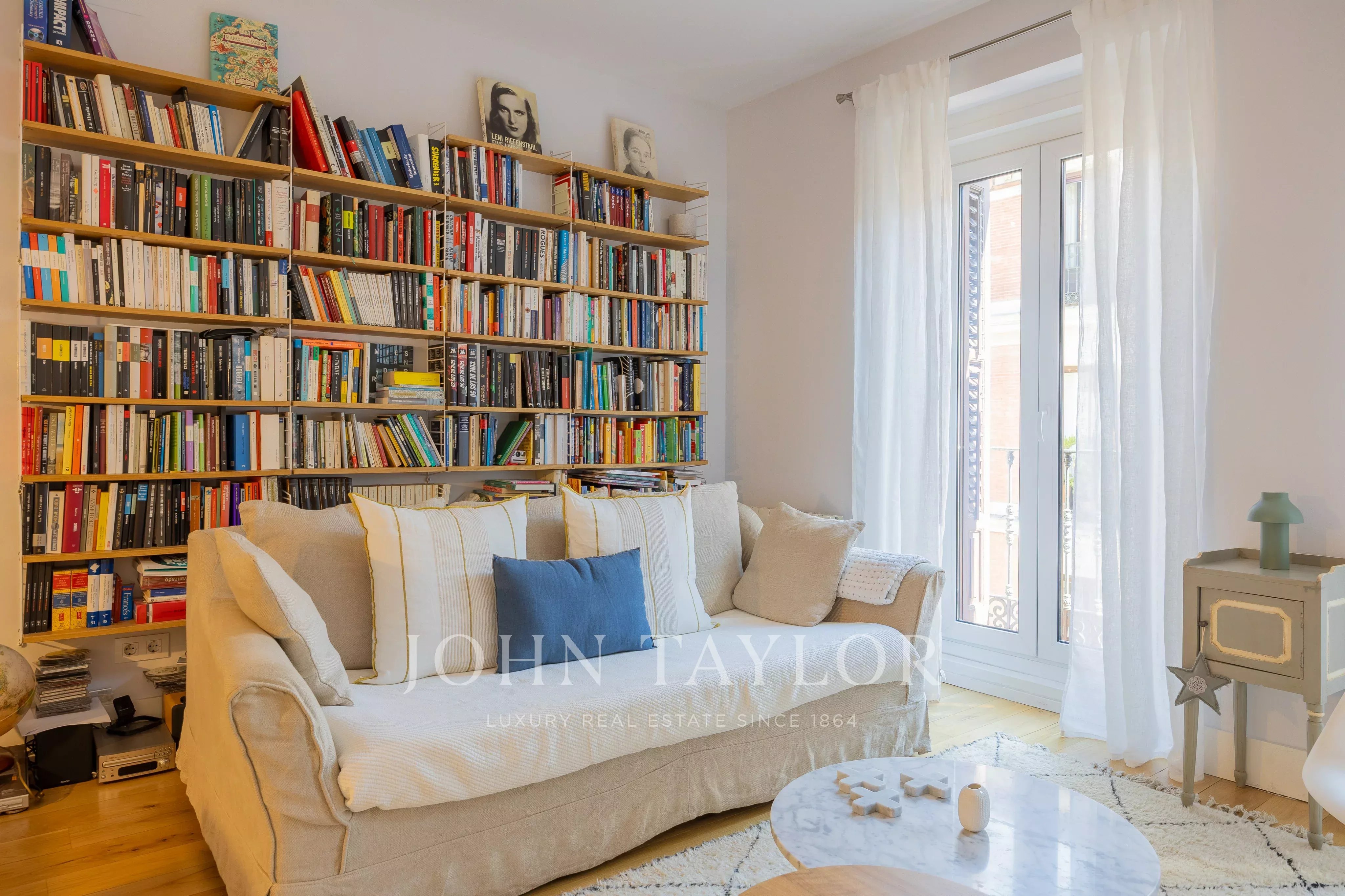 Perfeito para morar ou investir, este piso oferece tranquilidade e privacidade sem renunciar à vibrante vida urbana do elegante bairro de Salesas em Madrid.