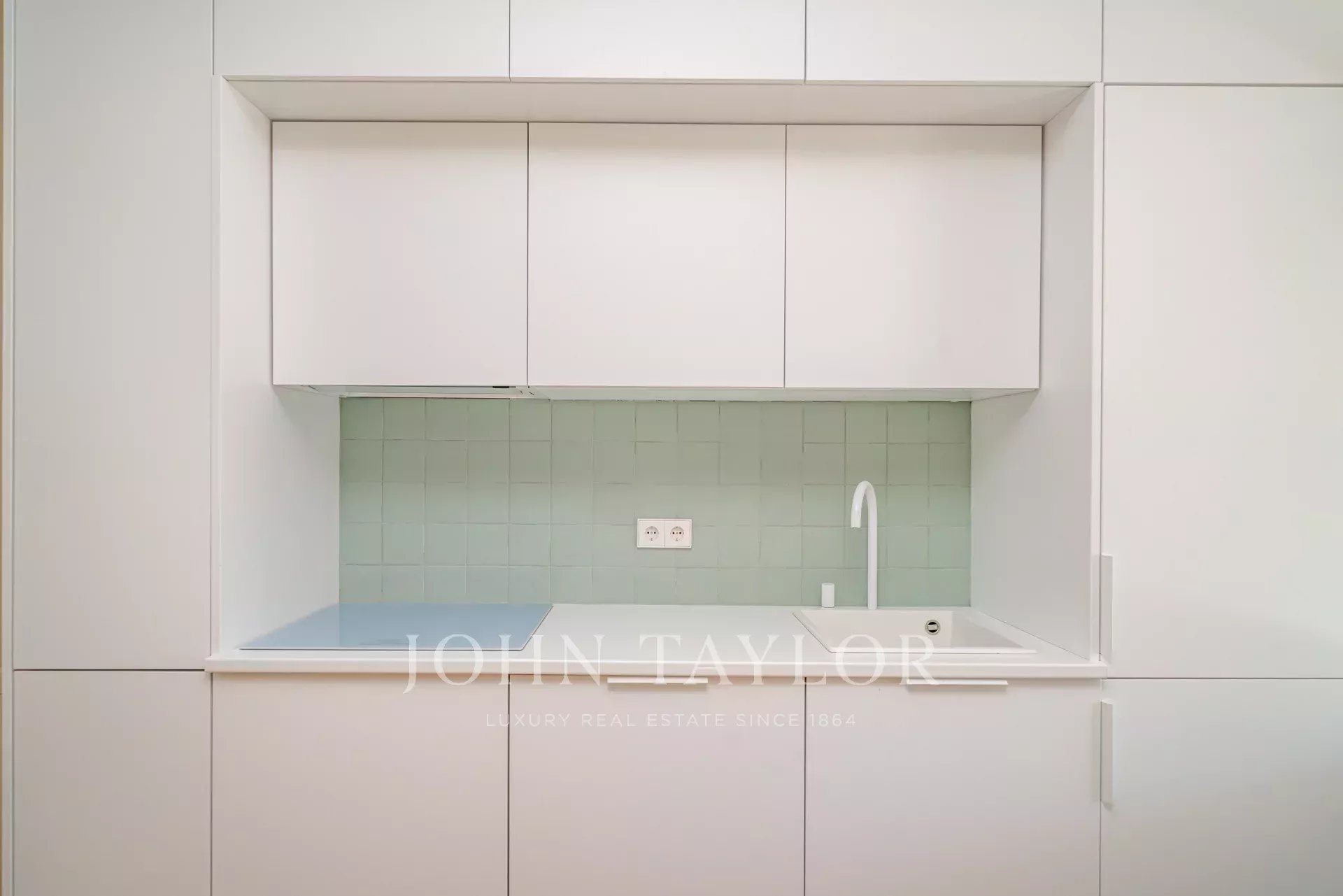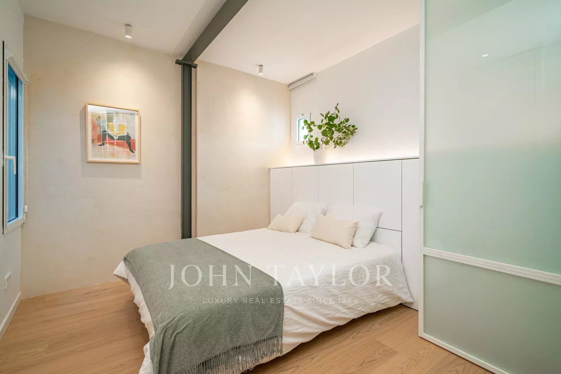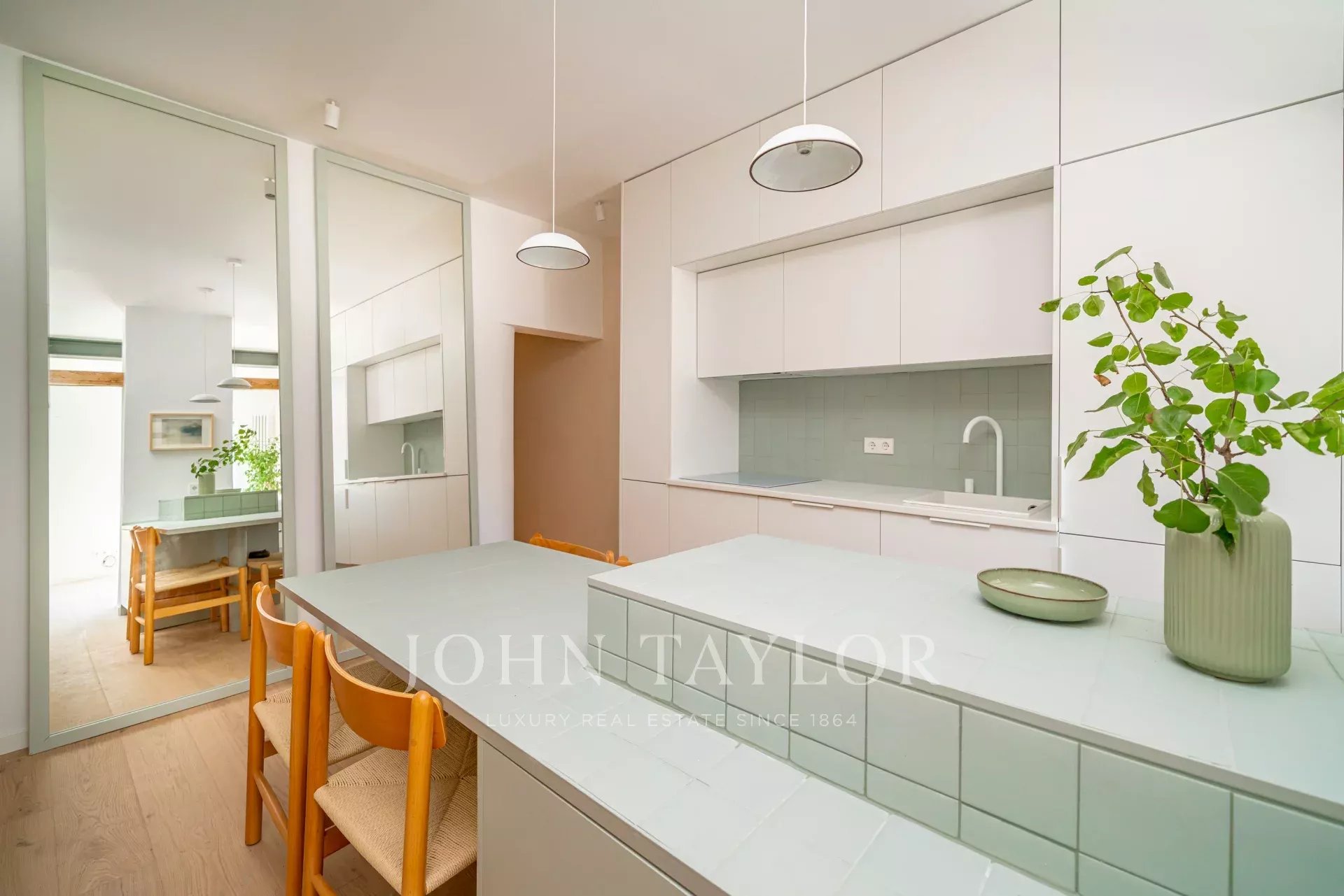 O apartamento tem uma bela sala de estar com uma varanda com vista para a rua, ao lado da qual existe um quarto de vidro modular com uma cama escondida, que pode ser utilizado como quarto de hóspedes ou escritório. A cozinha totalmente equipada tem uma ilha e uma mesa de jantar. Há também mais dois quartos e duas casas de banho, a principal em suite.