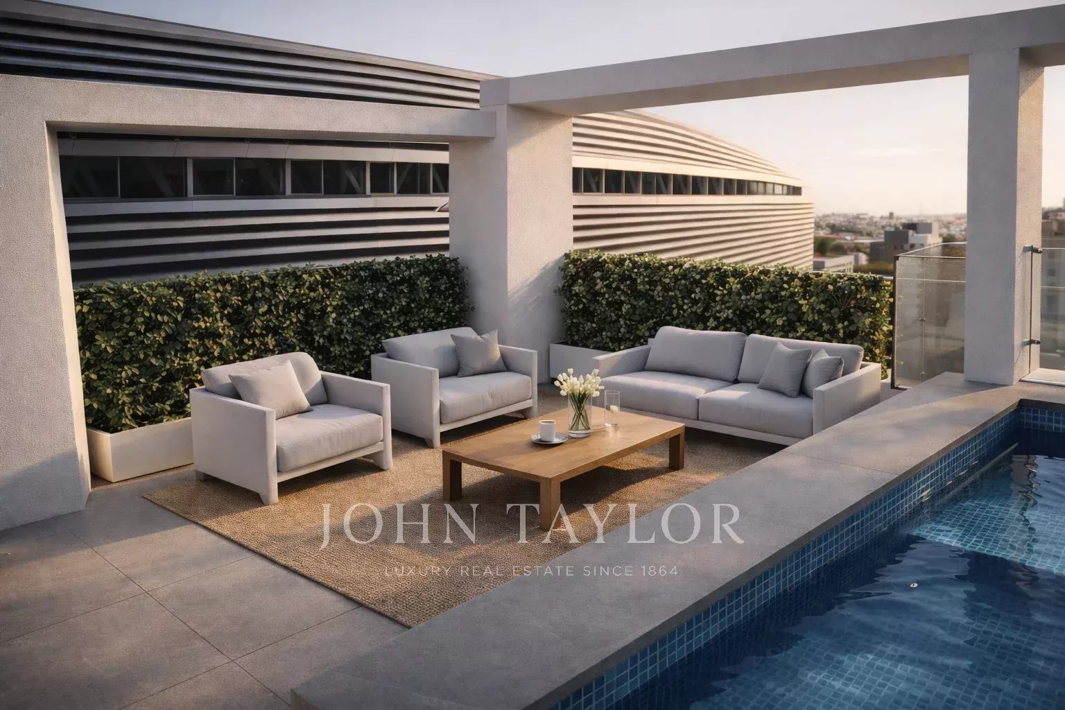 A John Taylor apresenta esta extraordinária penthouse duplex de design contemporâneo com piscina privada, localizada numa das zonas residenciais mais valorizadas de Madrid.
