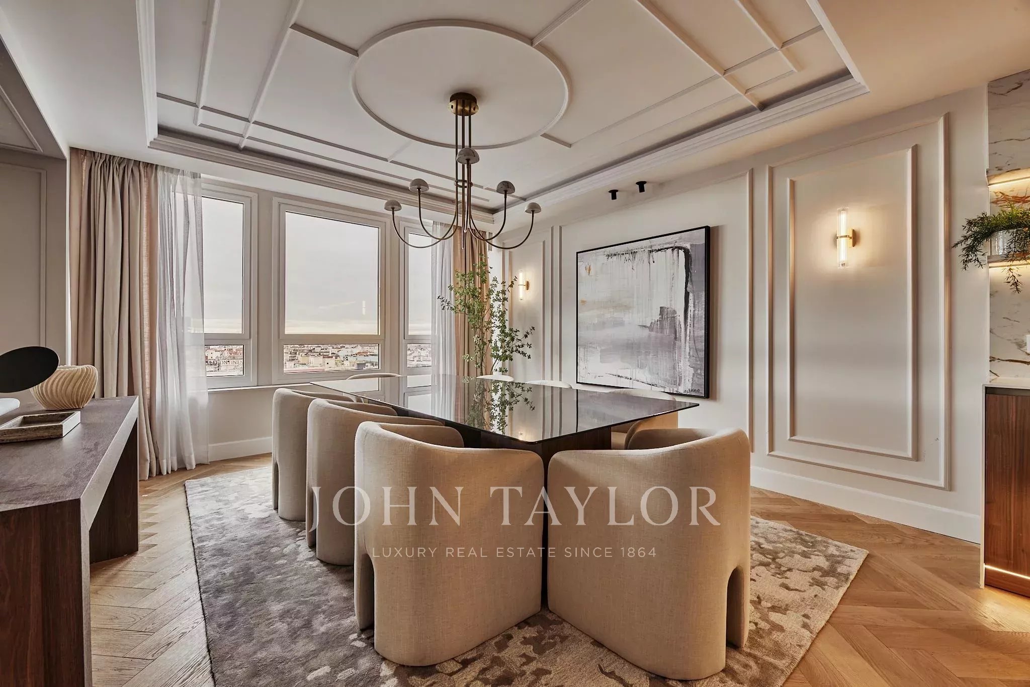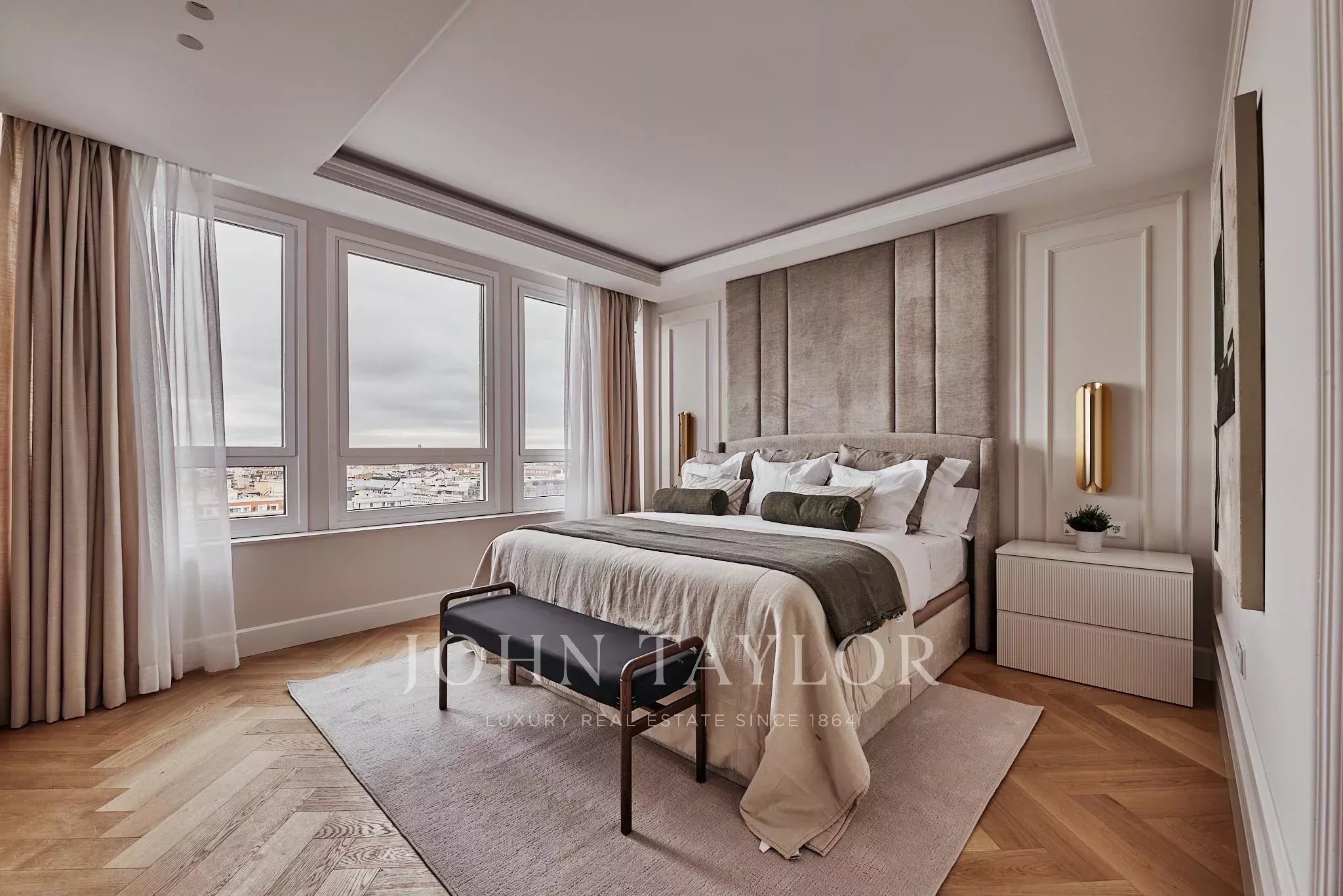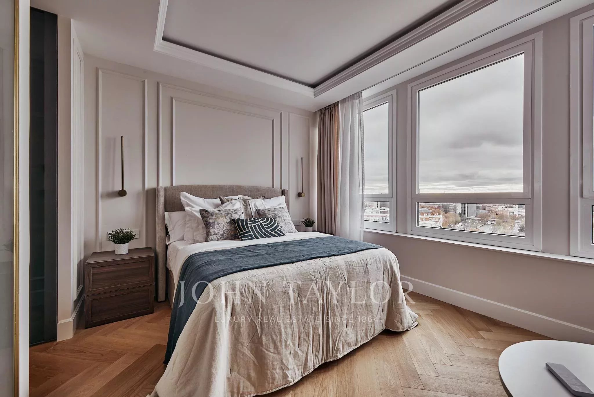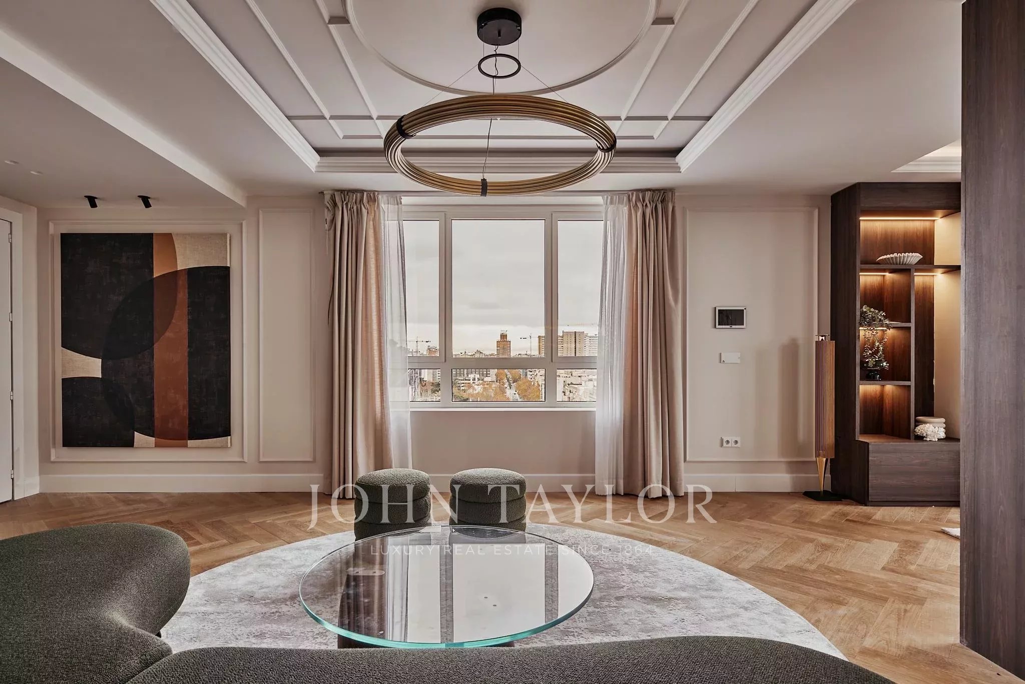 Situada em El Viso, um dos enclaves residenciais mais exclusivos e cobiçados de Madrid, a propriedade desenvolve-se através de espaços onde a luz e a amplitude constroem uma harmonia natural. Os seus cinco quartos duplos, cinco casas de banho, cozinha aberta, zona de café e lareira convivem num conjunto arquitetónico cuidadosamente executado, com materiais selecionados pela sua qualidade intrínseca e longe de qualquer artifício.