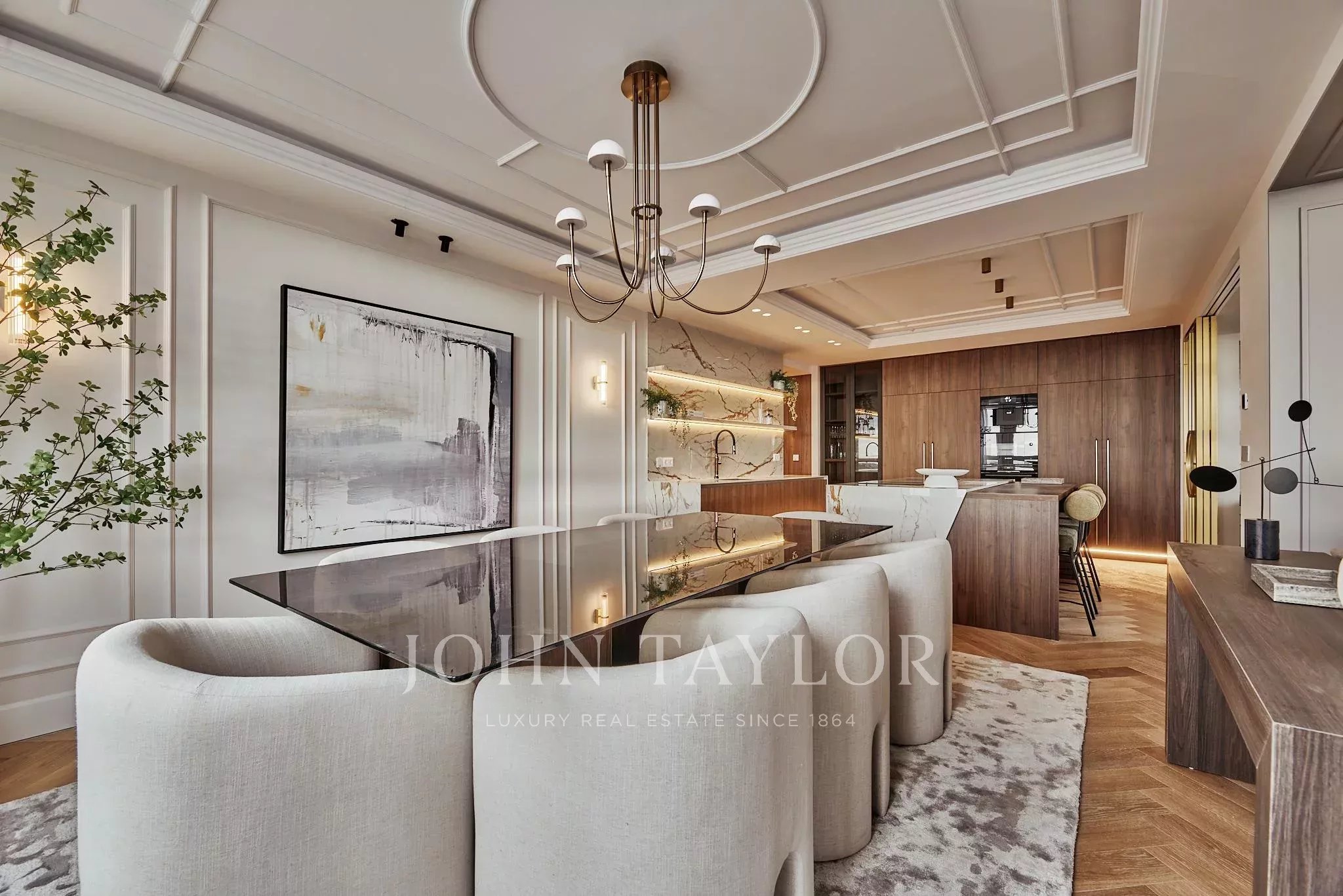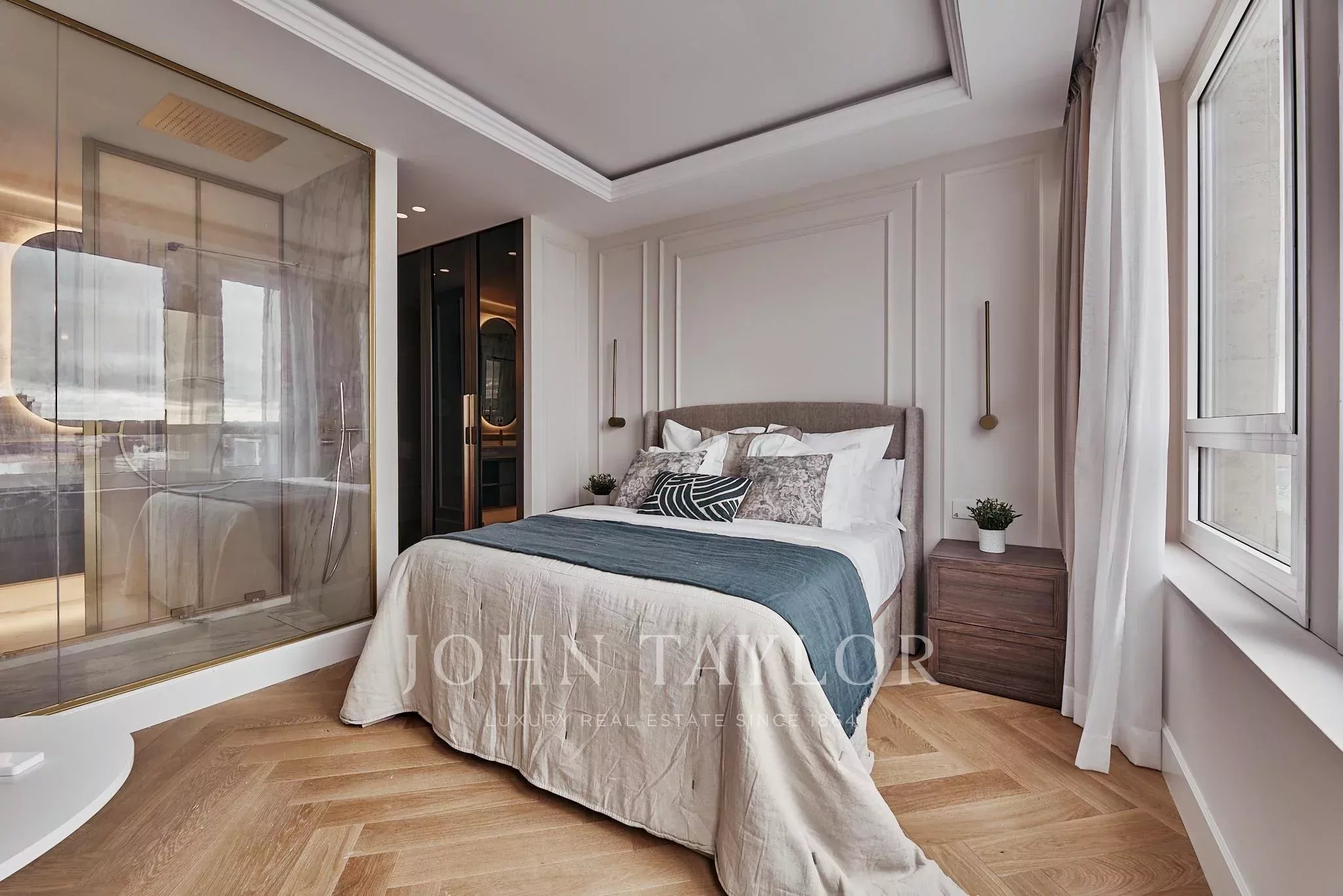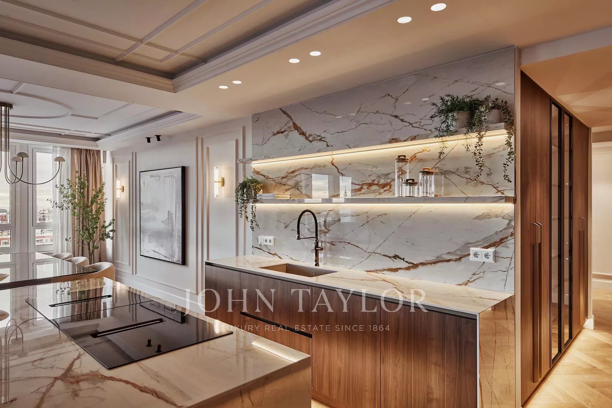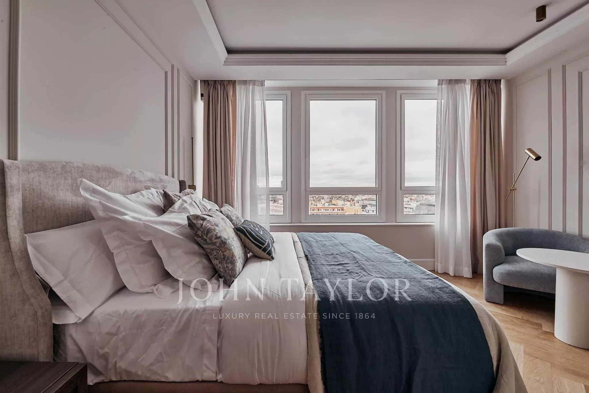 Situada em El Viso, um dos enclaves residenciais mais exclusivos e cobiçados de Madrid, a propriedade desenvolve-se através de espaços onde a luz e a amplitude constroem uma harmonia natural. Os seus cinco quartos duplos, cinco casas de banho, cozinha aberta, zona de café e lareira convivem num conjunto arquitetónico cuidadosamente executado, com materiais selecionados pela sua qualidade intrínseca e longe de qualquer artifício.