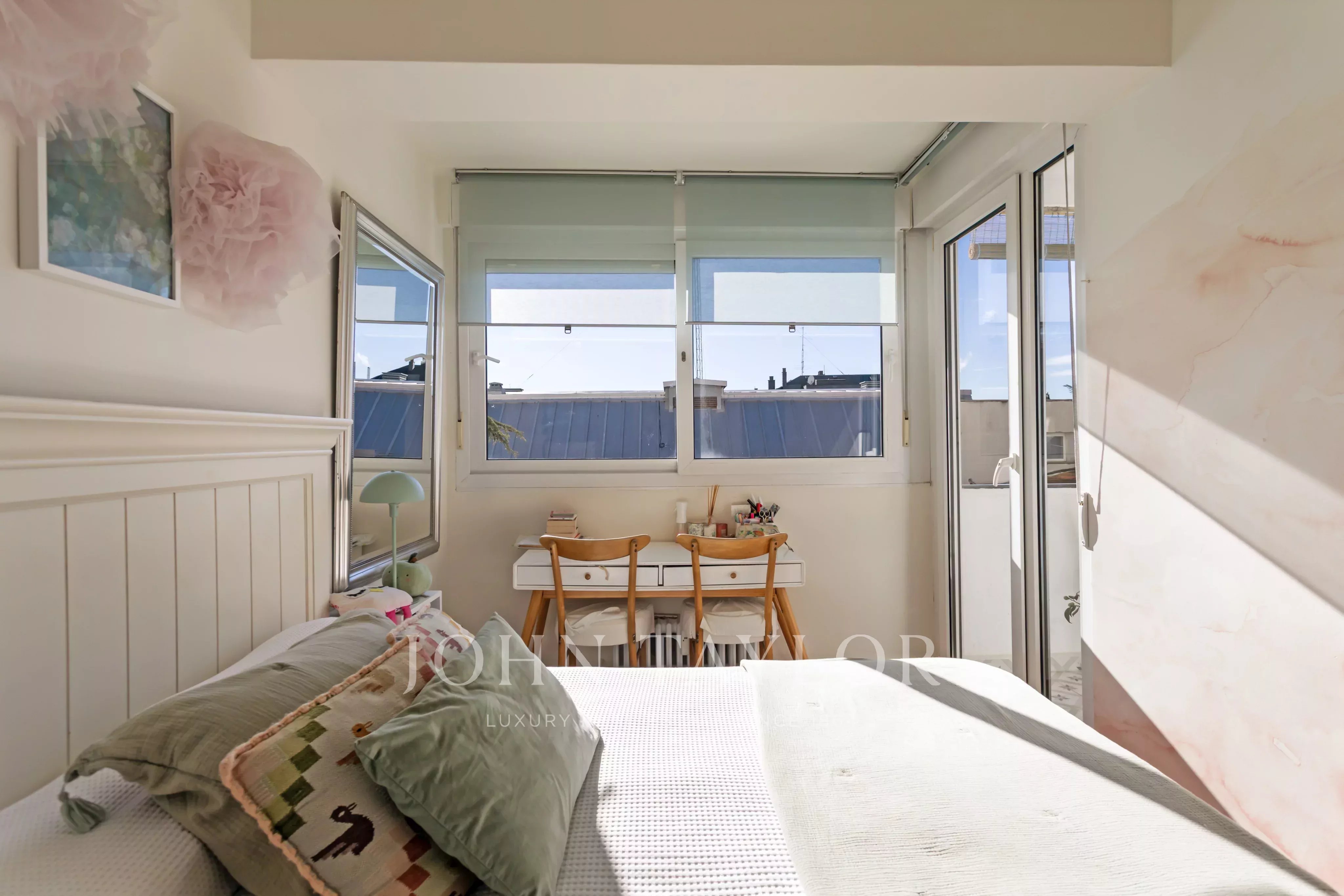 A zona de dormir é composta por dois quartos luminosos e alegres, um deles com um terraço virado a sul, uma casa de banho com uma cabina de duche ao nível do chão e o quarto principal, espaçoso e elegante, destaca-se pela sua privacidade e funcionalidade com uma casa de banho privativa de design elegante.