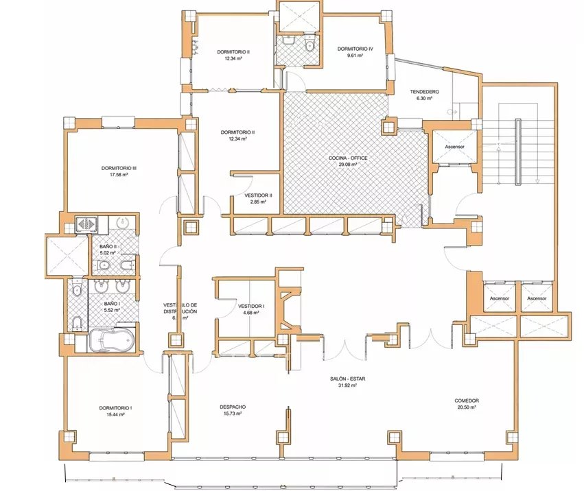 Habitação de 286 m² totais, com aproximadamente 240 m² privativos, que oferece um potencial extraordinário para uma reforma completa, ideal para desenvolver um projeto sob medida numa das zonas mais demandadas da capital.