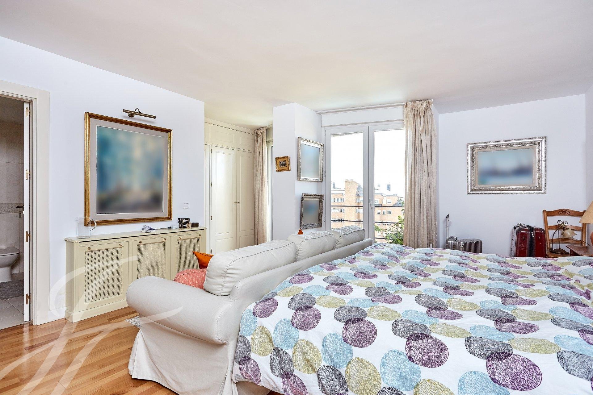 Entramos na propriedade através de um hall luminoso com uma casa de banho social, que dá acesso a um quarto que é atualmente utilizado como escritório pessoal. Entramos numa espaçosa sala de estar com três quartos com grandes janelas, um deles com lareira. É de salientar a excelente vista e luminosidade destas divisões, devido à sua orientação a sul. Passamos para a zona de descanso, onde encontramos o quarto principal (originalmente dois) com closet, casa de banho privativa em mármore e um pequeno terraço, bem como dois quartos com acesso a outro terraço que são servidos por uma casa de banho.