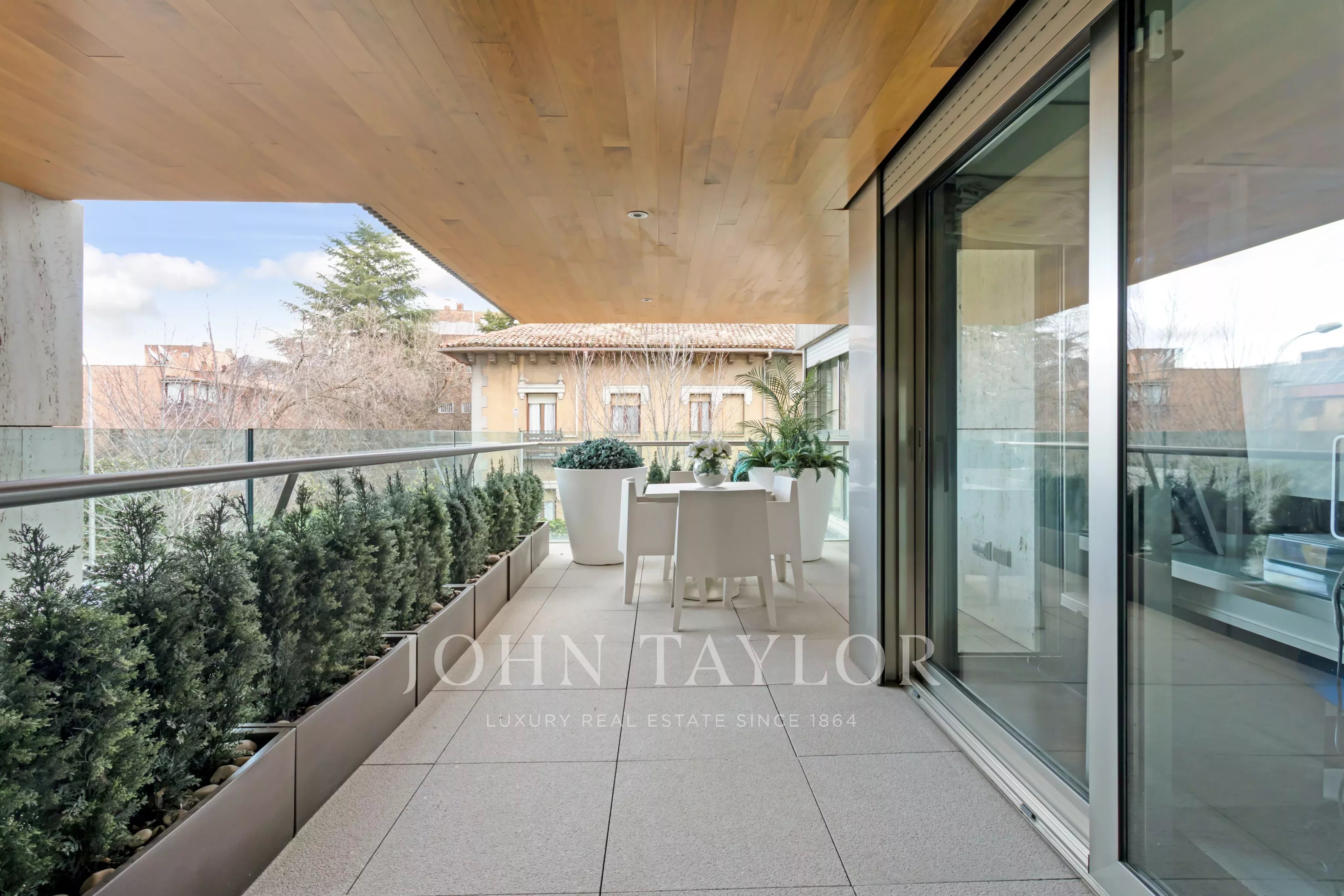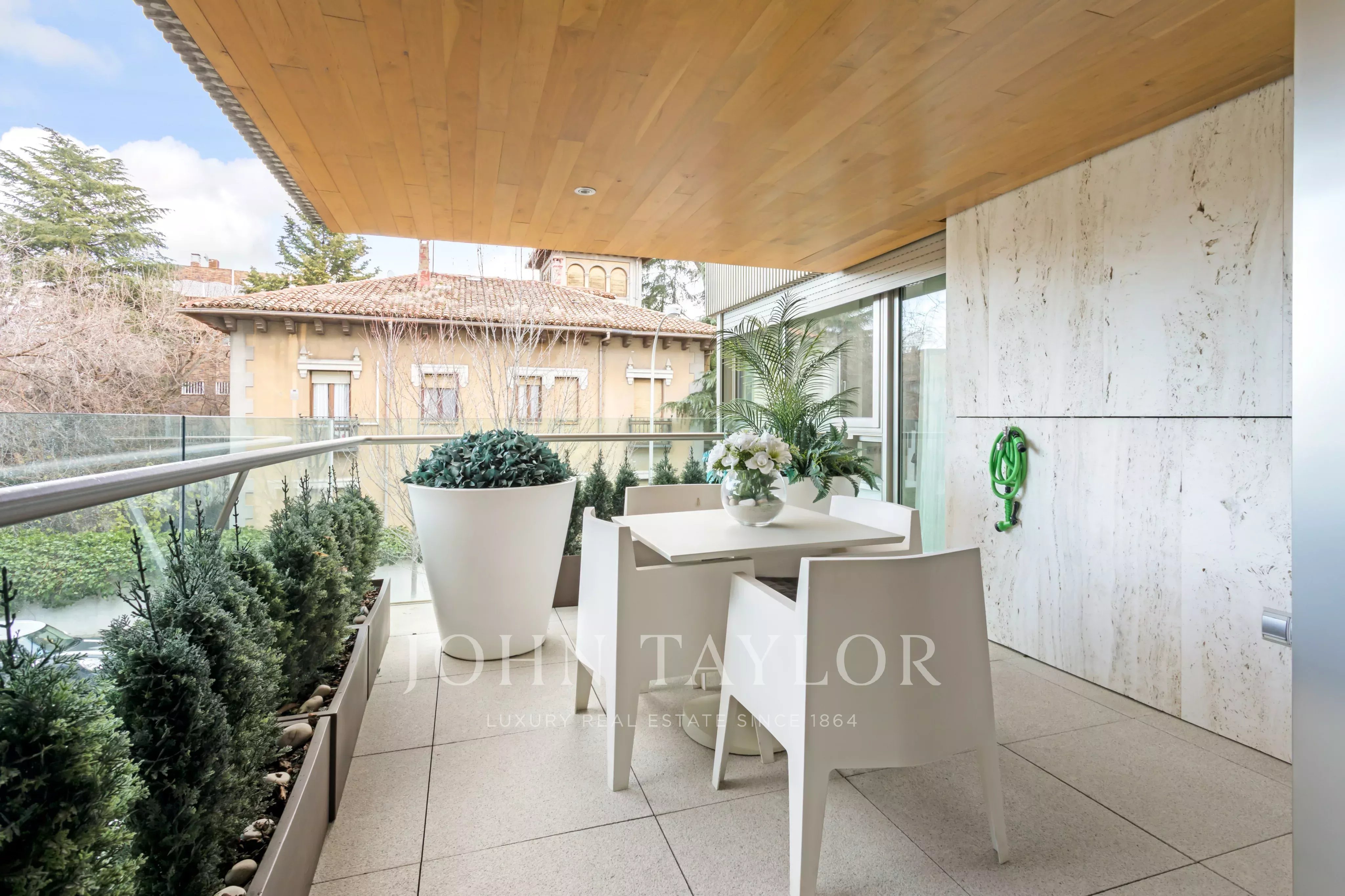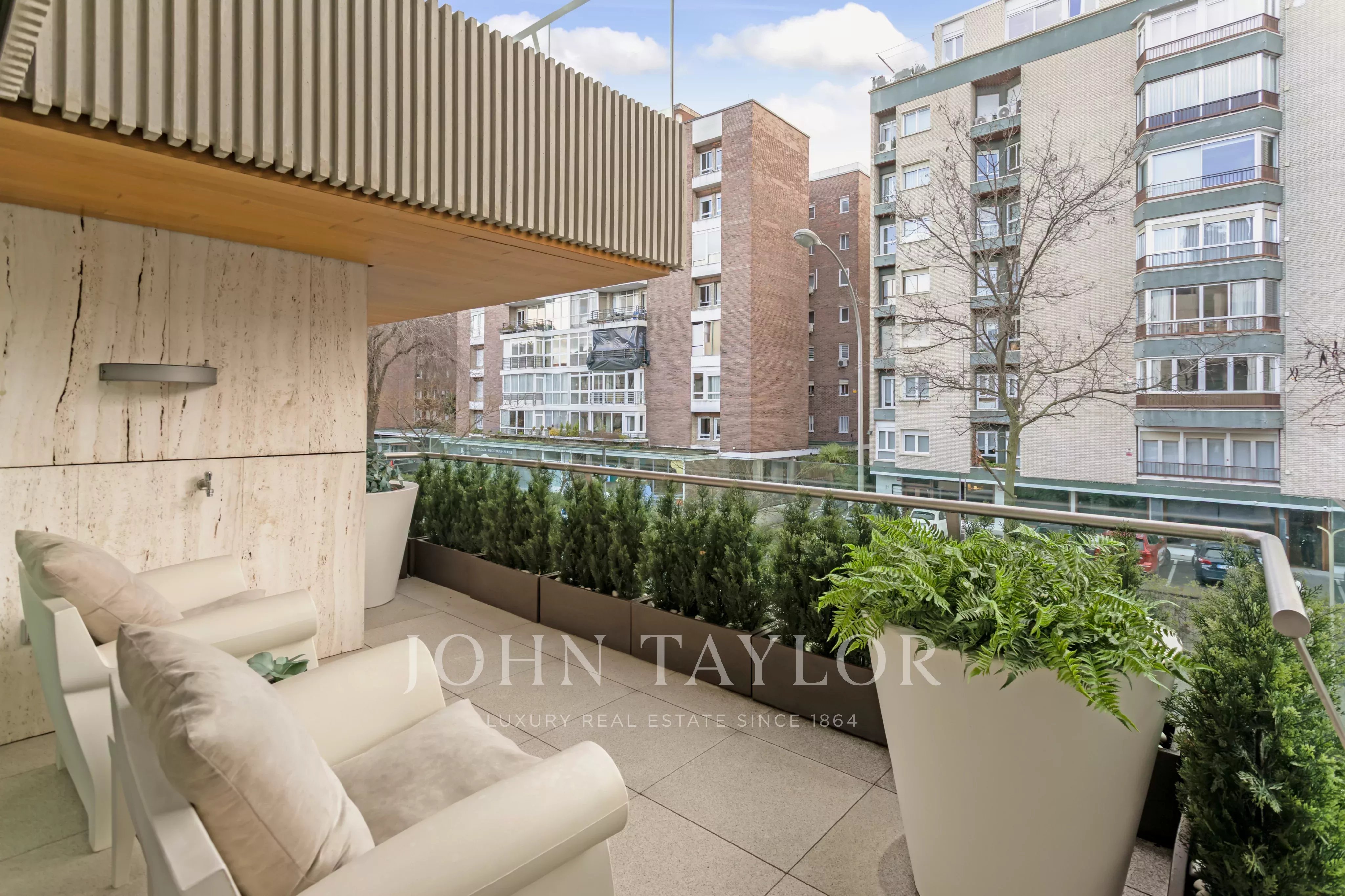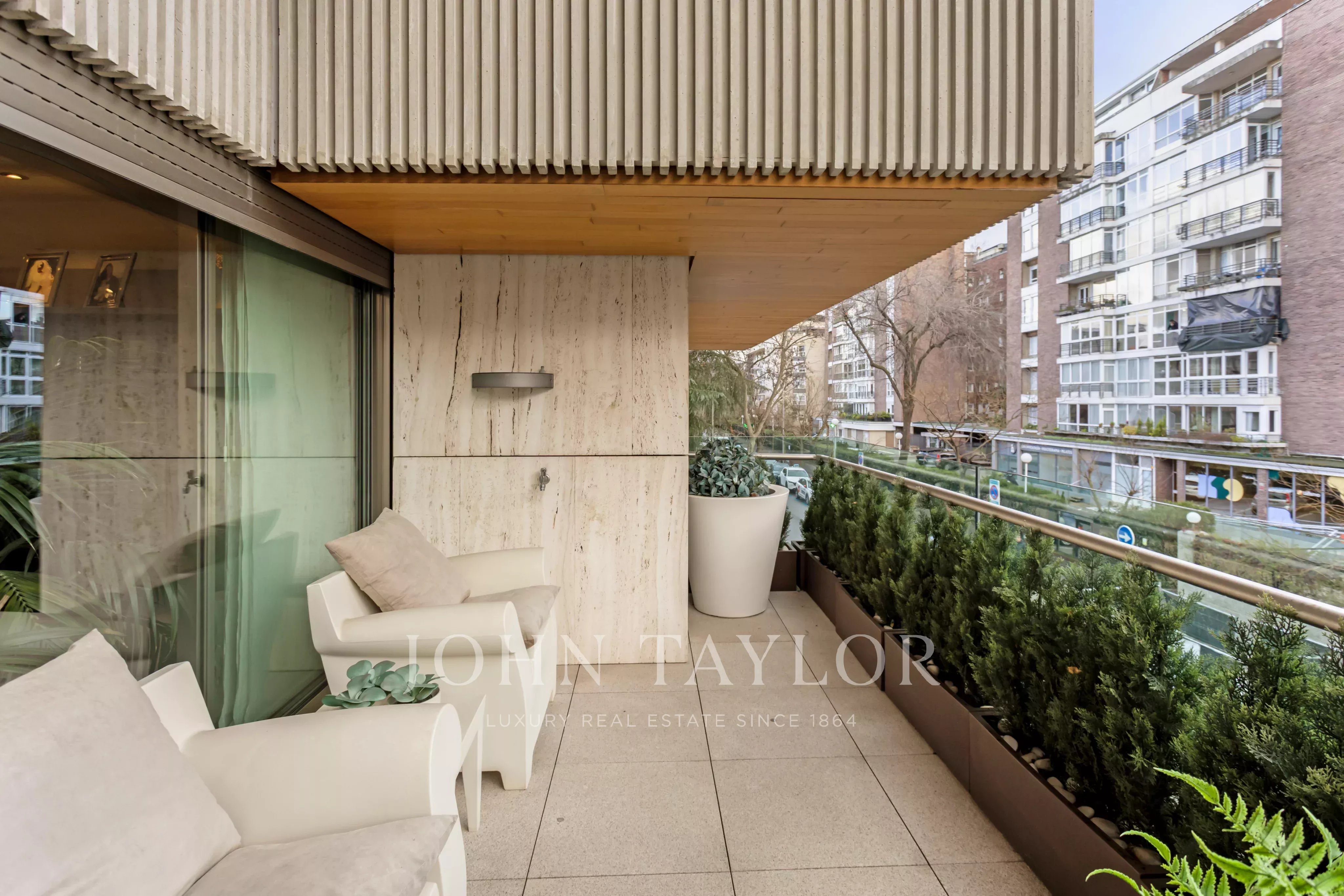 John Taylor Luxury Real Estate apresenta este apartamento exclusivo localizado num edifício único com um prémio de arquitetura em 2008. A propriedade está localizada no prestigiado bairro residencial de Nueva España, no distrito de Chamartín, no norte da capital. É um bairro tranquilo e seguro com todas as comodidades e uma das zonas mais procuradas da capital.
