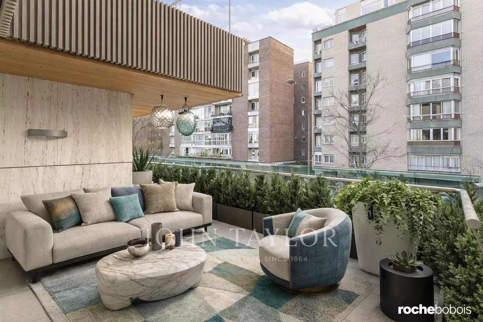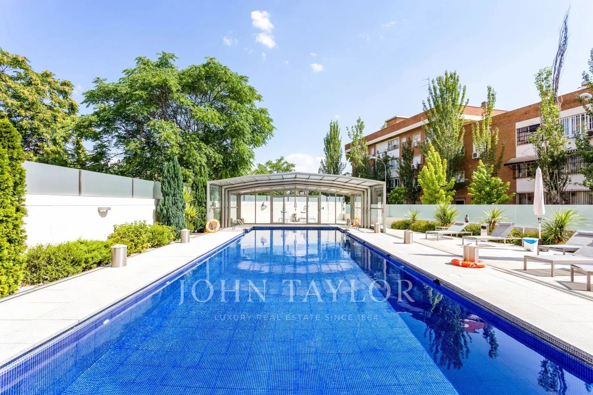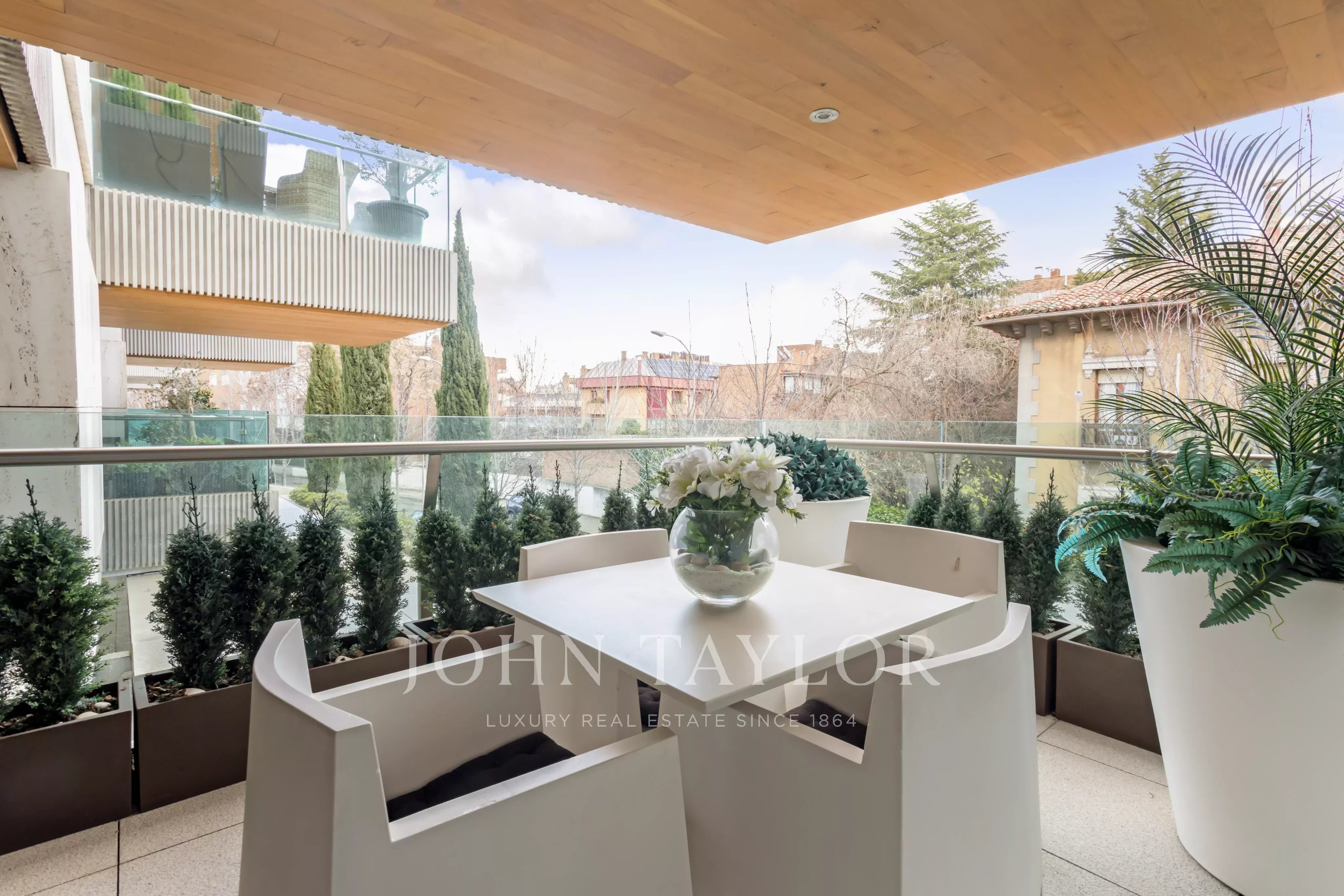 John Taylor Luxury Real Estate apresenta este apartamento exclusivo localizado num edifício único com um prémio de arquitetura em 2008. A propriedade está localizada no prestigiado bairro residencial de Nueva España, no distrito de Chamartín, no norte da capital. É um bairro tranquilo e seguro com todas as comodidades e uma das zonas mais procuradas da capital.