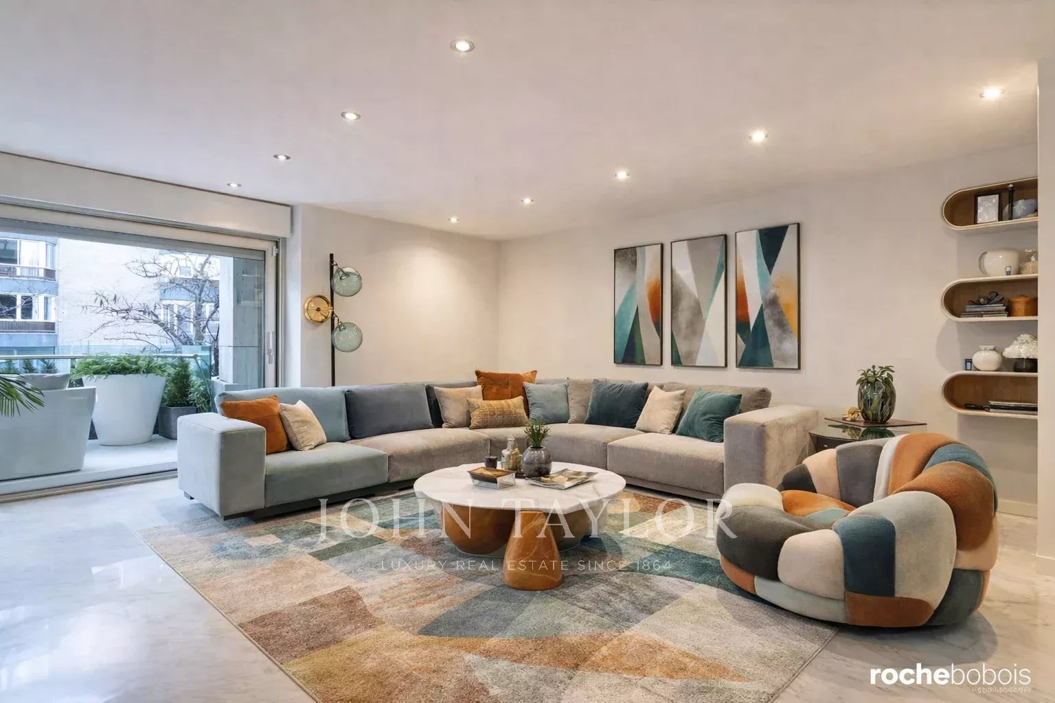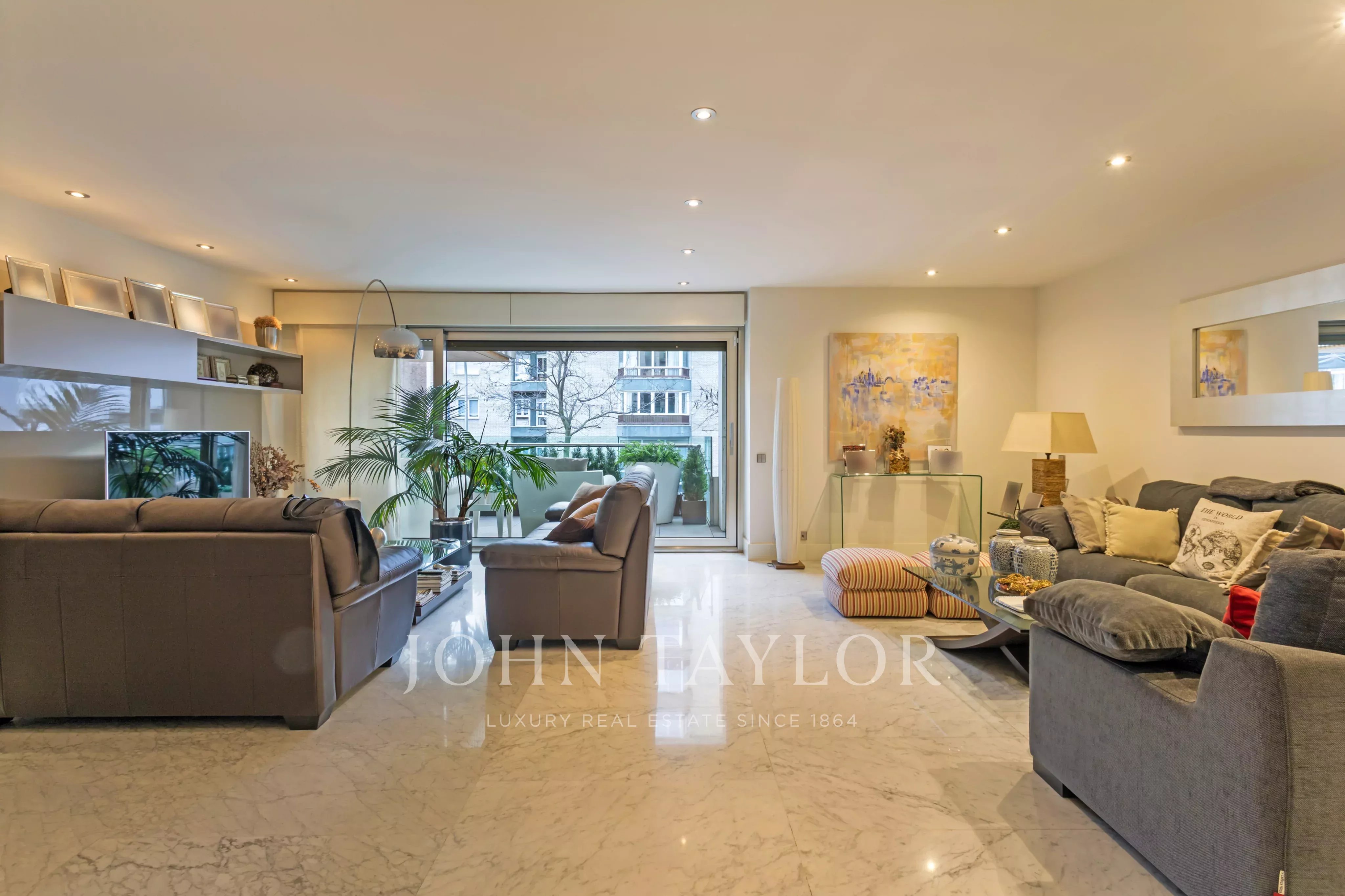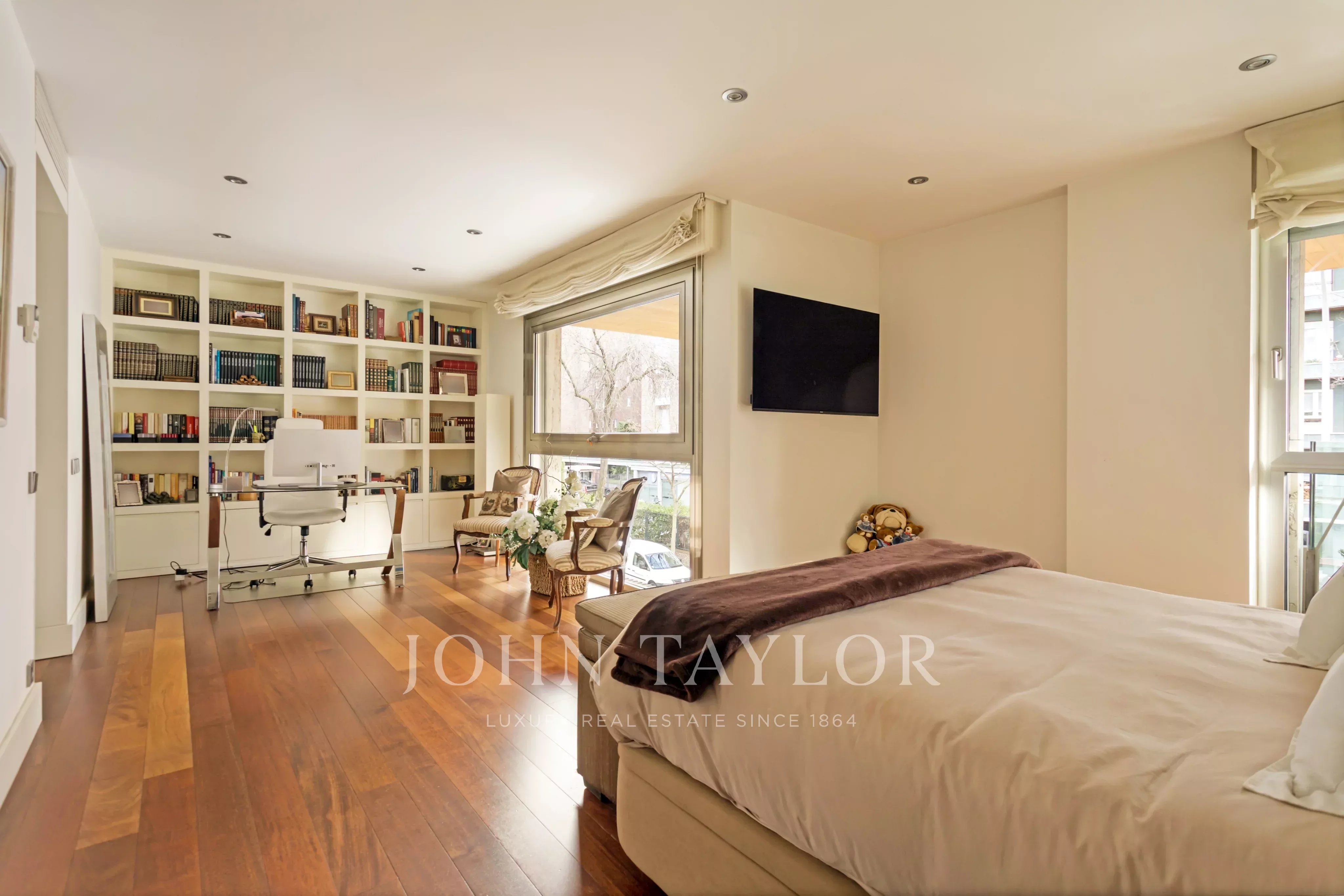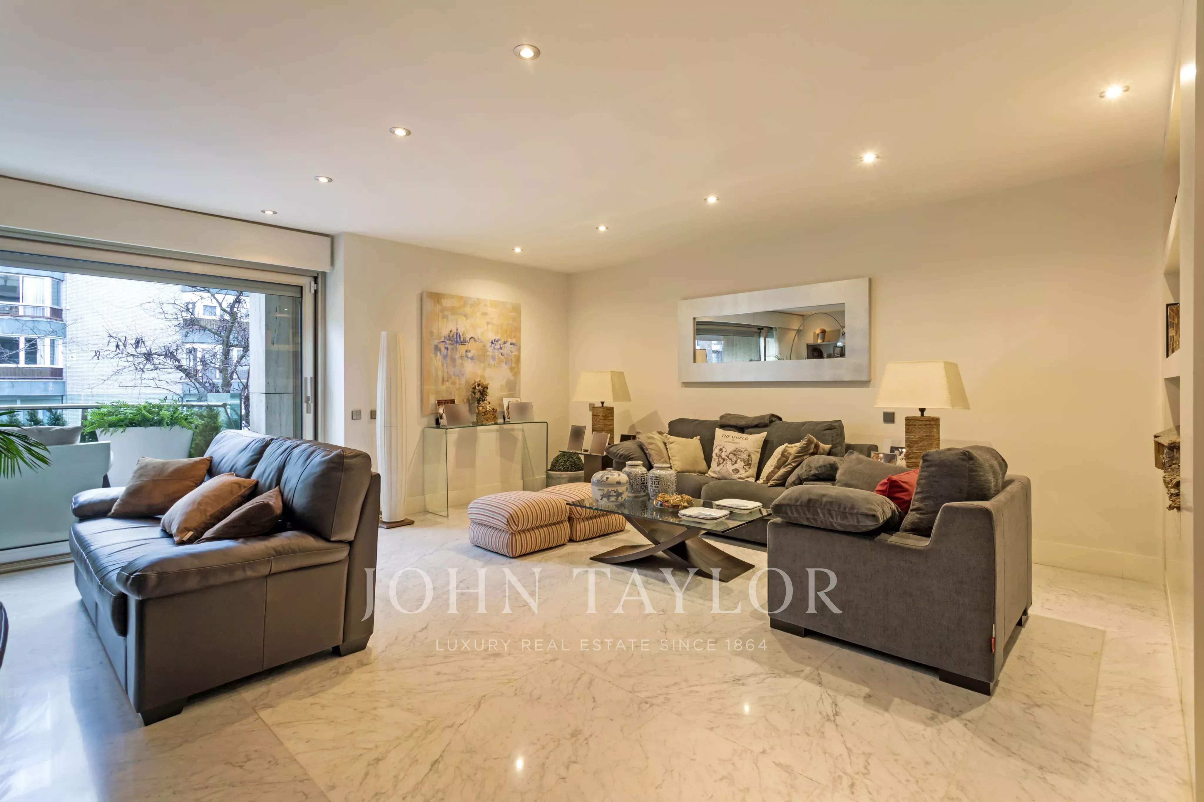 John Taylor Luxury Real Estate apresenta este apartamento exclusivo localizado num edifício único com um prémio de arquitetura em 2008. A propriedade está localizada no prestigiado bairro residencial de Nueva España, no distrito de Chamartín, no norte da capital. É um bairro tranquilo e seguro com todas as comodidades e uma das zonas mais procuradas da capital.