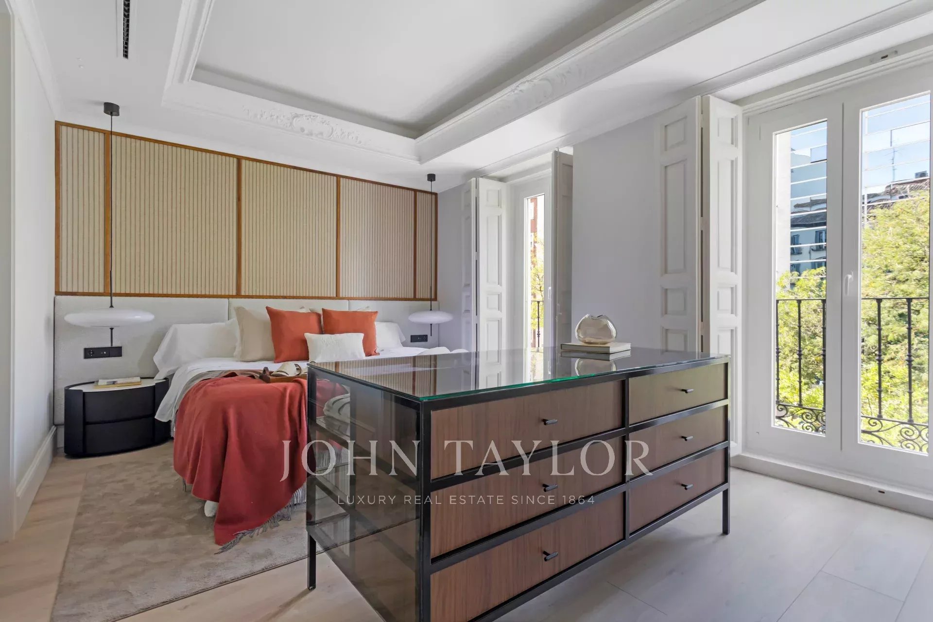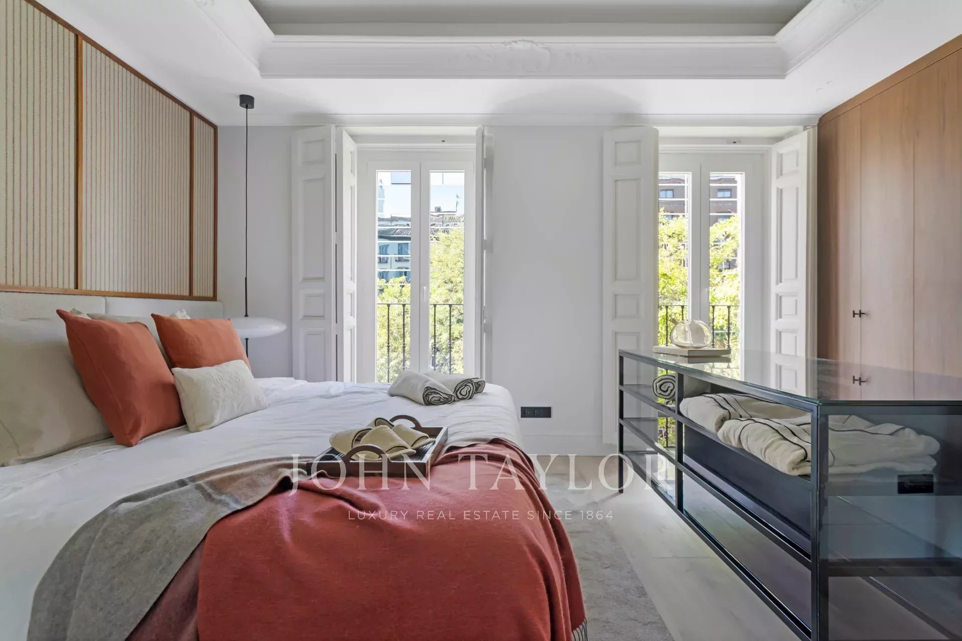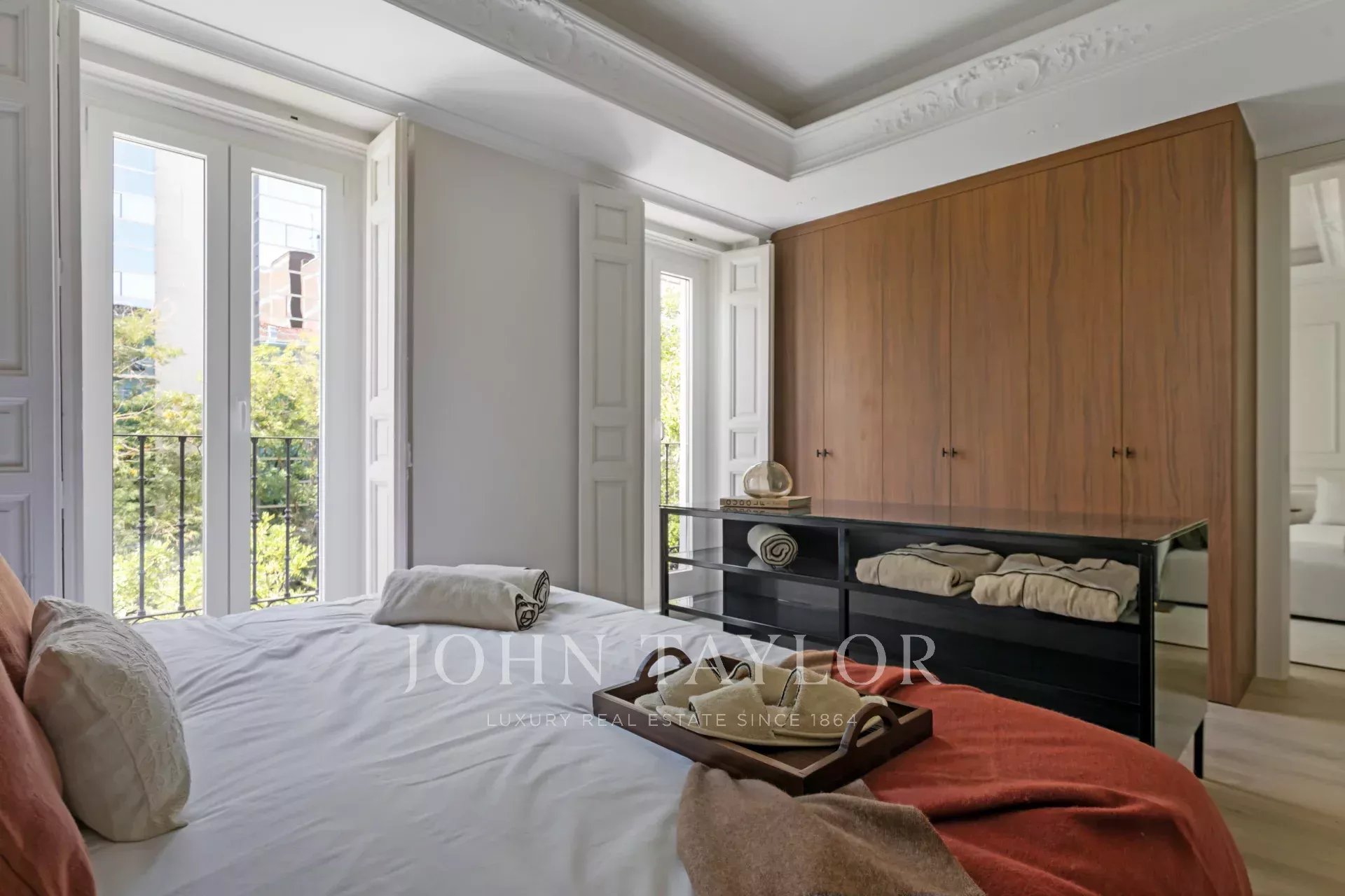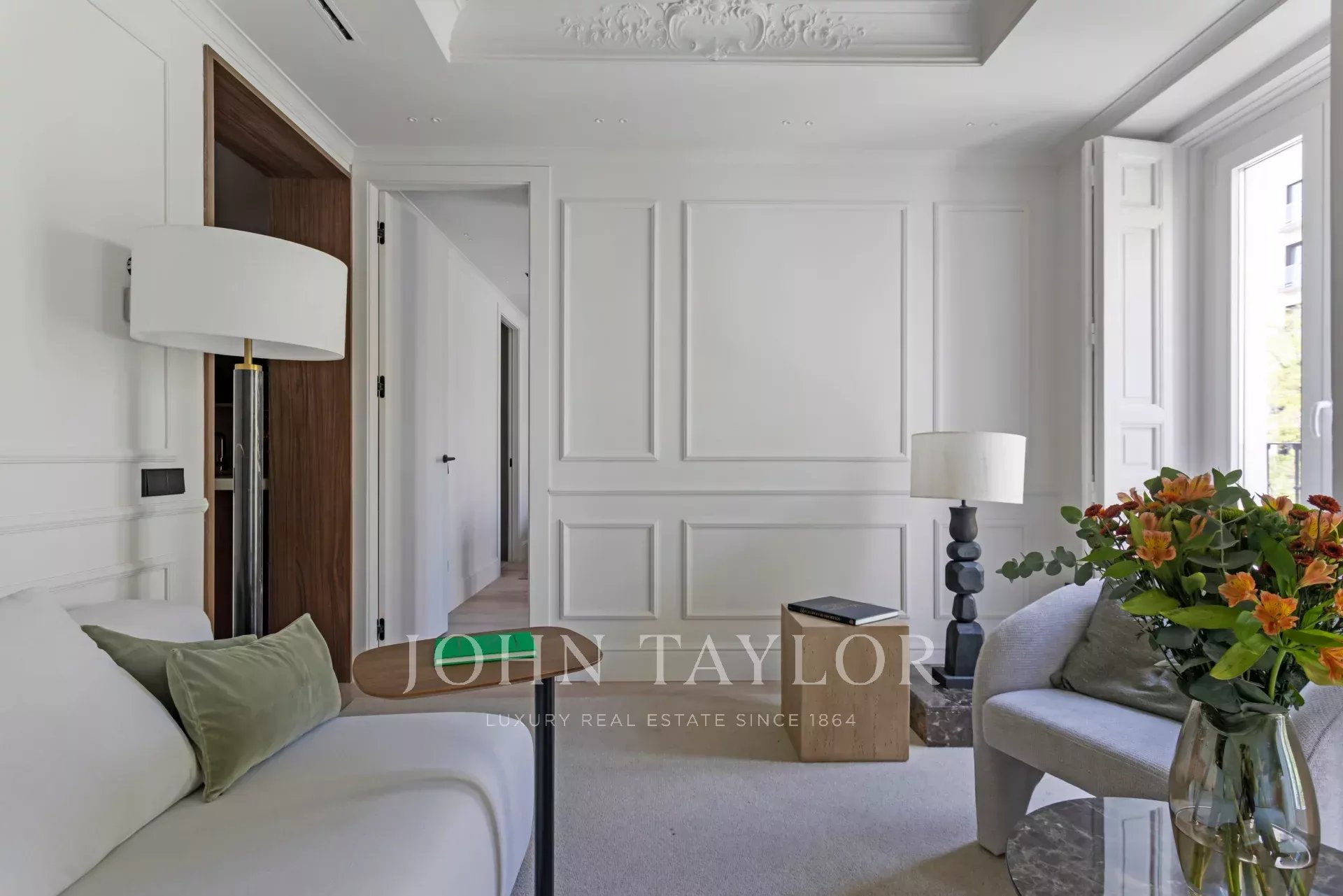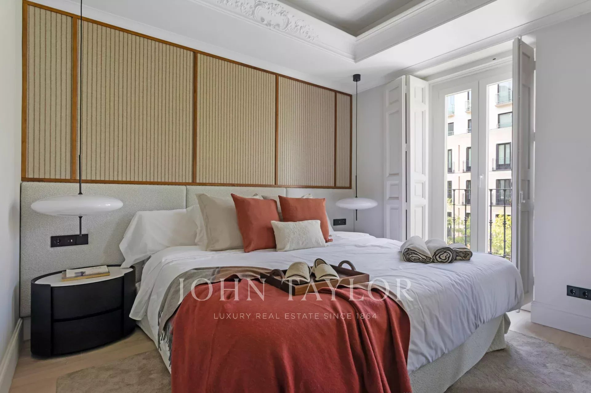 A John Taylor apresenta esta elegante propriedade nova, completamente remodelada e mobilada, situada no primeiro andar de uma quinta clássica na Calle Santa Engracia, uma das ruas mais emblemáticas do procurado bairro de Almagro.