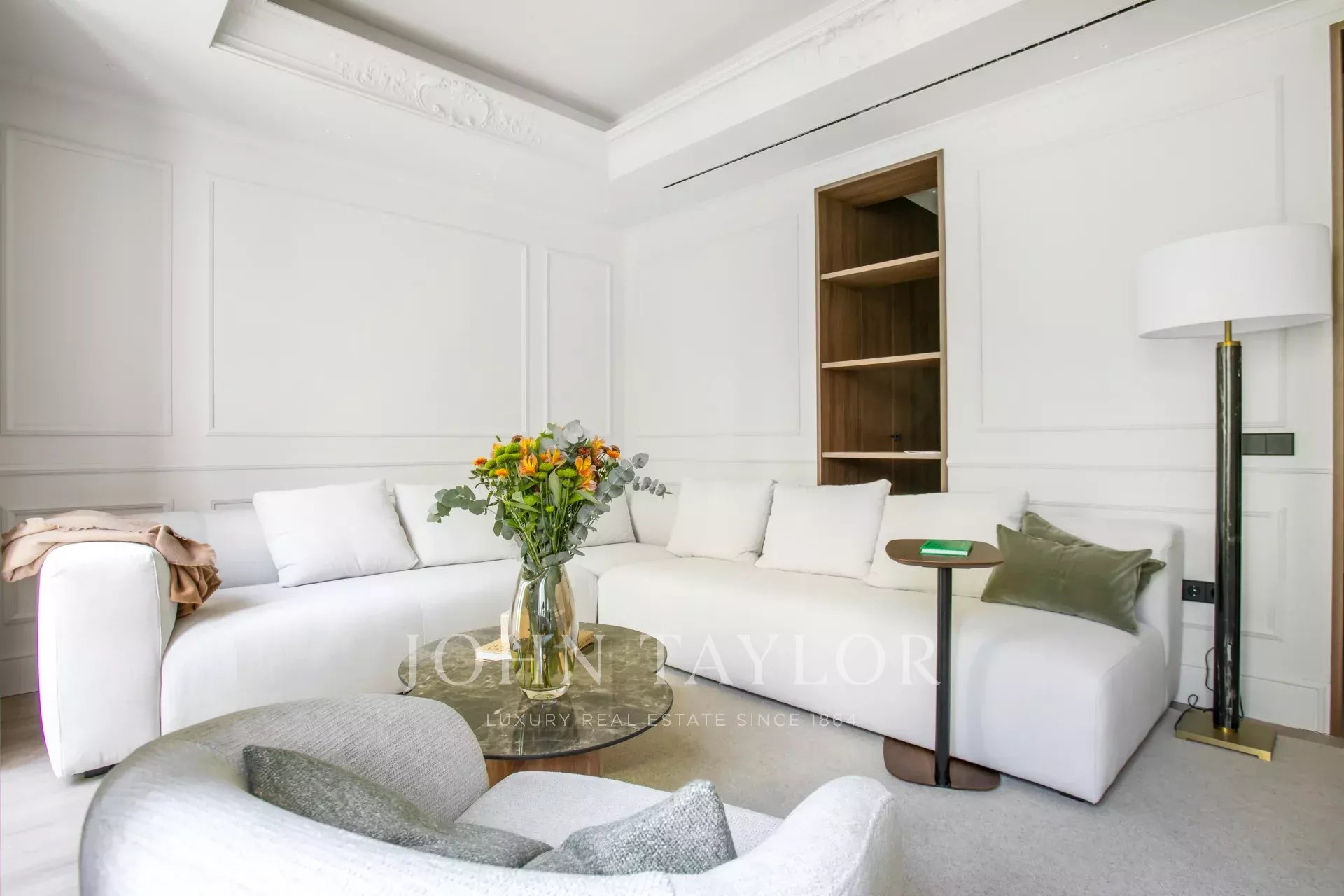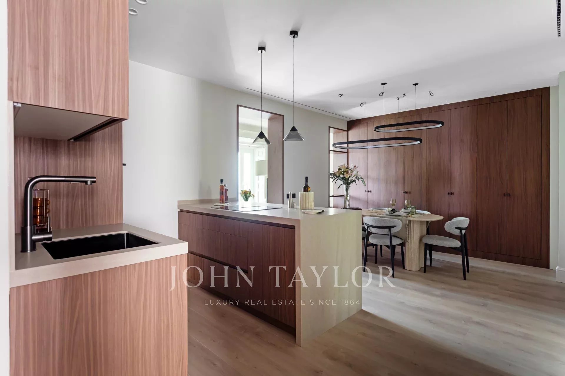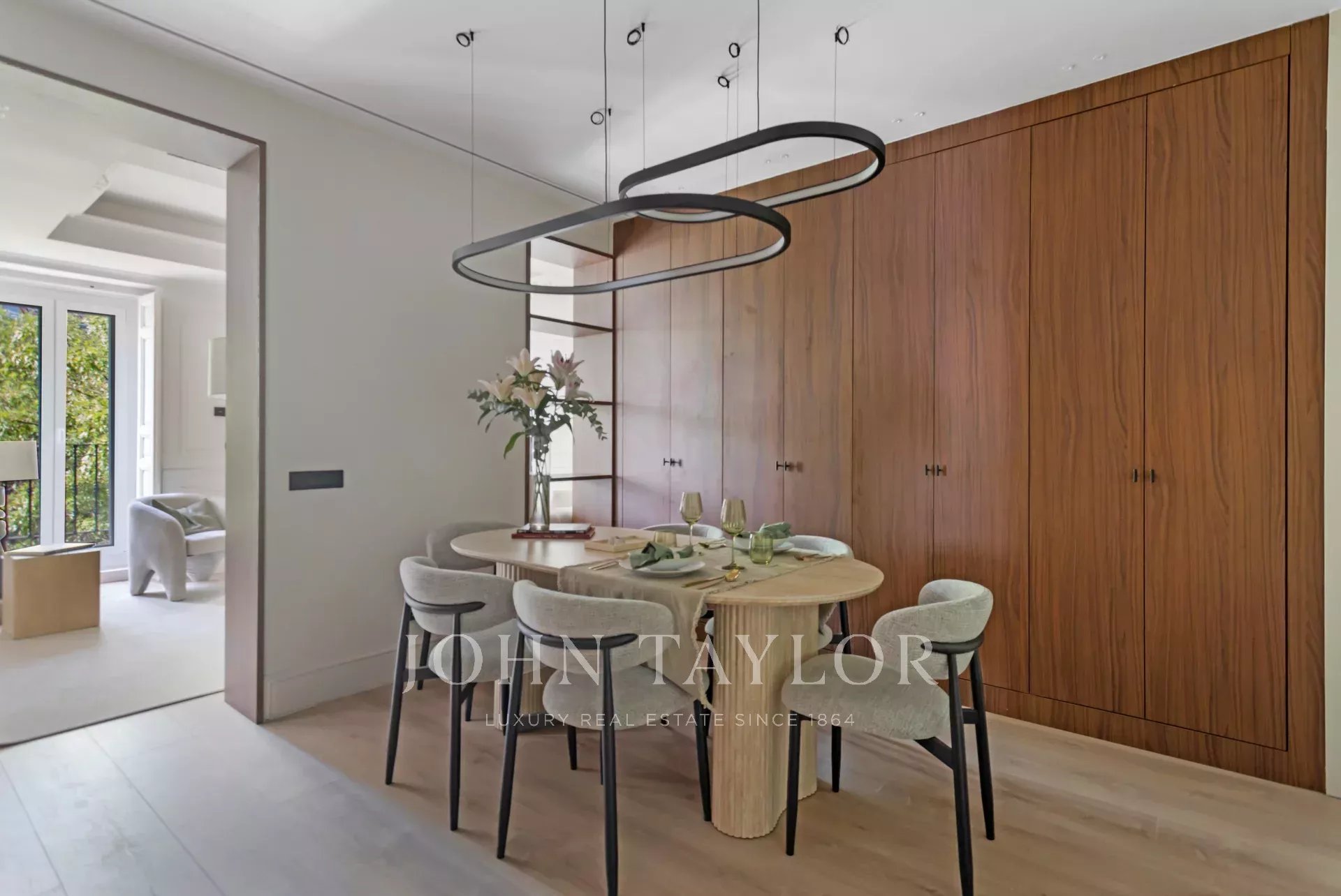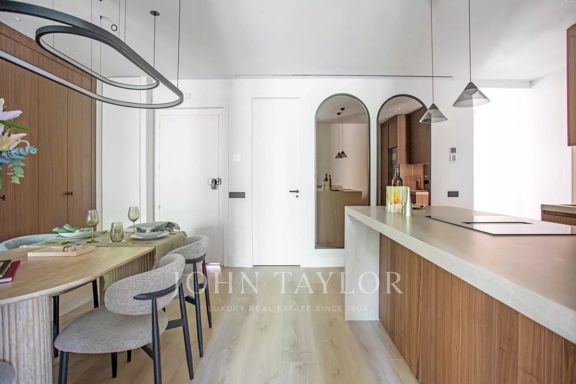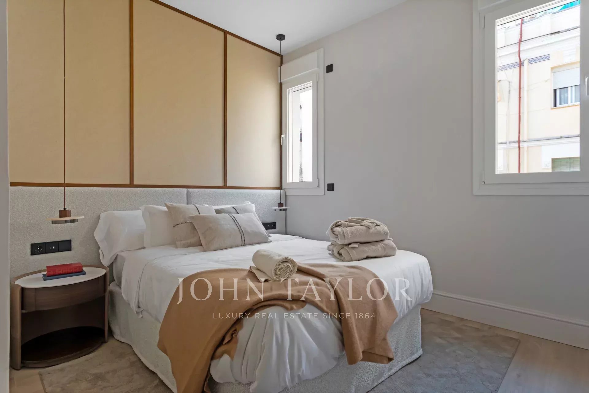 A John Taylor apresenta esta elegante propriedade nova, completamente remodelada e mobilada, situada no primeiro andar de uma quinta clássica na Calle Santa Engracia, uma das ruas mais emblemáticas do procurado bairro de Almagro.