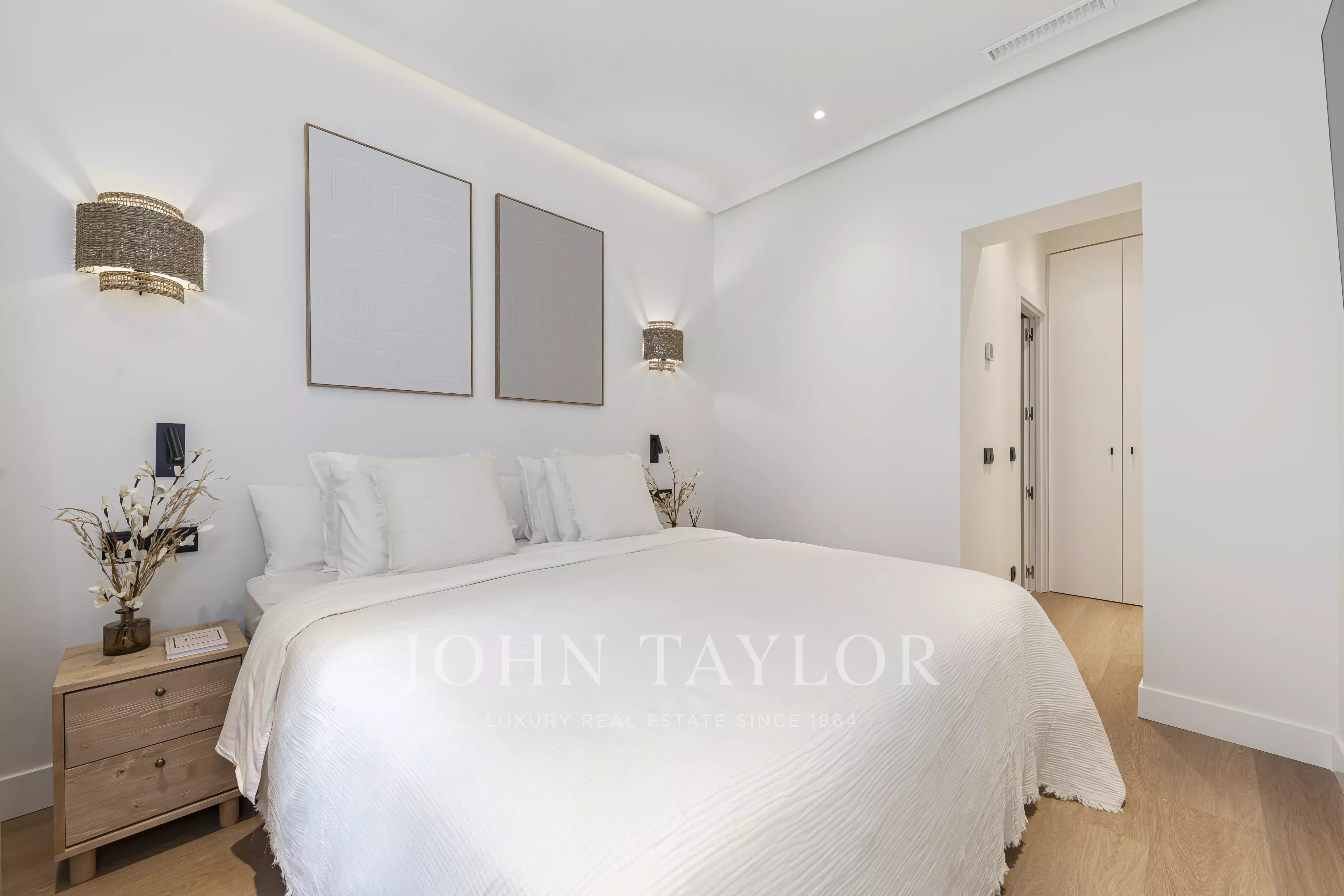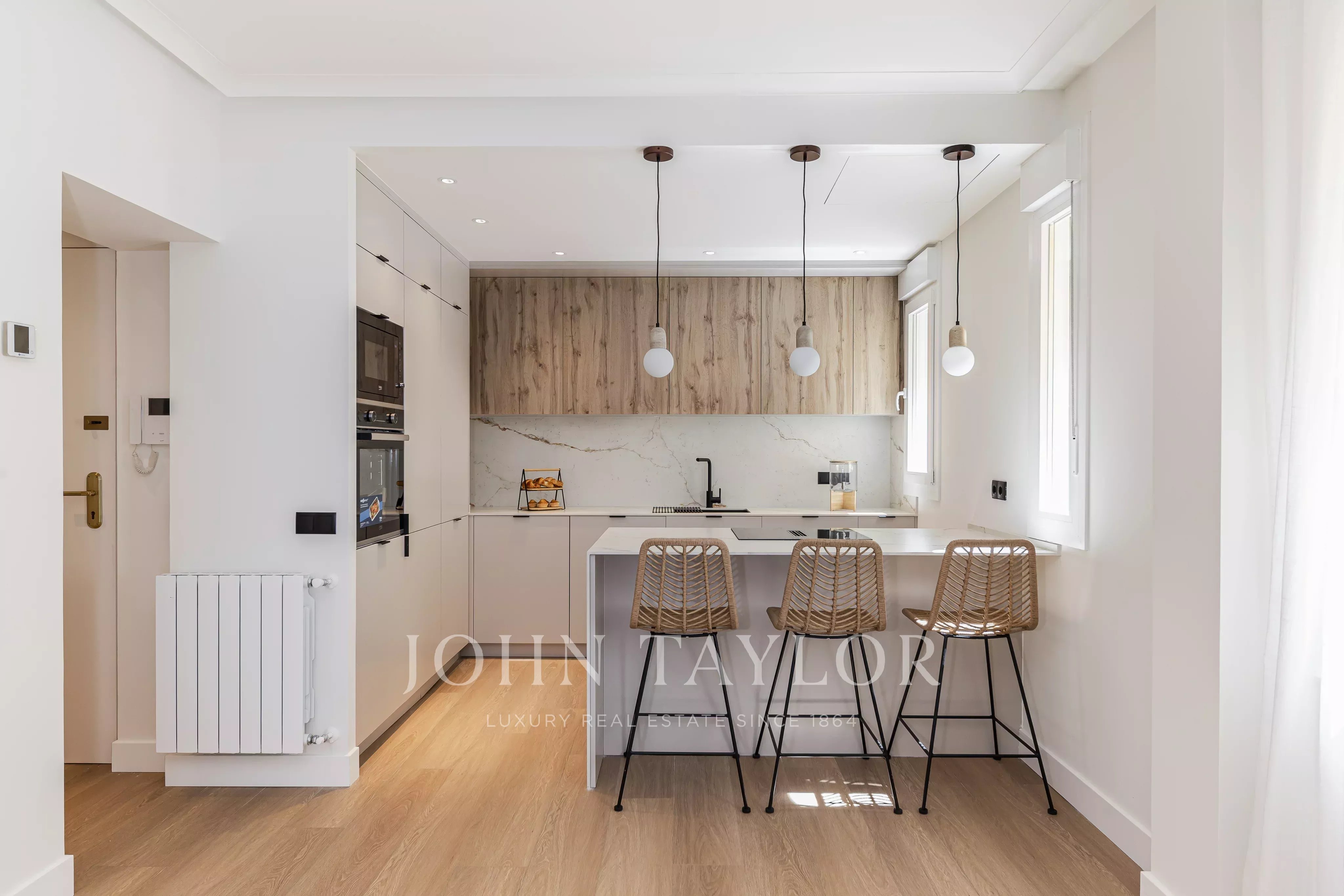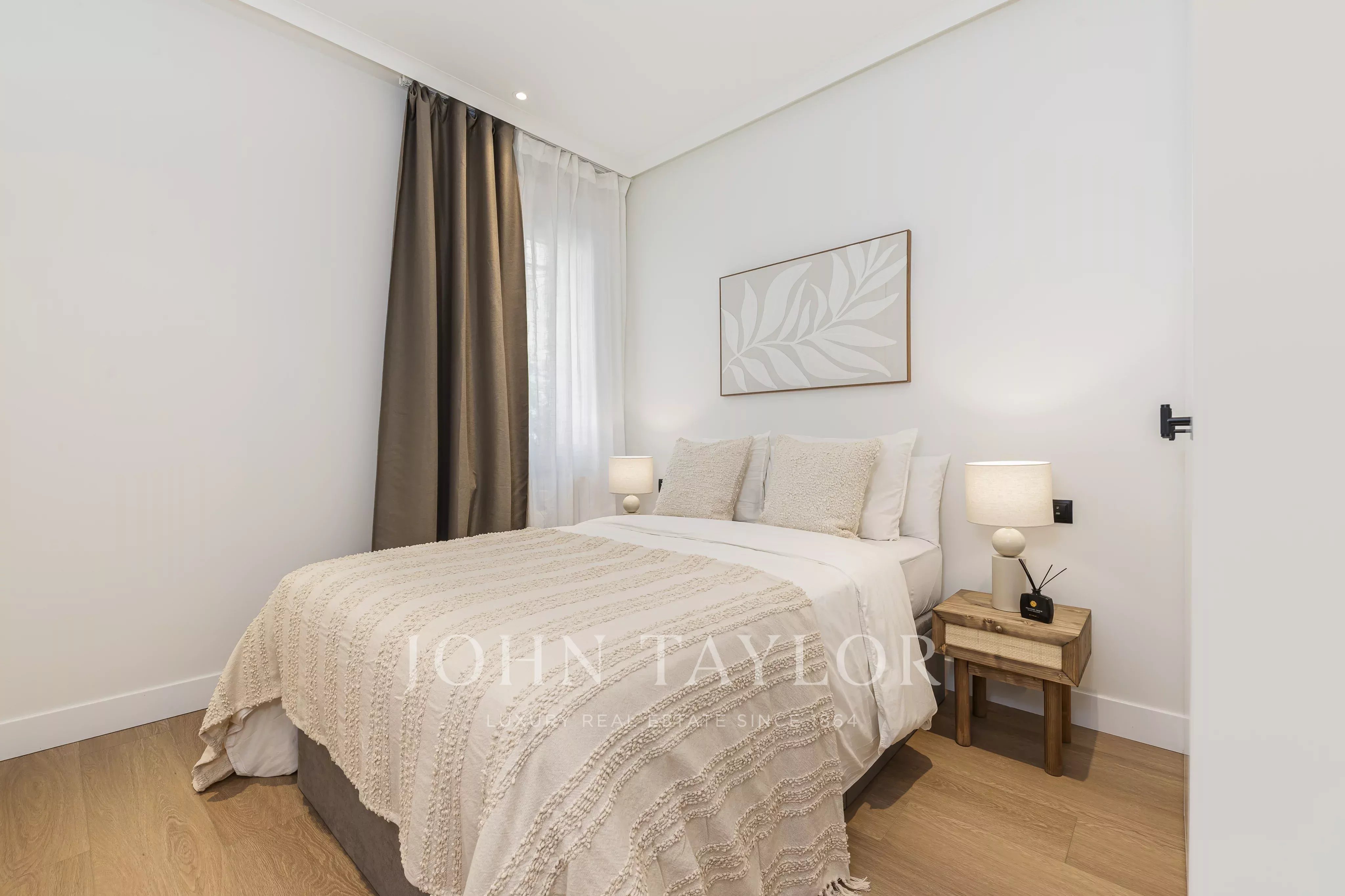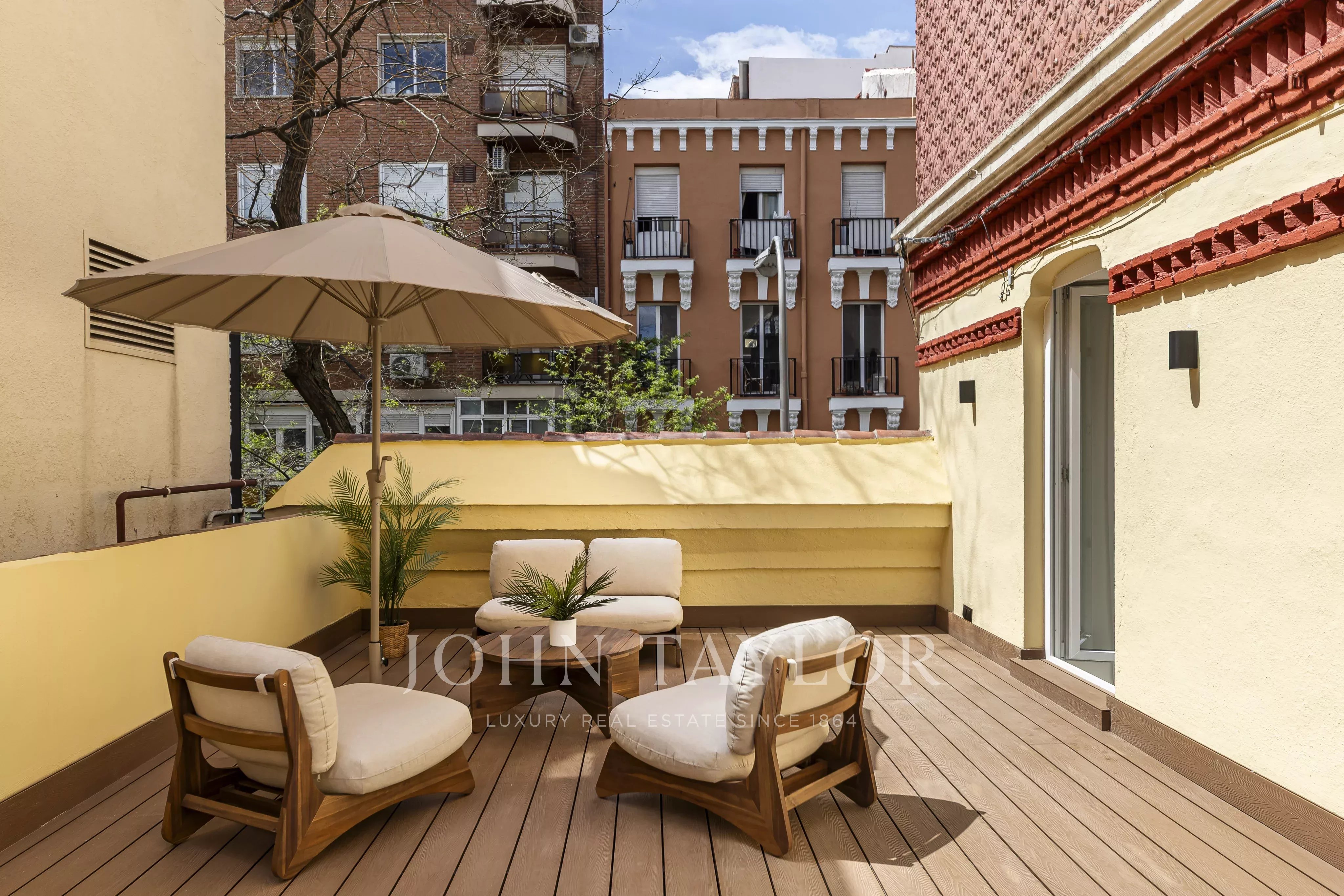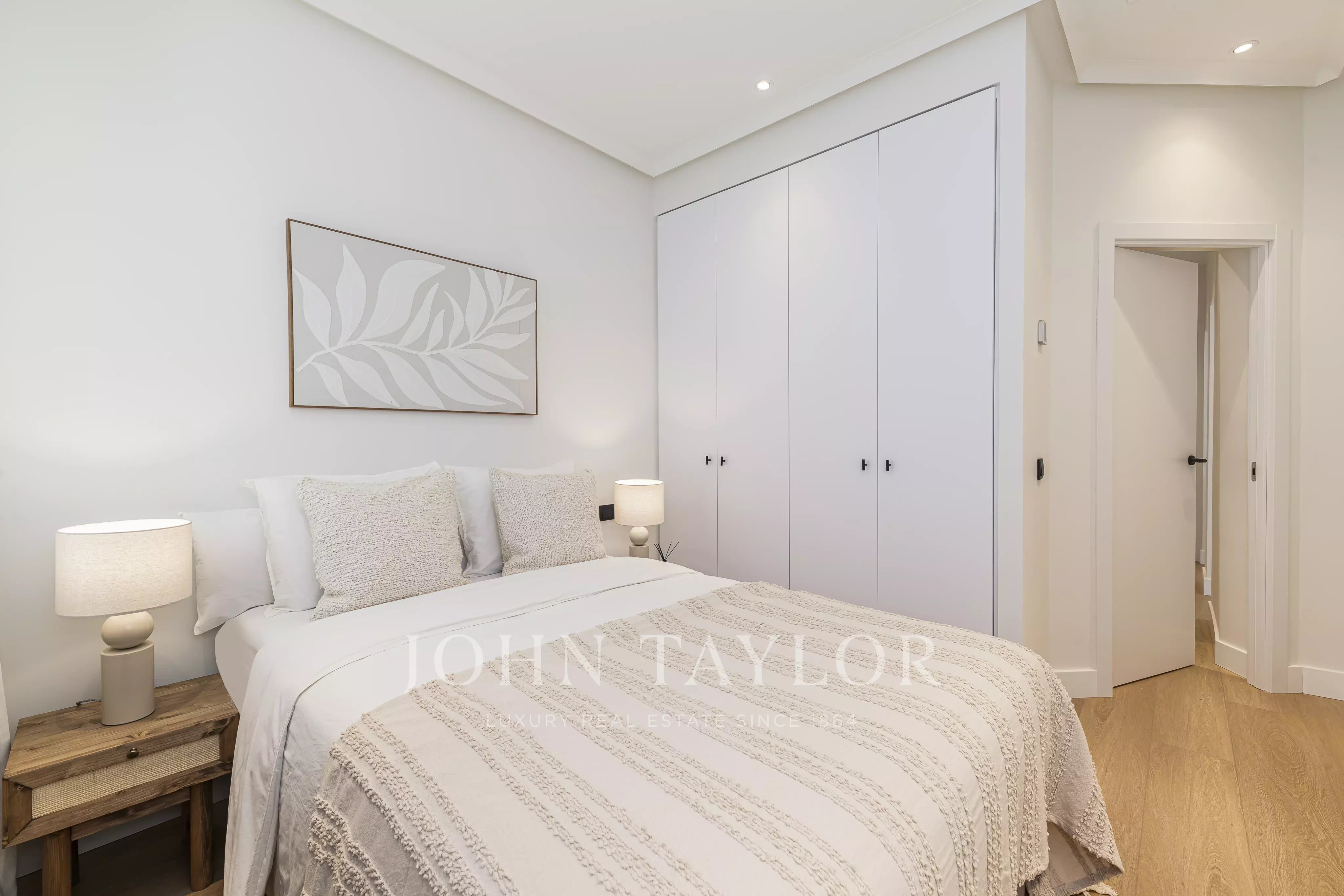 Apresentamos este elegante apartamento de 147,05 m² à venda em Chamberí Almagro, uma das zonas mais exclusivas de Madrid. Com dois quartos amplos, o imóvel destaca-se pelo seu design moderno, iluminação natural e uma fabulosa área externa privativa, perfeita para desfrutar ao ar livre ou receber convidados com conforto e privacidade.