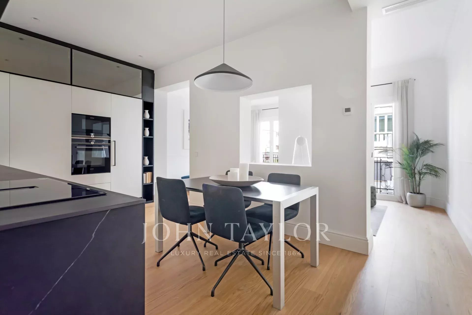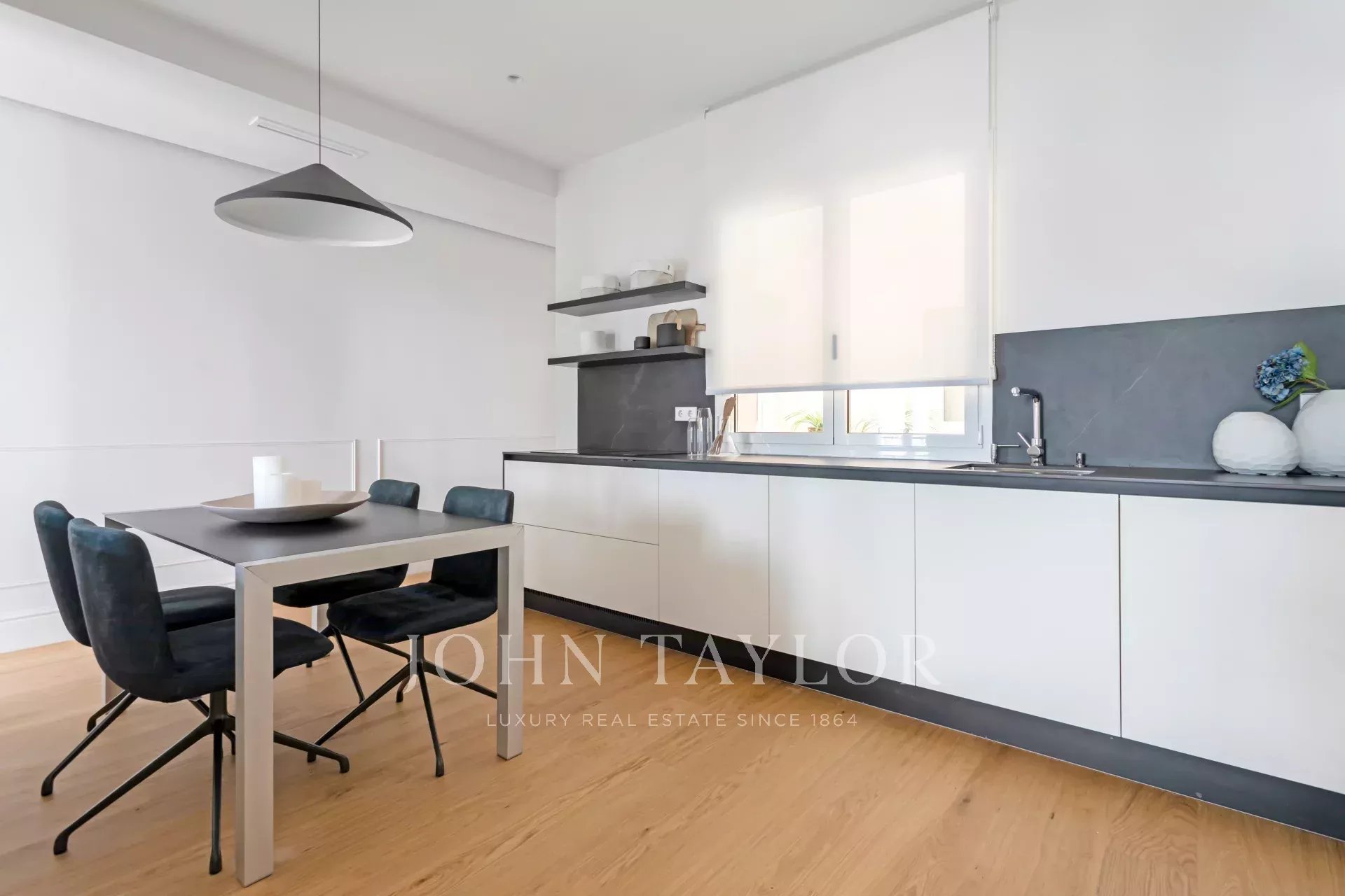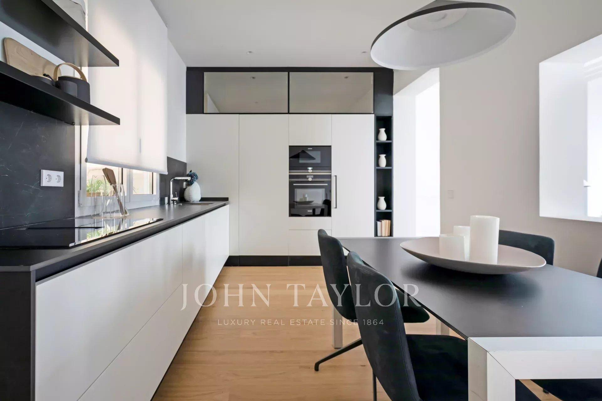 A cozinha é da ARCLINEA e está equipada com electrodomésticos GAGGENAU. Esta propriedade excecional tem dois quartos e duas casas de banho. A zona exterior é ocupada pela luminosa sala de estar com duas varandas viradas a nascente e belas vistas.