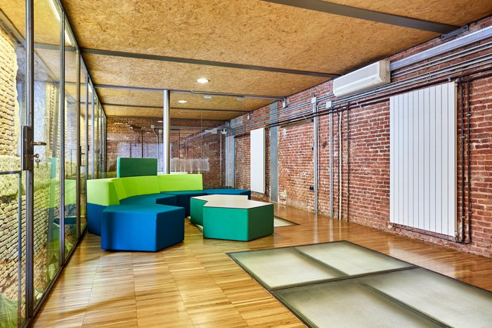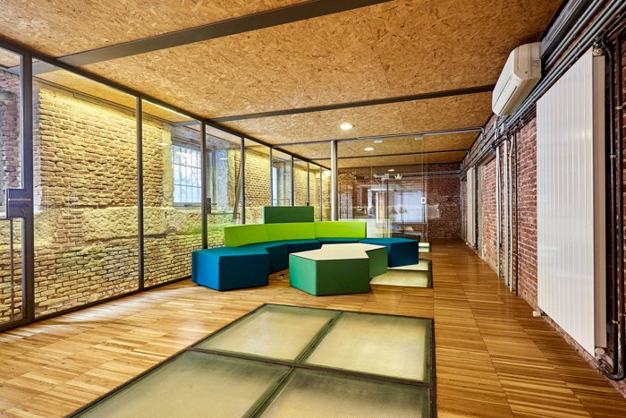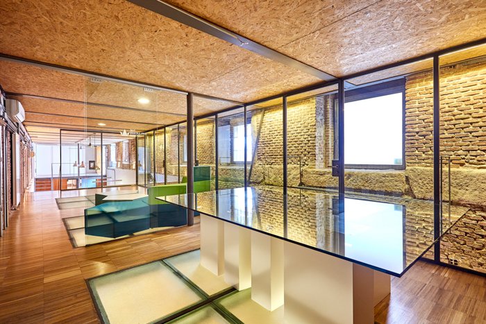 Reformado com um cuidado projeto urbano-industrial, combina materiais modernos (cristal e aço) com elementos originais centenários como tijolo à vista e pedra.