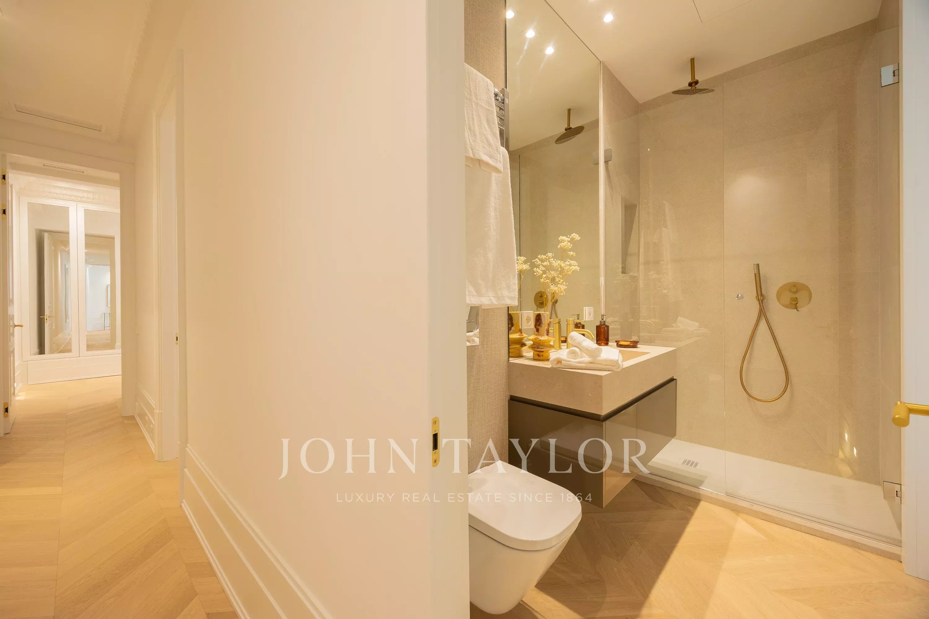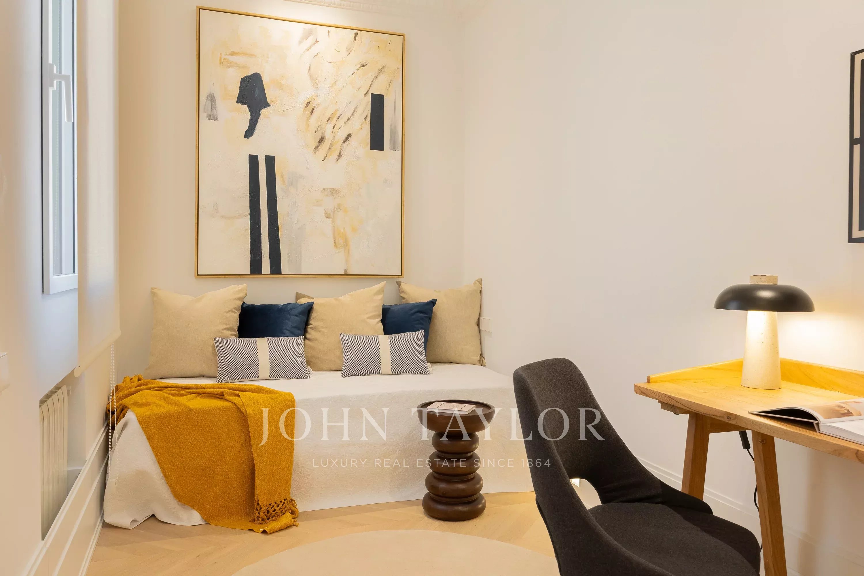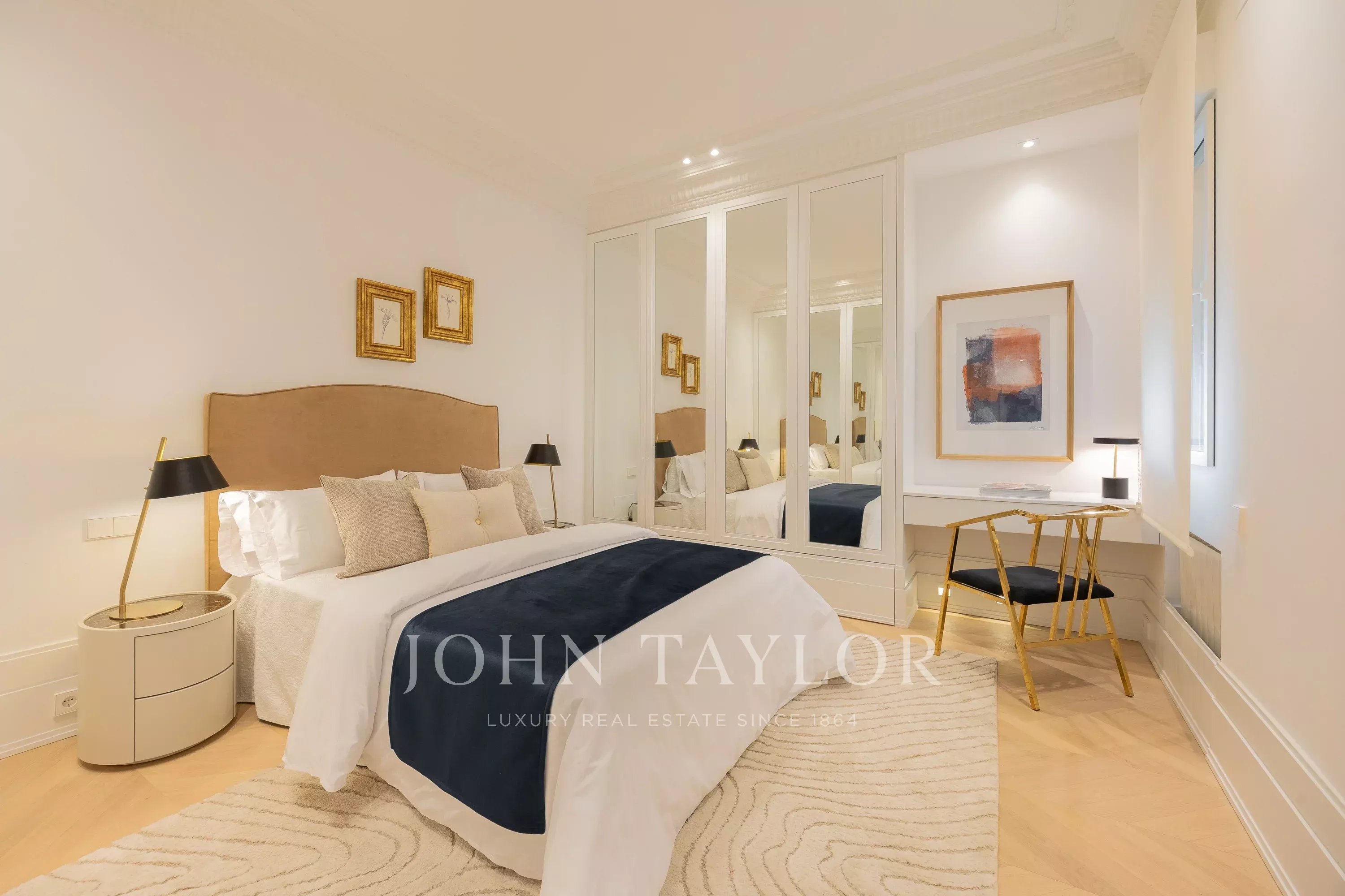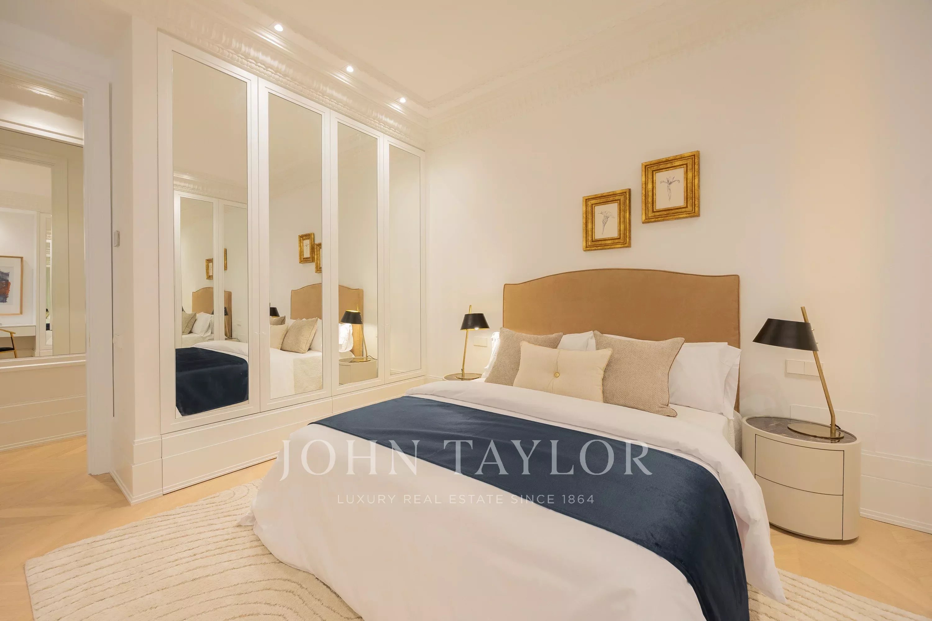 Vivienda exclusiva de 145 m² situada en una quinta planta exterior en el prestigioso barrio de Trafalgar, Chamberí, en un edificio de cuidada fachada clásica.