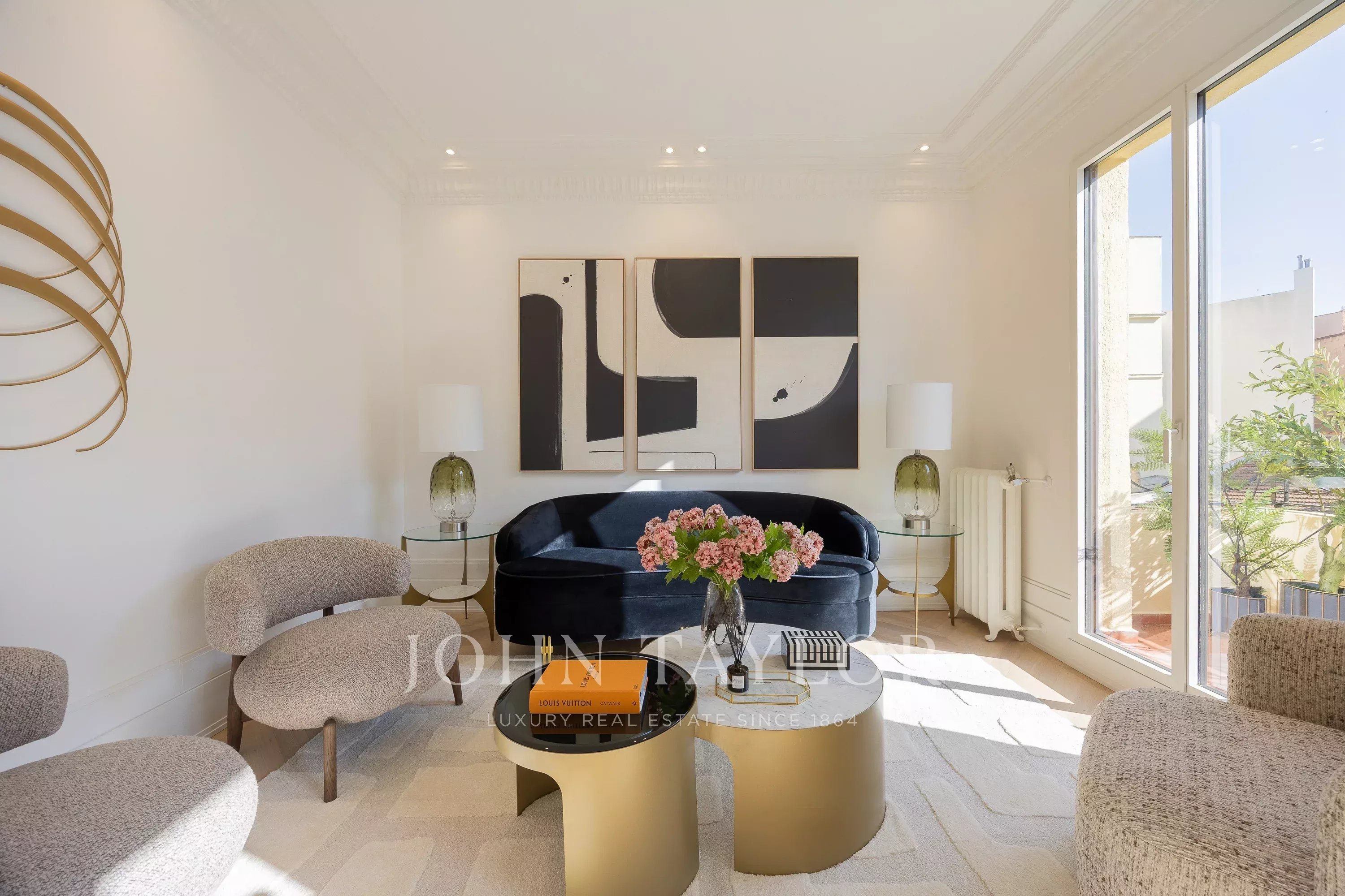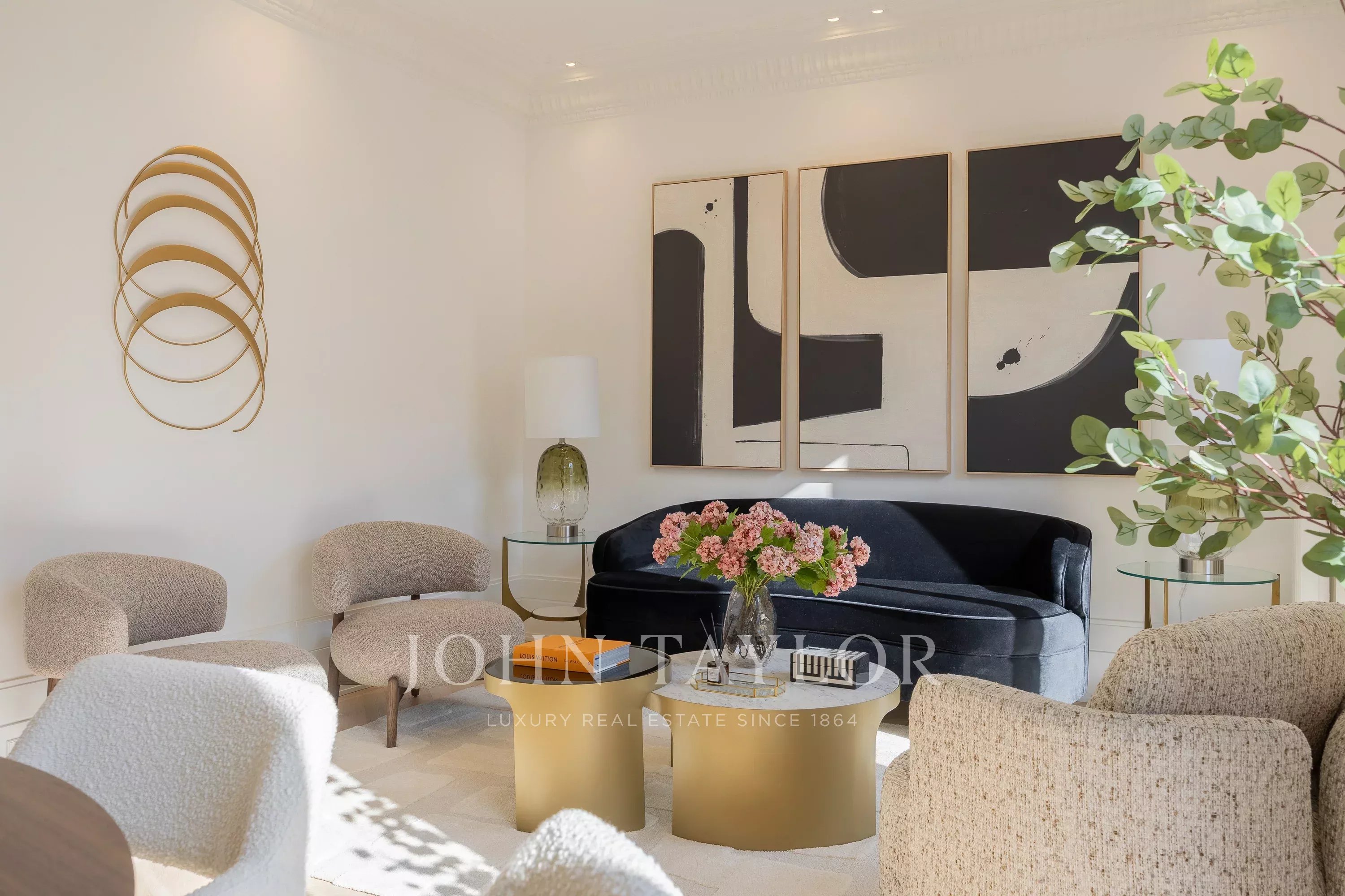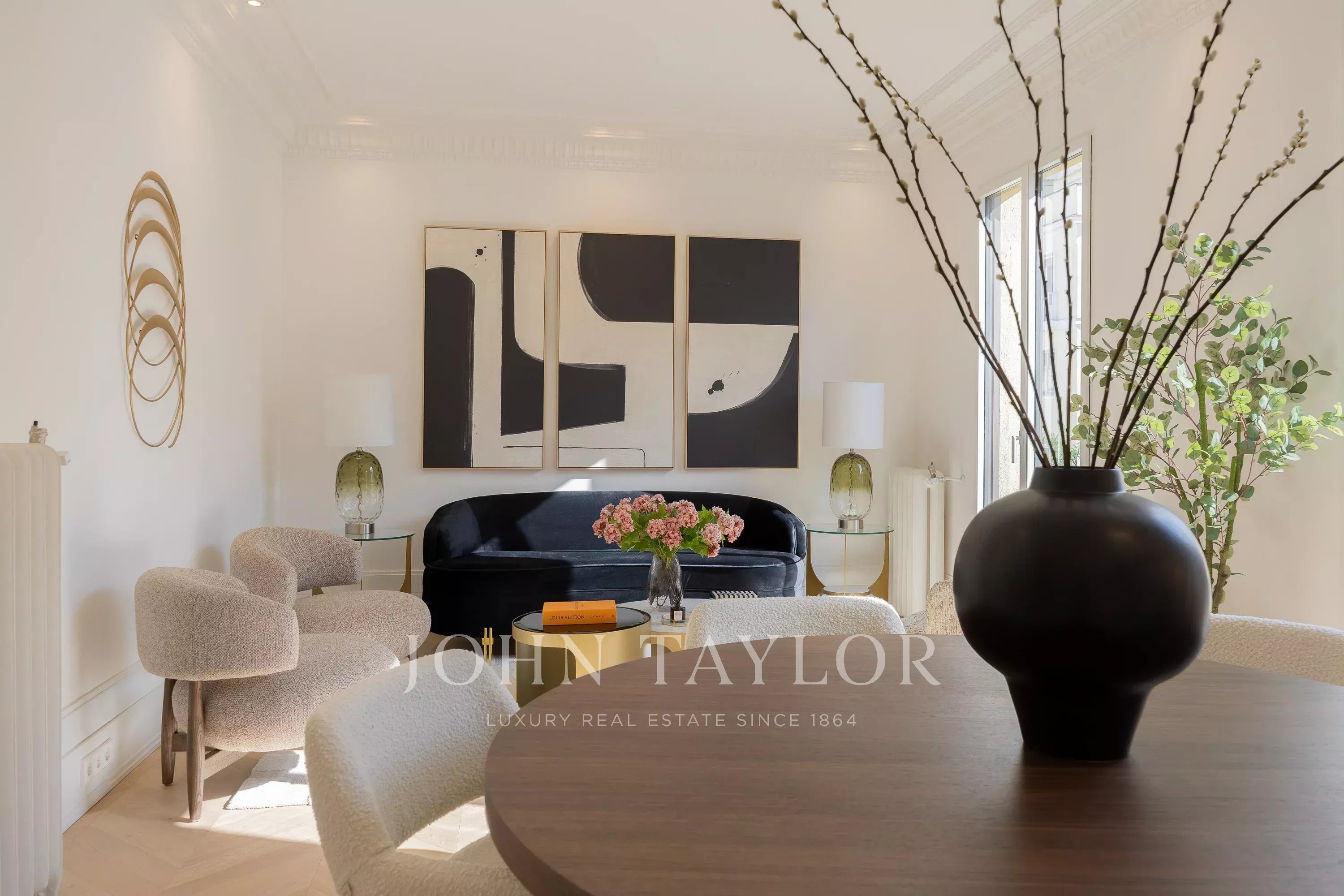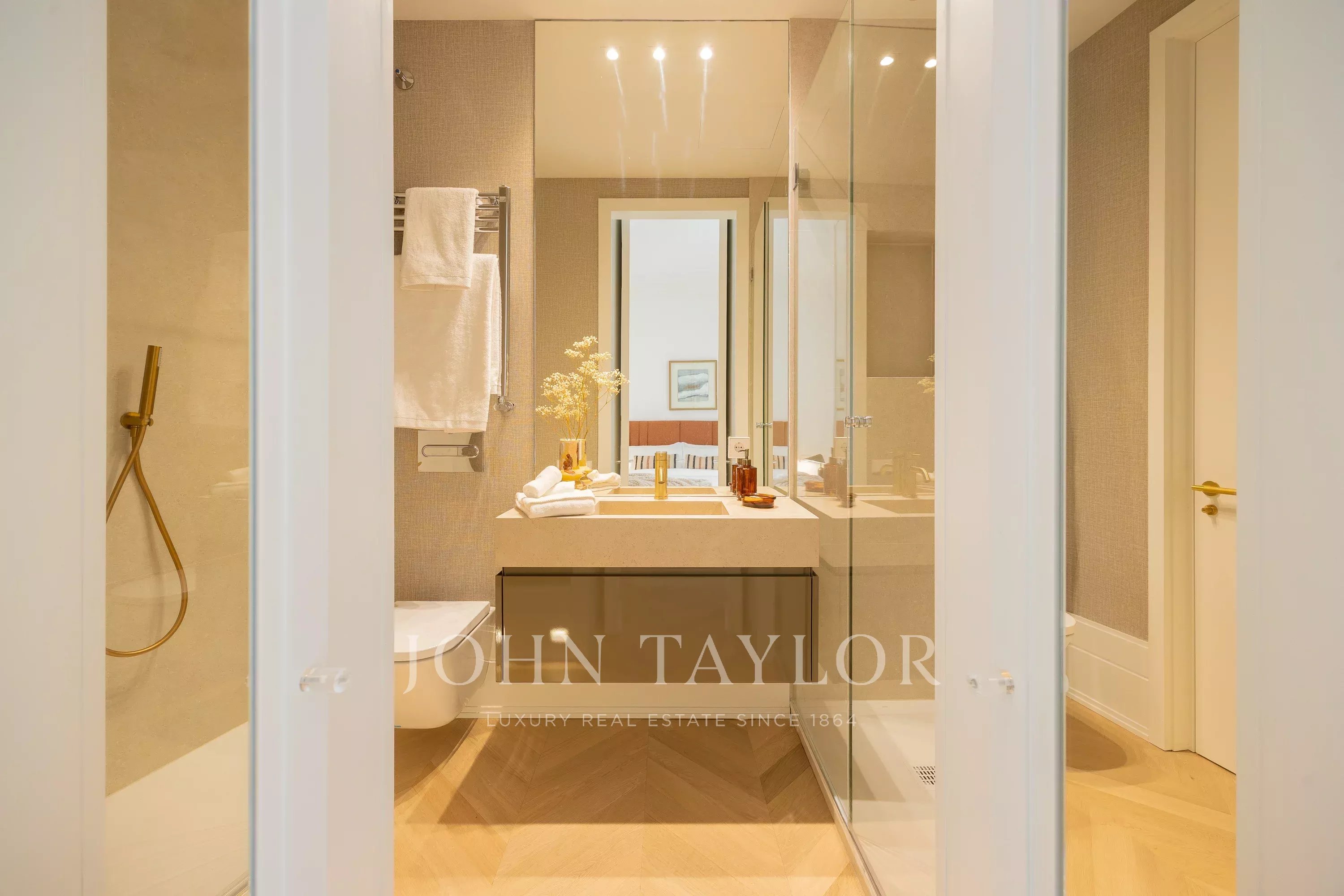 Vivienda exclusiva de 145 m² situada en una quinta planta exterior en el prestigioso barrio de Trafalgar, Chamberí, en un edificio de cuidada fachada clásica.