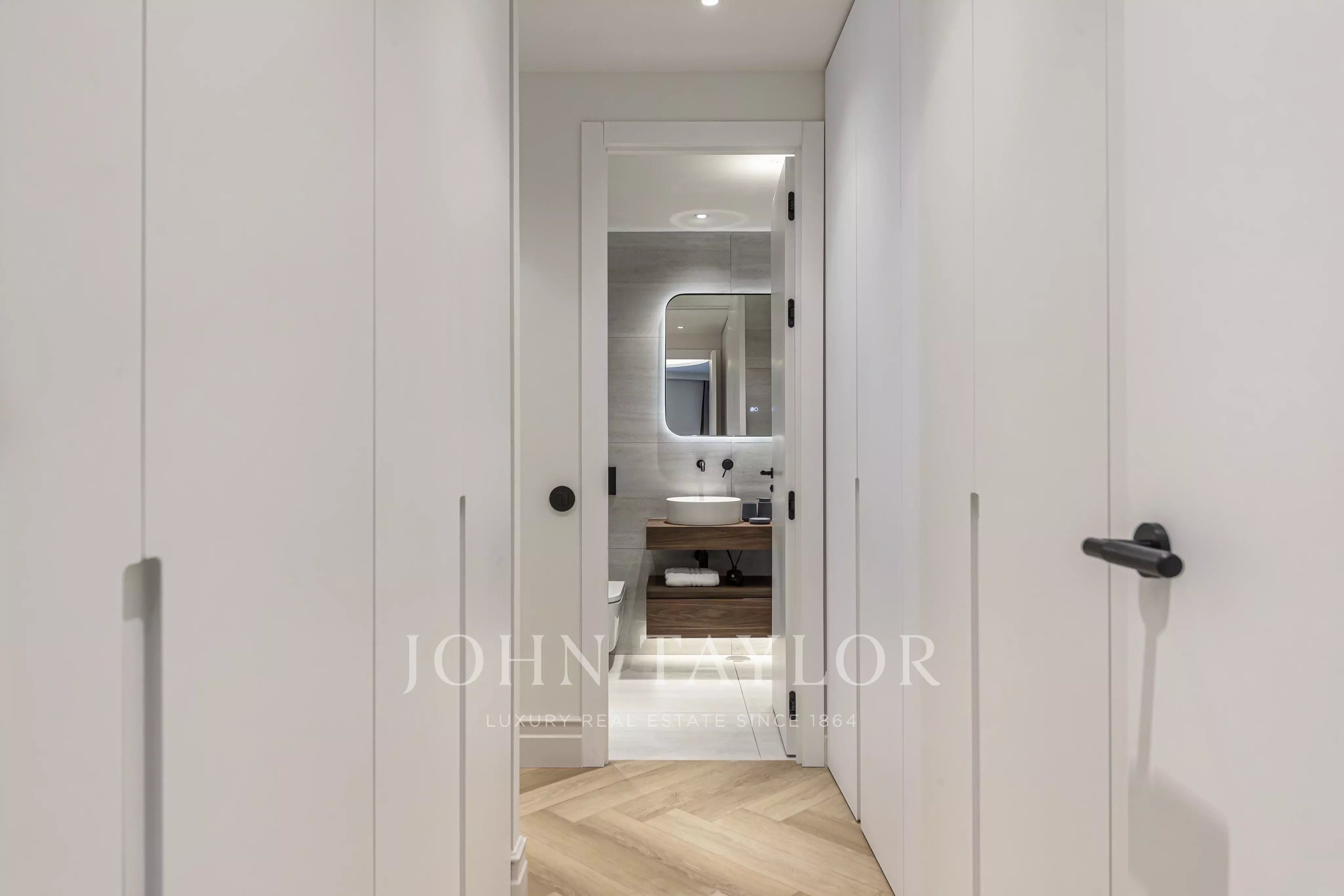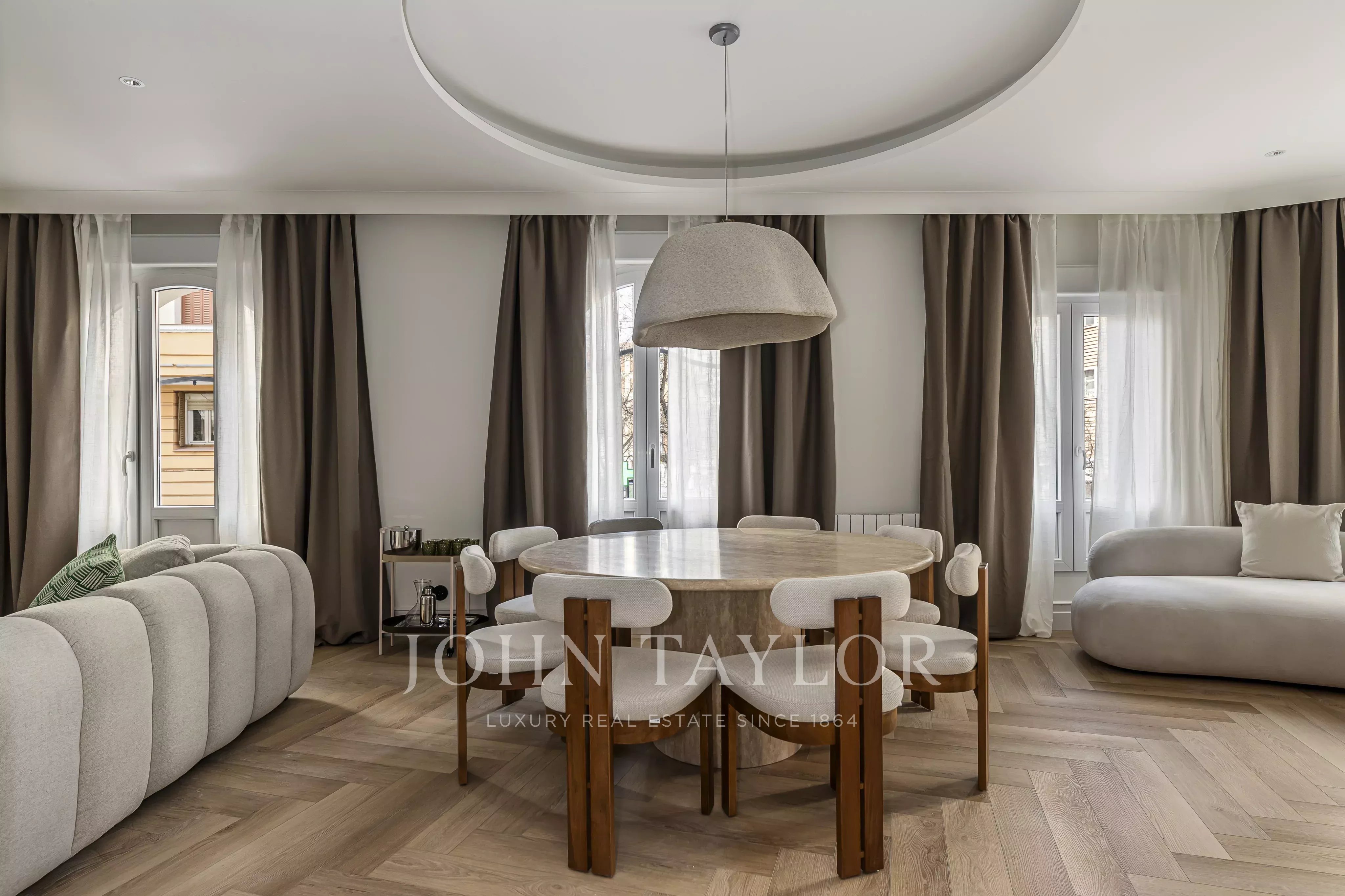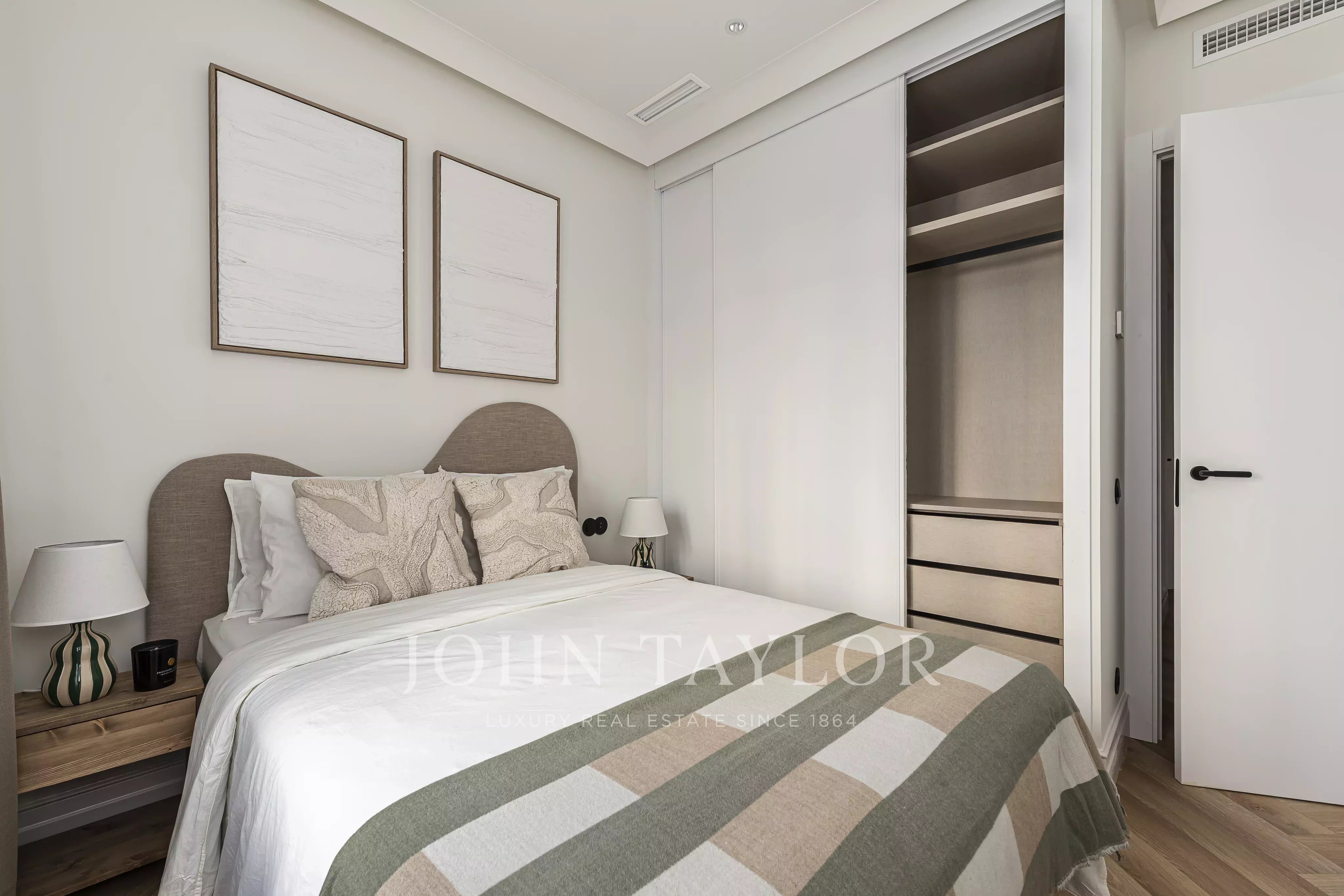 Descubra este elegante apartamento de 157 m² localizado no prestigiado bairro de Chamberí Trafalgar, em Madrid. Totalmente mobiliado, o imóvel possui três amplos quartos, espaços integrados com decoração contemporânea e iluminação natural abundante graças às janelas de PVC e portas de correr que proporcionam conforto e modernidade ao ambiente.