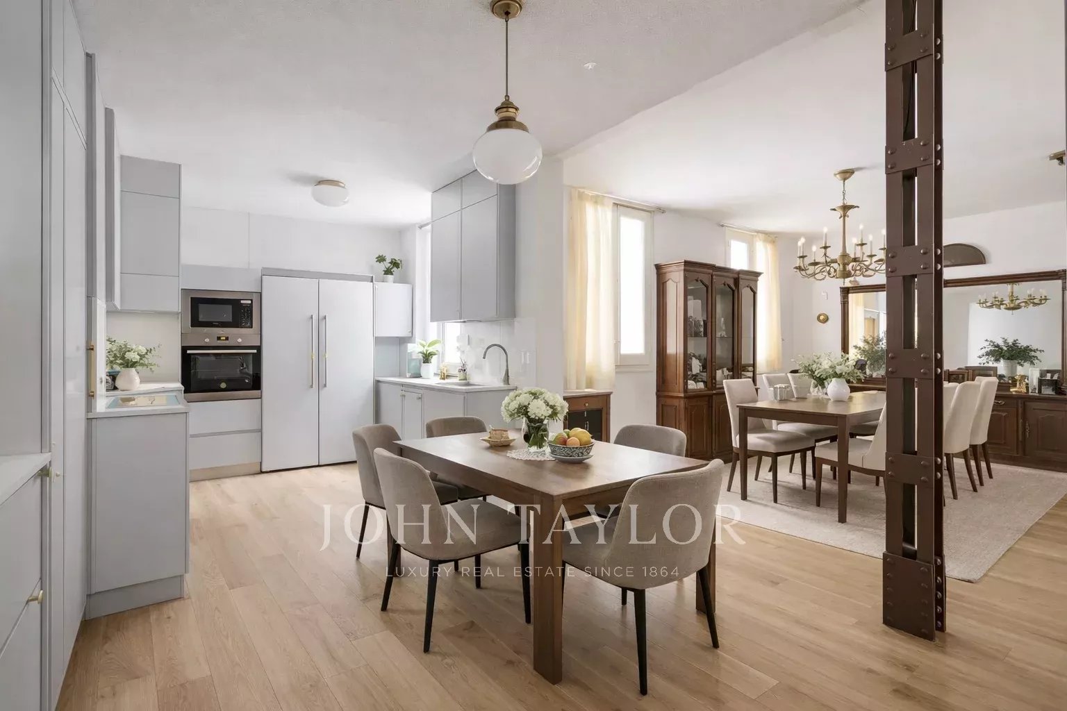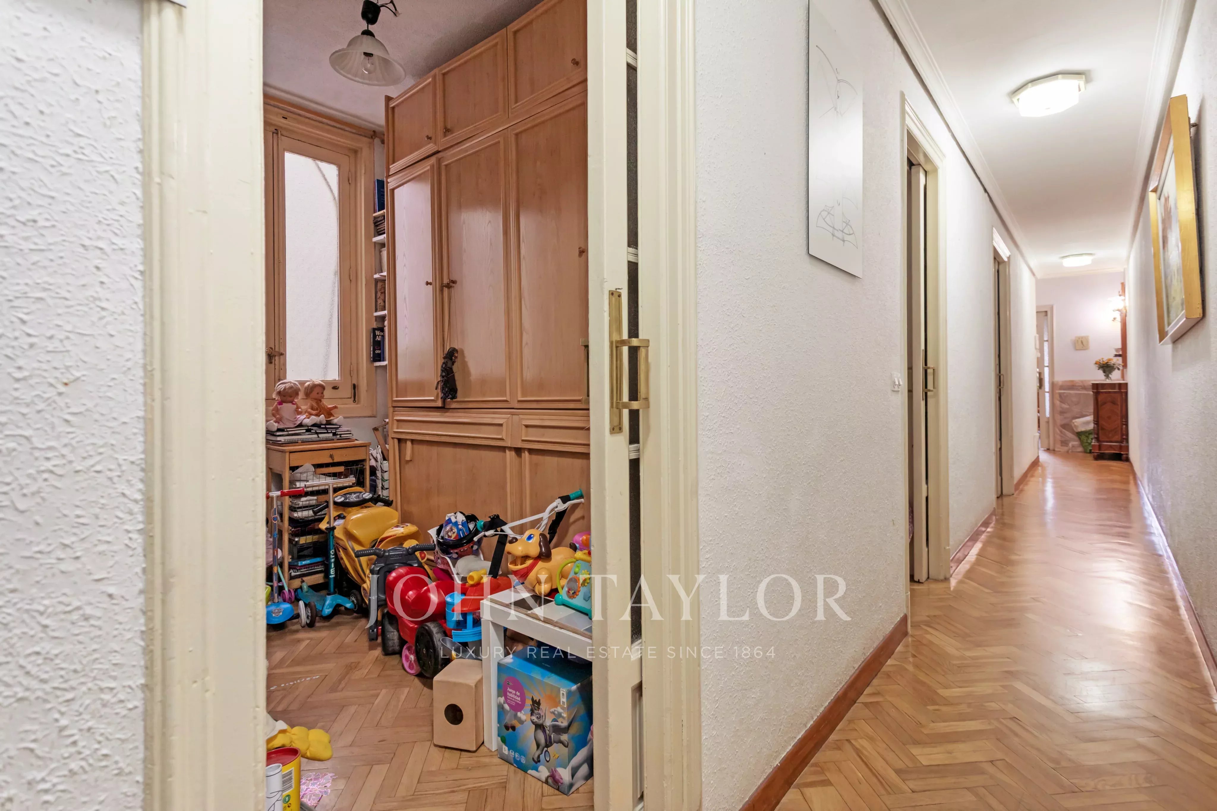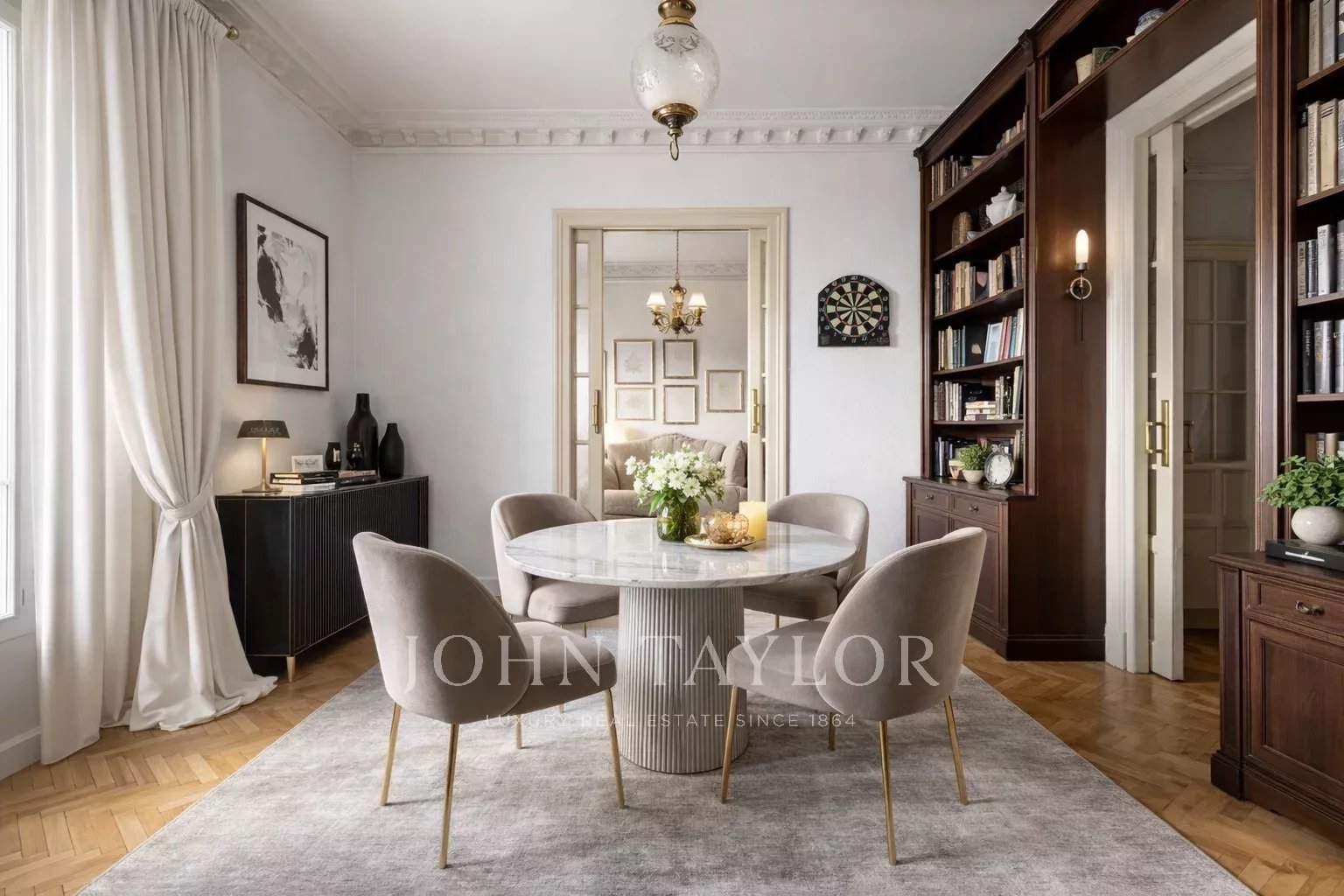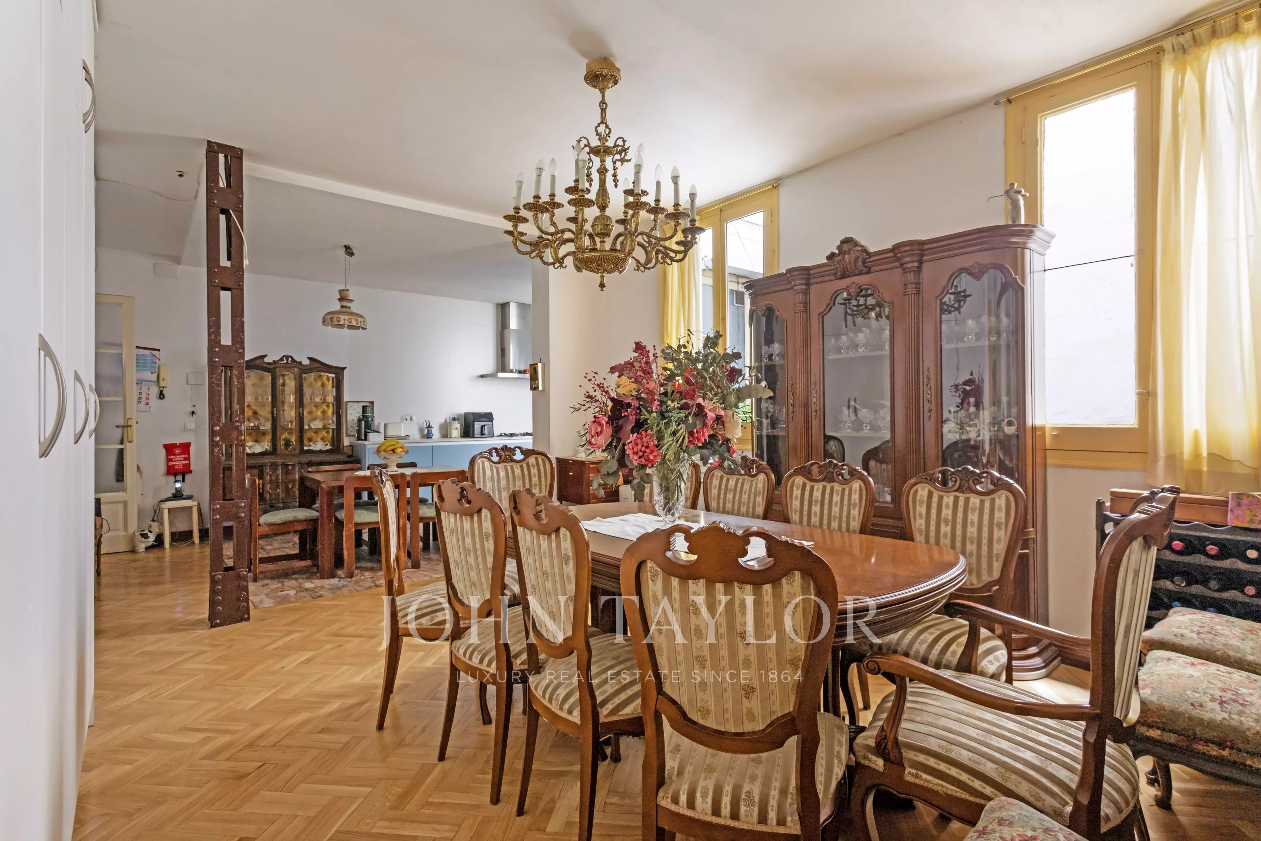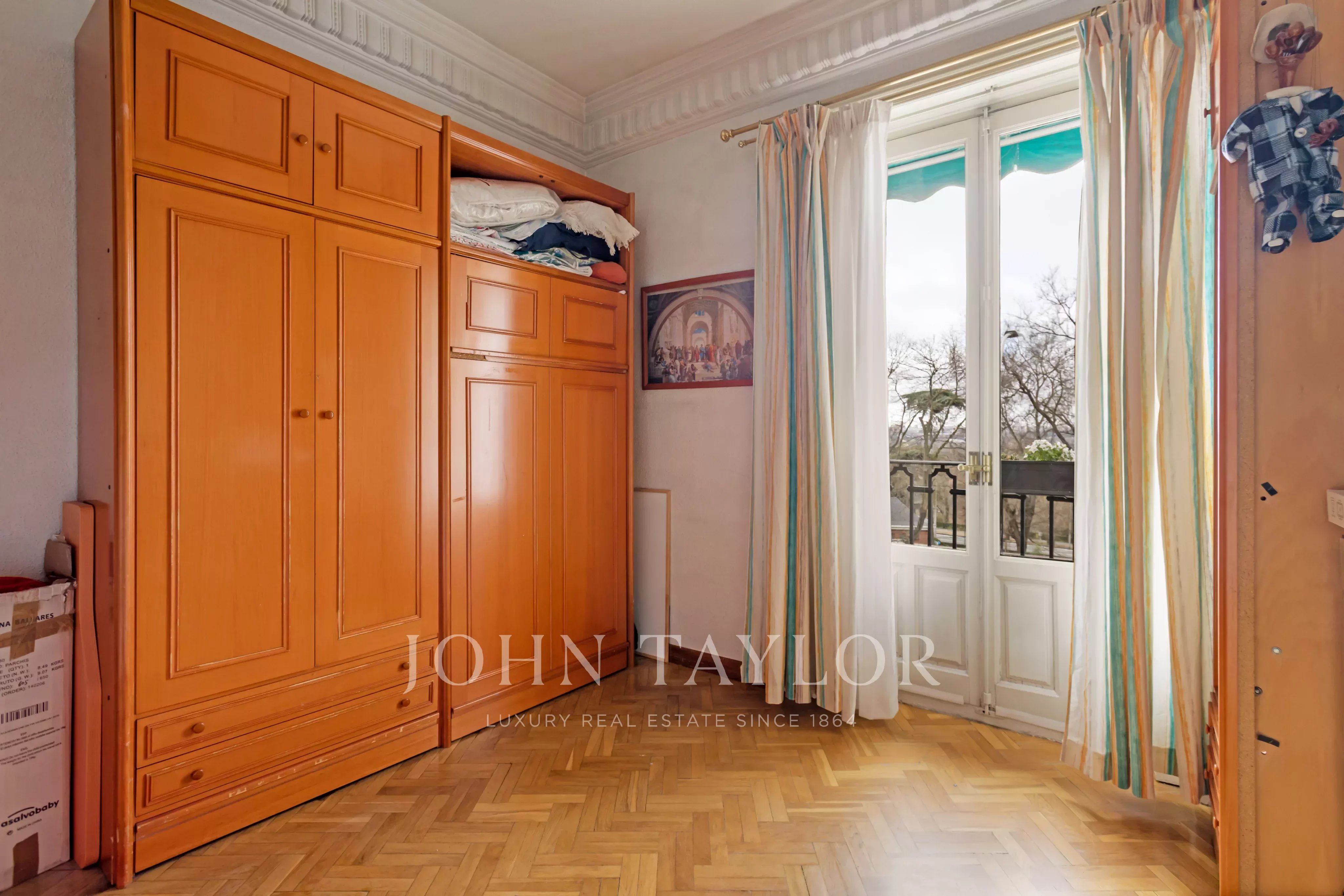 A propriedade destaca-se pelo seu carácter imponente, com tectos altos, molduras clássicas e uma arquitetura que evoca a elegância de um autêntico apartamento palaciano. A sala de estar, espaçosa e banhada por luz natural, abre-se para imponentes varandas com vista direta para o parque, um espaço protegido que garante uma privacidade absoluta e vistas inalteráveis ao longo do tempo.