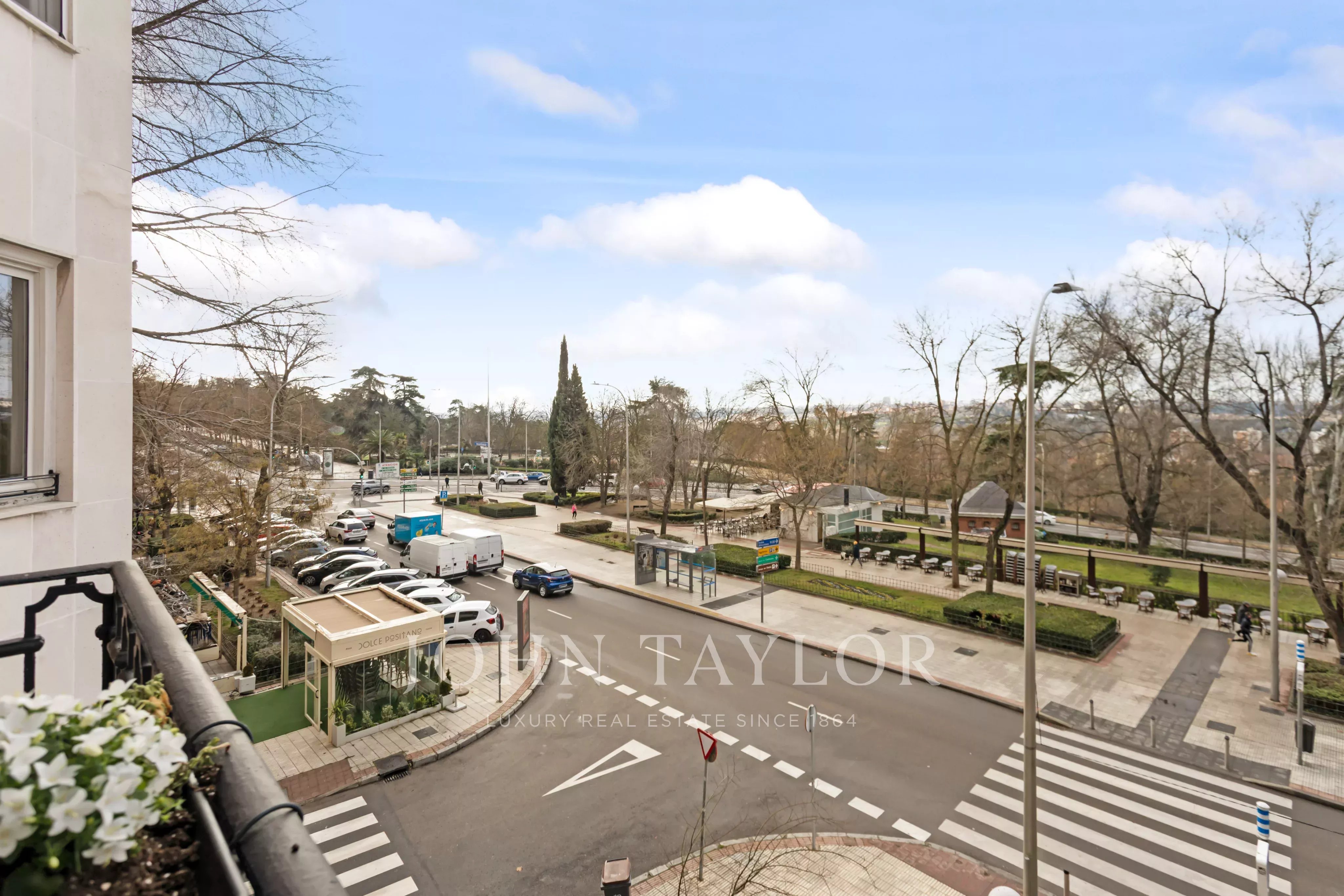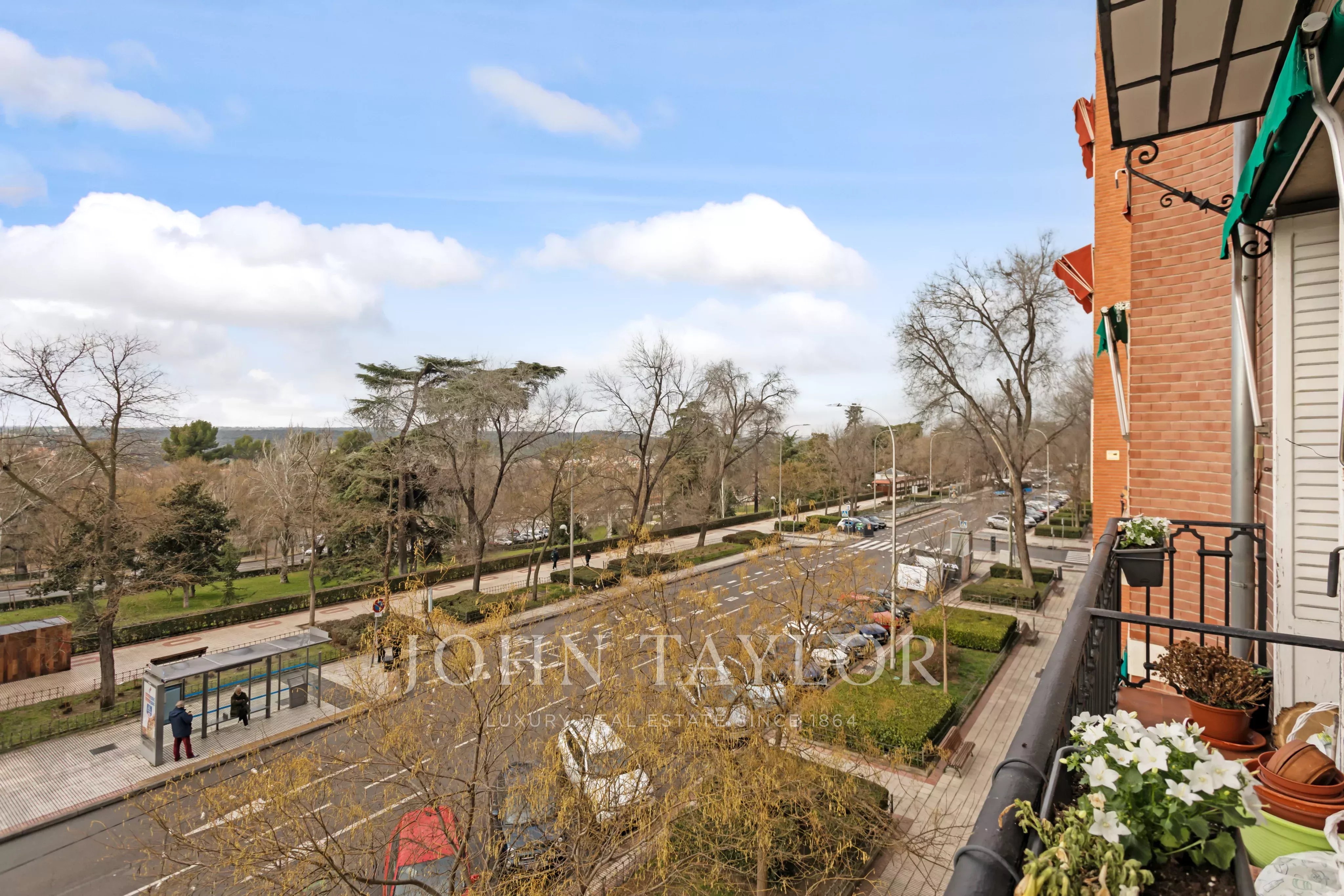 Apresentamos em exclusivo esta imponente propriedade com vistas espectaculares sobre o Parque del Oeste, que se estendem visualmente até à vegetação da Casa de Campo. Das suas varandas, cada entardecer transforma-se num espetáculo único, oferecendo um pôr do sol fascinante num dos cenários mais privilegiados de Madrid.