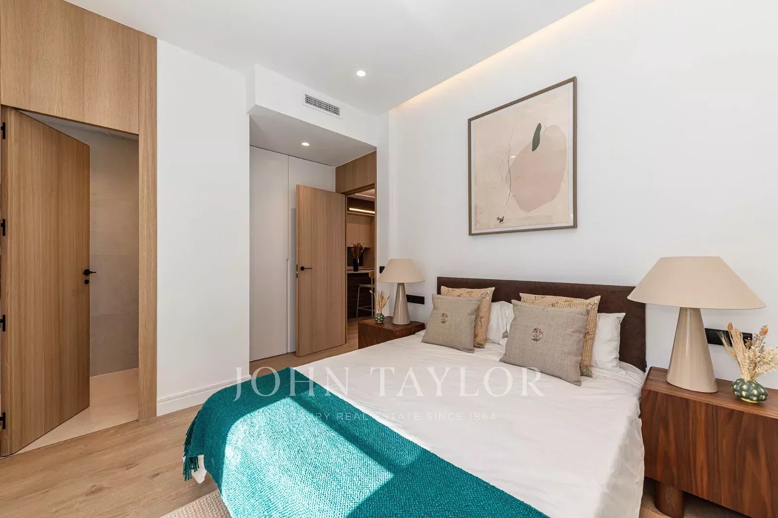 Encante-se com este espaçoso apartamento de 120 m² à venda no cobiçado bairro Retiro, Madrid. Com três dormitórios bem distribuídos e ambientes integrados, o imóvel oferece excelente luminosidade natural e um alto padrão de acabamento. O apartamento está totalmente mobiliado com móveis de design contemporâneo, ar-condicionado em todos os ambientes e iluminação externa que valoriza cada detalhe.