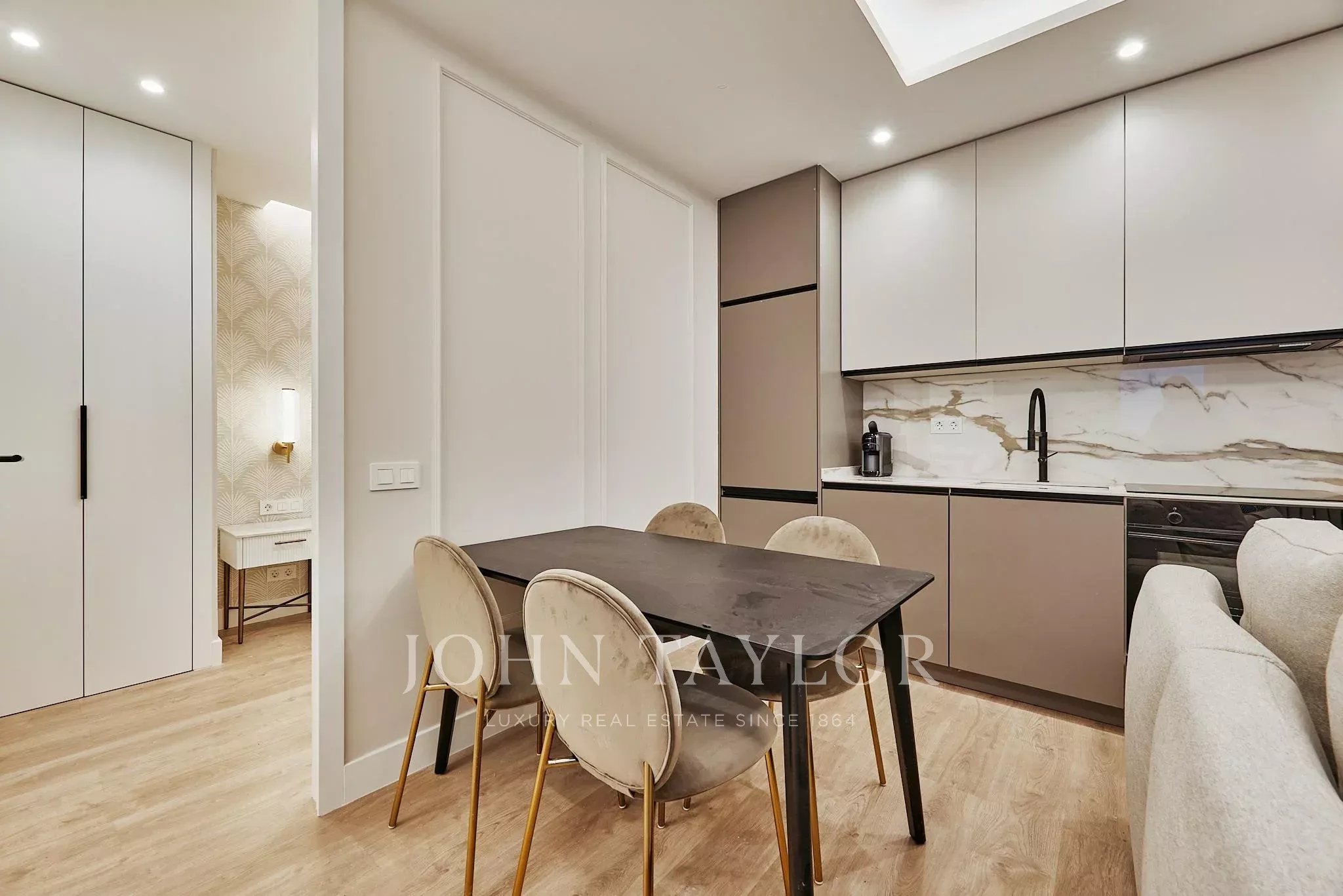 Localizada no segundo andar interior de um edifício clássico com elevador e portaria, a habitação foi remodelada com um design funcional e cuidado, otimizando cada espaço. A sala de estar com cozinha integrada, totalmente equipada, cria um ambiente prático e acolhedor.