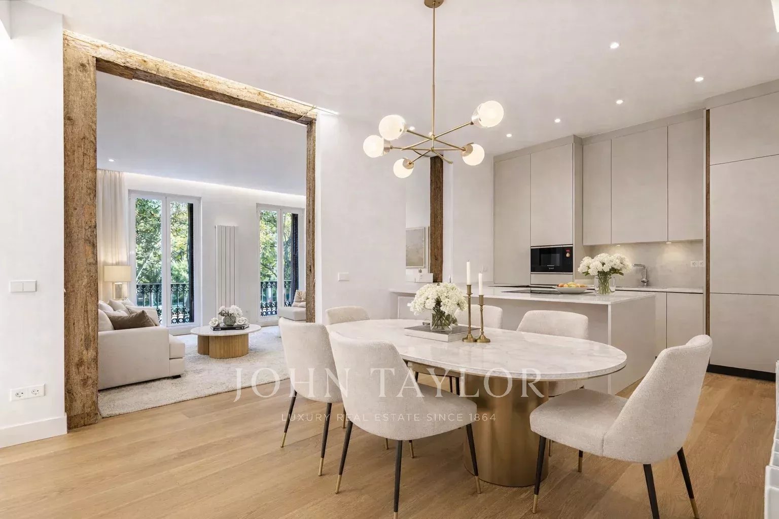 A casa destaca-se pela sua amplitude, altura e luminosidade, com grandes janelas que permitem a entrada constante de luz natural e oferecem vistas desafogadas sobre a envolvente verde do Retiro, um privilégio difícil de encontrar no centro da cidade. Elementos estruturais como as vigas expostas conferem carácter e reforçam o potencial de uma remodelação que combina design contemporâneo e elegância intemporal.