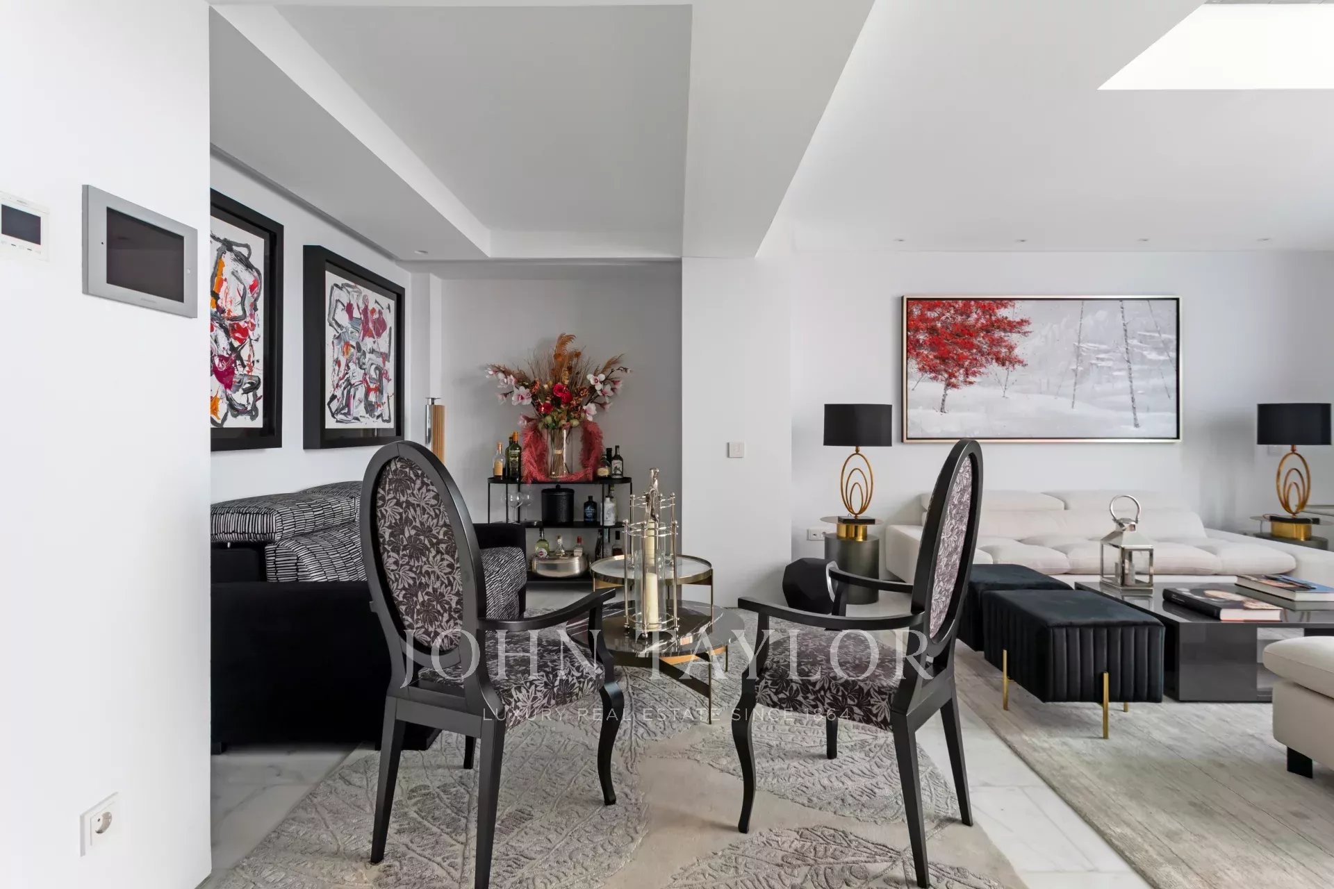 Espetacular duplex renovado e mobilado no centro do bairro de Los Jerónimos. Um dos melhores edifícios que foi completamente reabilitado em 2020 e no qual a fachada clássica, o patío central e a entrada de grande valor histórico foram mantidos. Localizado junto à entrada do Parque do Retiro. O imóvel tem uma área de 240m2 distribuída por dois pisos. Acabamentos de primeira qualidade.
