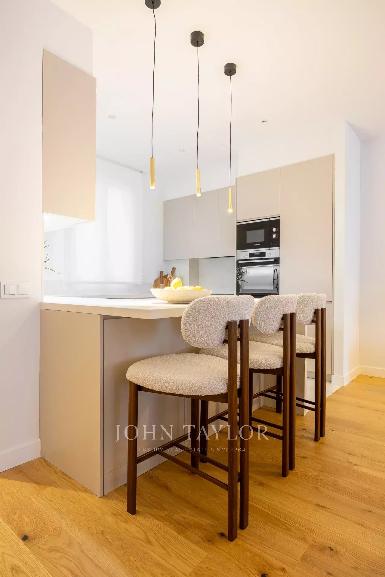 A zona social oferece um open space com sala de estar, sala de jantar e cozinha em plano aberto, totalmente equipada. Nesta zona existe ainda uma casa de banho social. A zona de dormir é composta por três quartos e três casas de banho, todas em suite. Nesta zona existe ainda uma acolhedora área de estar e um escritório.