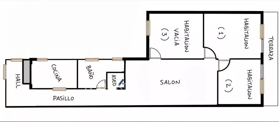 A propriedade tem 3 quartos grandes, uma disposição muito popular para este tamanho. Todos os quartos têm janelas: duas viradas a SUL para a rua e uma para o pátio interior. Todos os três quartos têm fechaduras individuais, e dois deles estão mobilados com camas com cómoda e colchões de alta qualidade.