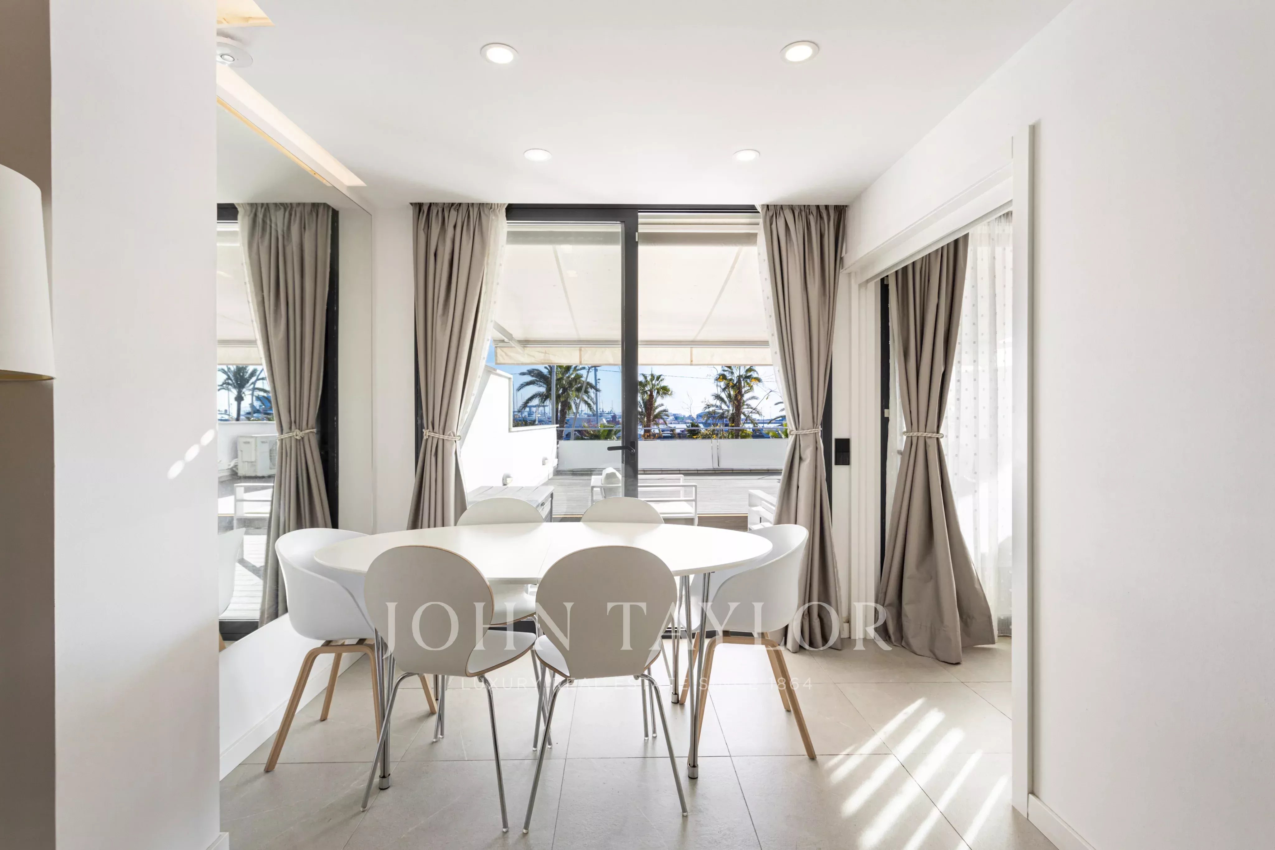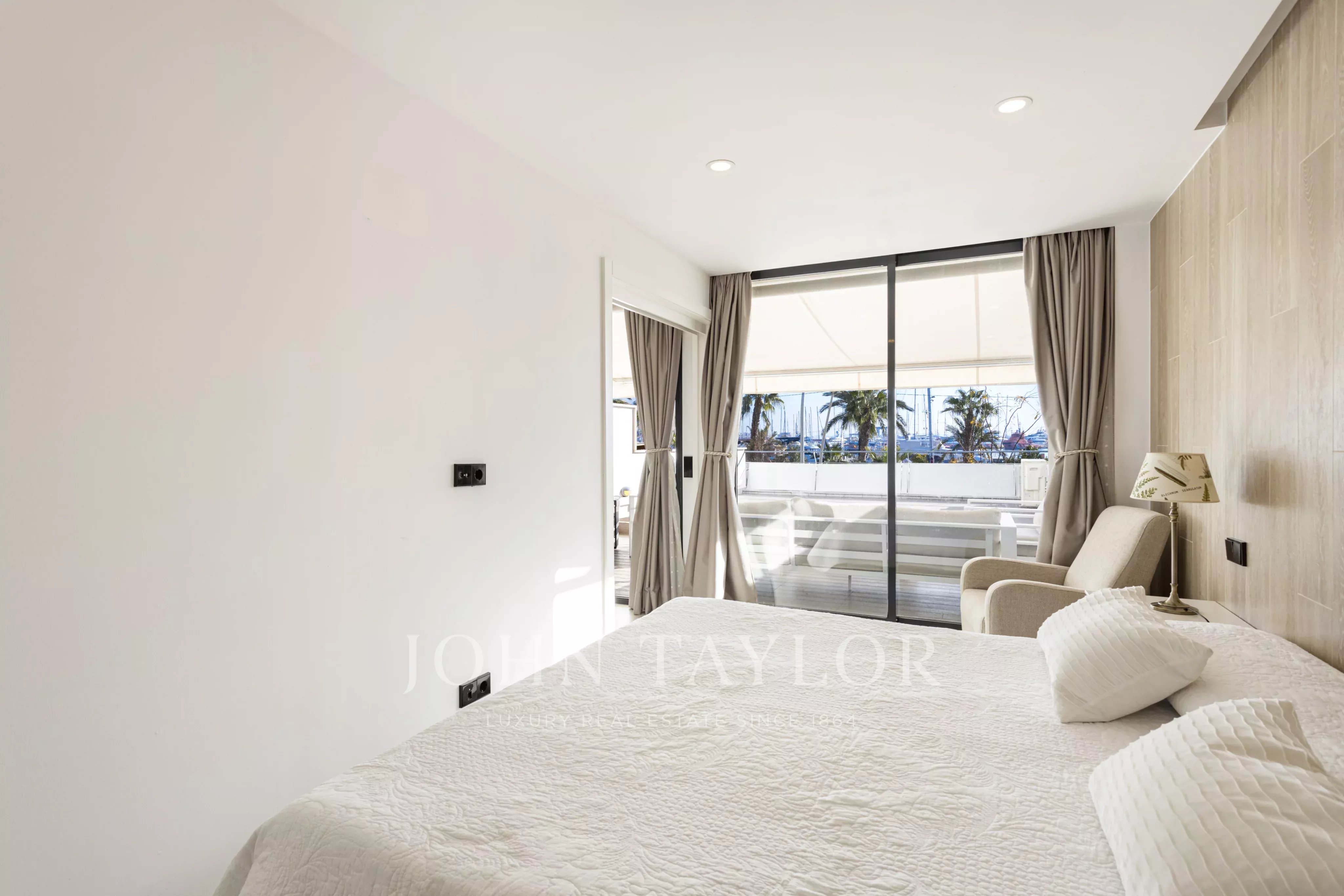 Este excecional apartamento de 123 m² oferece vistas deslumbrantes sobre o mar e o porto e goza de uma orientação virada para leste, enchendo o espaço com luz natural da manhã. Recentemente reformado com um alto padrão, a propriedade combina o conforto moderno com uma localização imbatível.