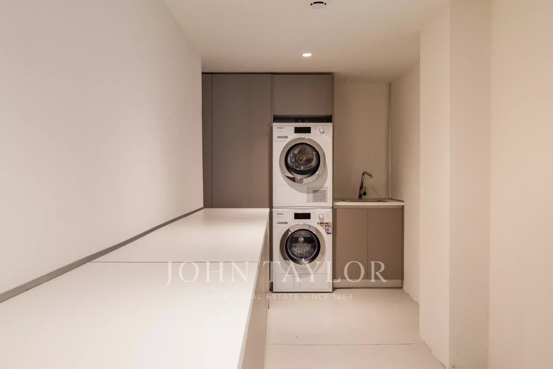 Os extras adicionais incluem: Electrodomésticos Miele Premium, televisores LG e um sistema de som Bang & Olufsen, ar condicionado e piso radiante, pré-instalação para sistema de casa inteligente, sistemas de alarme contra roubo e incêndio, janelas com vidros duplos, acesso por elevador e estacionamento privado com estação de carregamento EV.