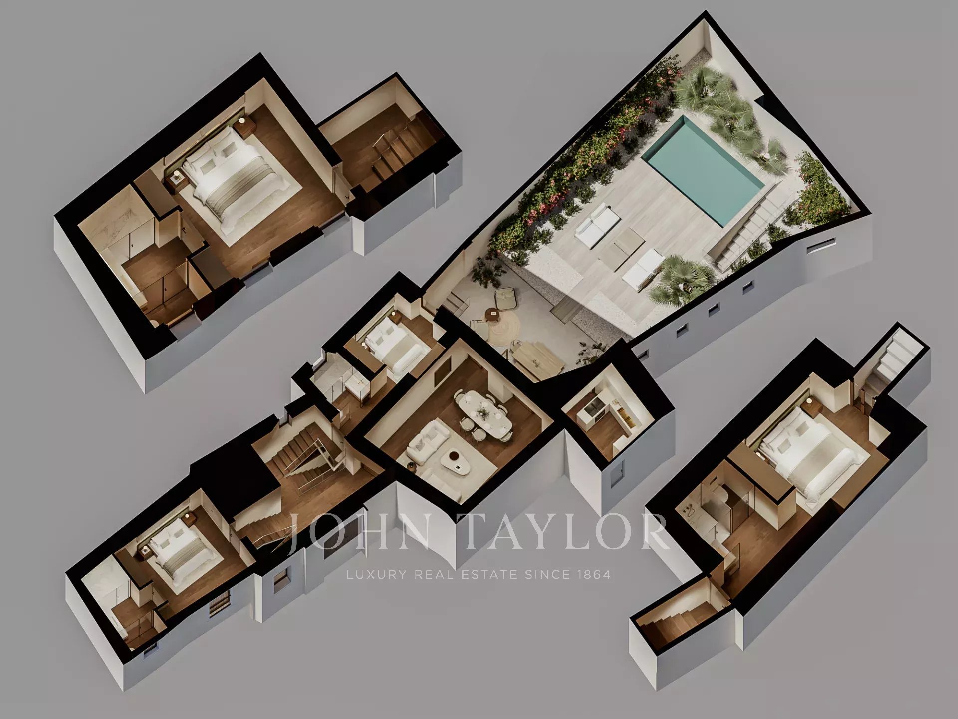 O edifício está a ser alvo de uma renovação abrangente, com conclusão prevista para setembro de 2026. O projeto centra-se na preservação da sua história, ao mesmo tempo que se adapta ao conforto moderno, ao estilo e à vida de alta qualidade. Este apartamento duplex no rés do chão oferece 323 m2 com quatro quartos, cada um com uma casa de banho privativa, um lavatório para hóspedes, uma sala de estar/jantar com acesso direto à área exterior, uma cozinha separada feita à medida com electrodomésticos Miele, também com acesso ao alpendre exterior coberto, jardim paisagístico e piscina privada, totalizando 112 m2. O apartamento inclui aquecimento por piso radiante, ar condicionado central, vidros duplos, pavimento em carvalho e uma arrecadação separada.