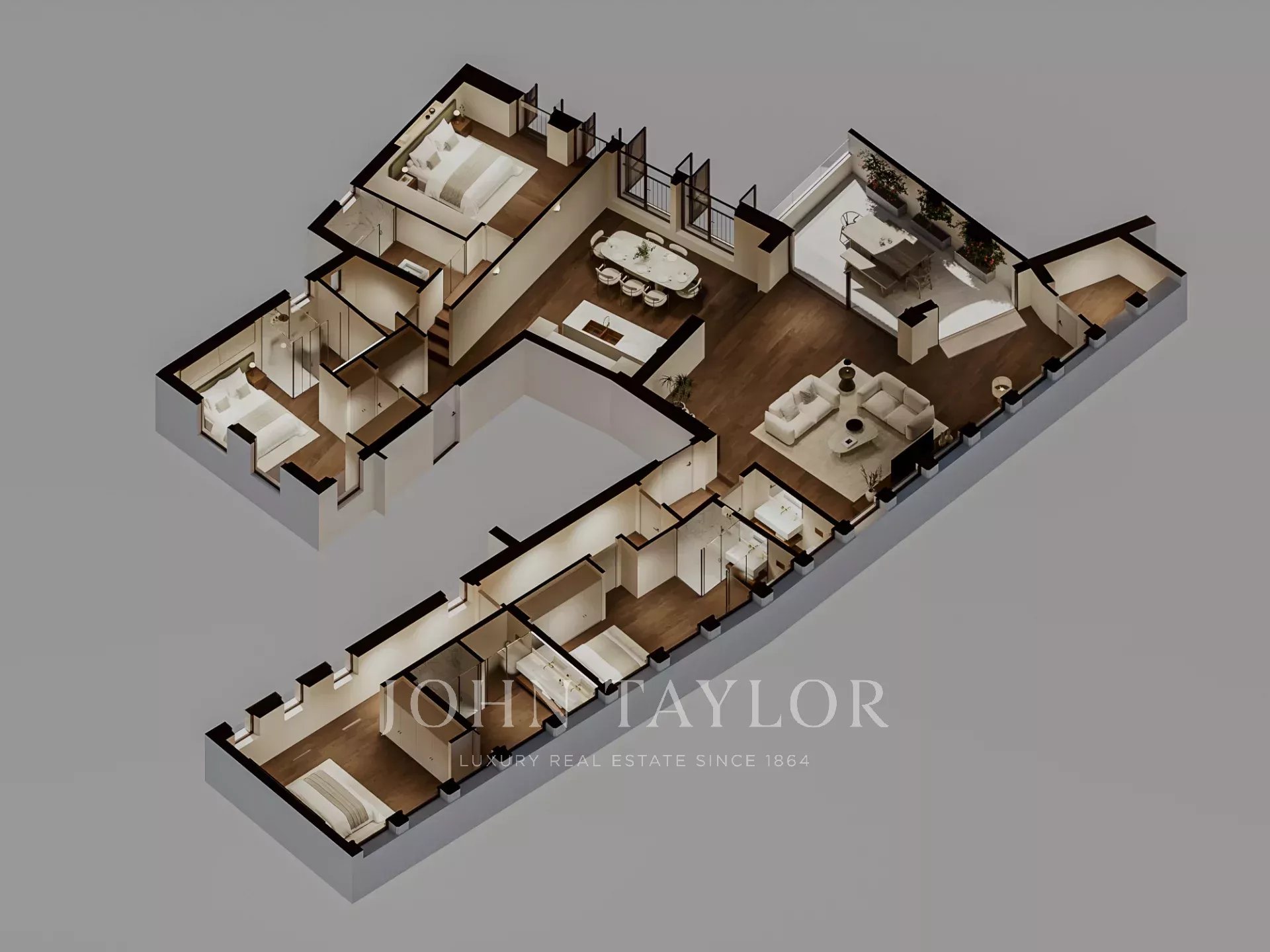 O edifício está a ser alvo de uma renovação abrangente, com conclusão prevista para setembro de 2026. O projeto centra-se na preservação da sua história, adaptando-se ao conforto moderno, ao estilo e à vida de luxo. Este apartamento de cobertura no segundo andar oferece 243 m² com uma cozinha de design em plano aberto, feita à medida, com electrodomésticos Miele, uma área de refeições e uma sala de estar que dá para o exterior, bem como um terraço acolhedor de 17 m² que oferece vistas espectaculares diretas para a Catedral. Tem quatro quartos, cada um com uma casa de banho privativa e um lavatório para hóspedes, uma lavandaria e uma despensa. O apartamento inclui aquecimento por piso radiante, ar condicionado central, vidros duplos, pavimento em carvalho e uma arrecadação separada.