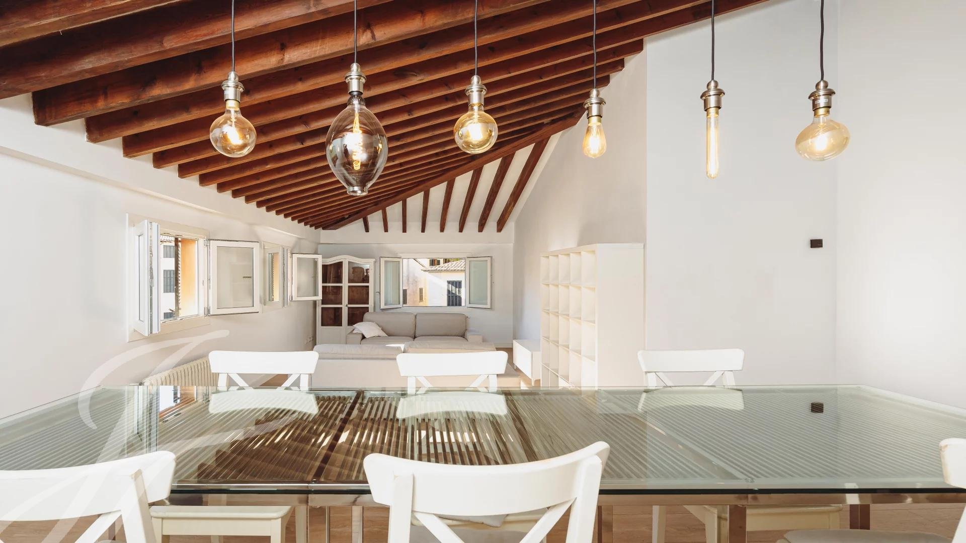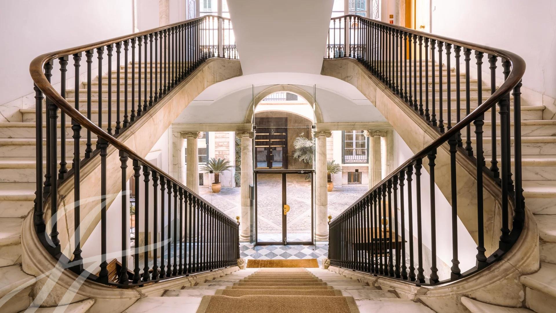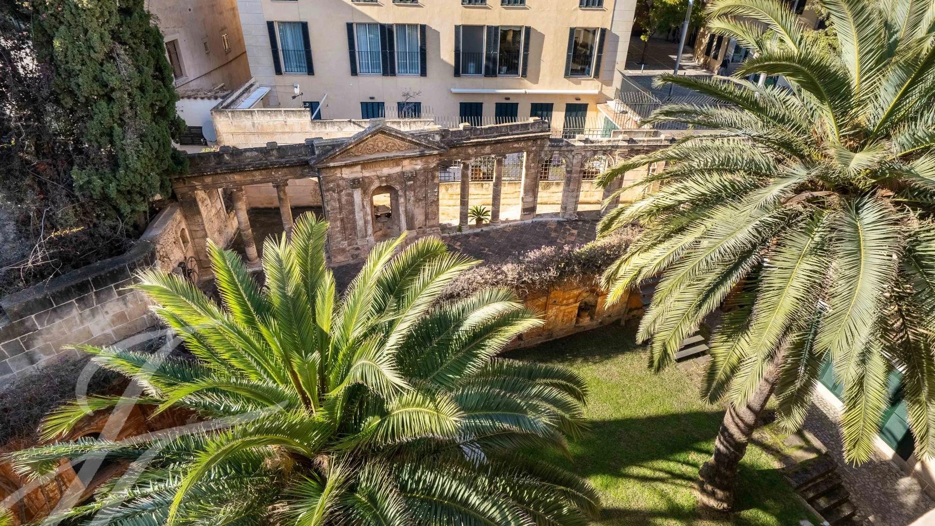 Situado numa das ruas mais prestigiadas de Palma, mesmo à saída de El Born, garante o máximo de conforto para a vida quotidiana. Este edifício residencial de importância histórica é verdadeiramente uma joia e raro de se ver. A sua entrada imponente e a magnífica escadaria são uma demonstração da sua grandeza, que aumenta com o terraço comum e a área de jardim, com alguns elementos de pedra preservados espectaculares. A propriedade no terceiro andar oferece 3 quartos, 3 casas de banho, uma cozinha totalmente equipada, uma área de lavandaria e uma sala de estar em dois níveis. É completada por um lugar de garagem e uma arrecadação.