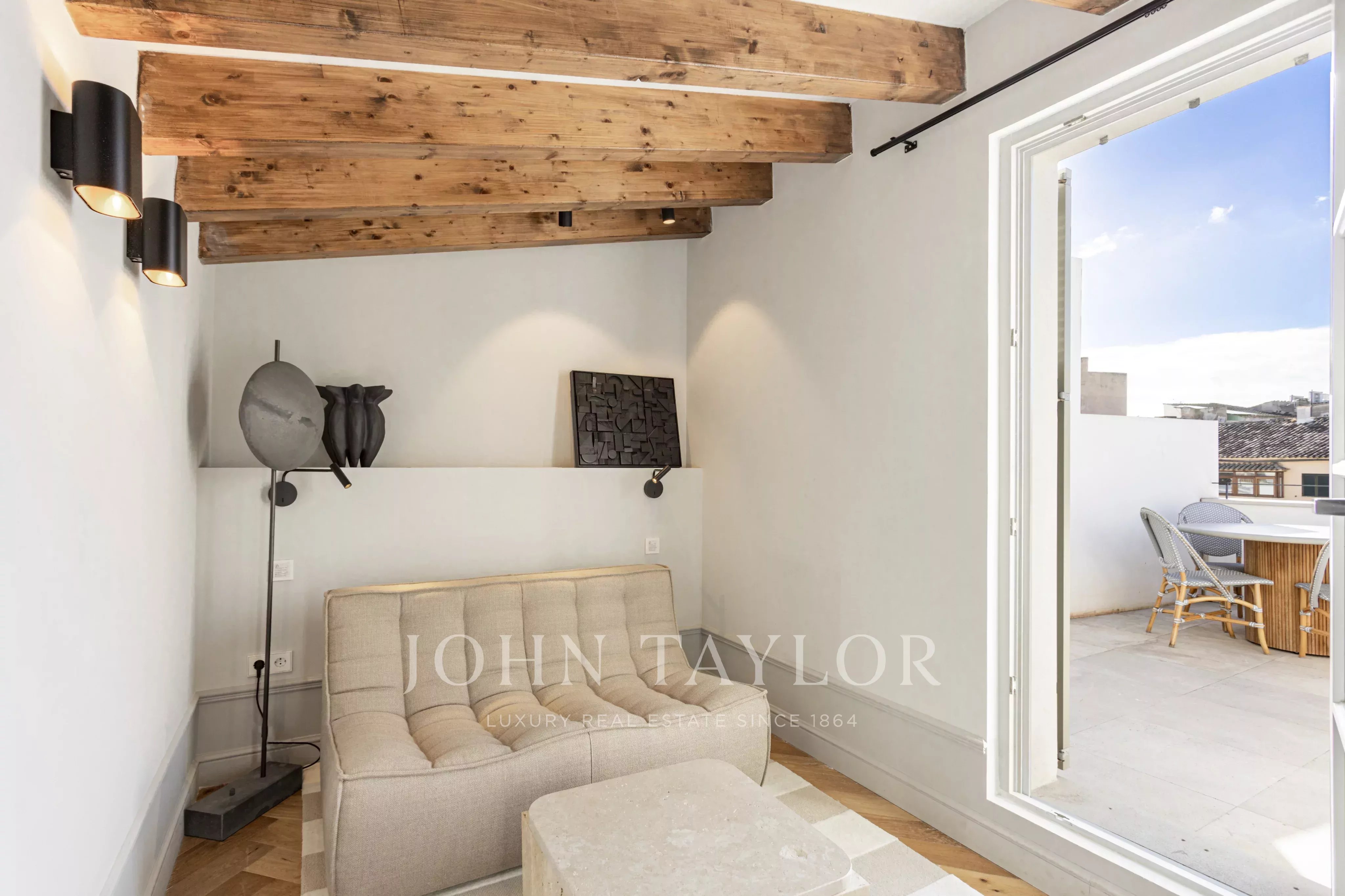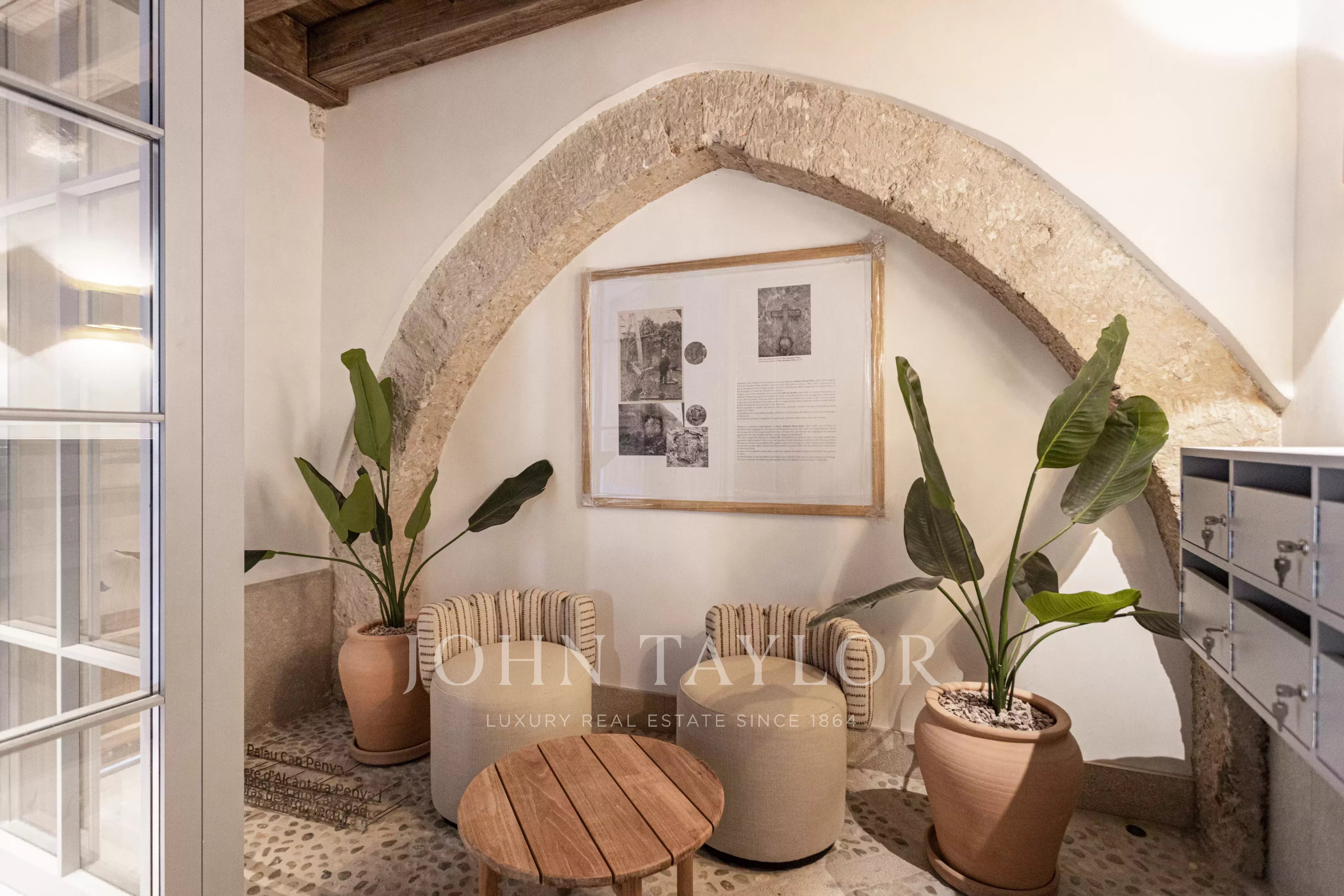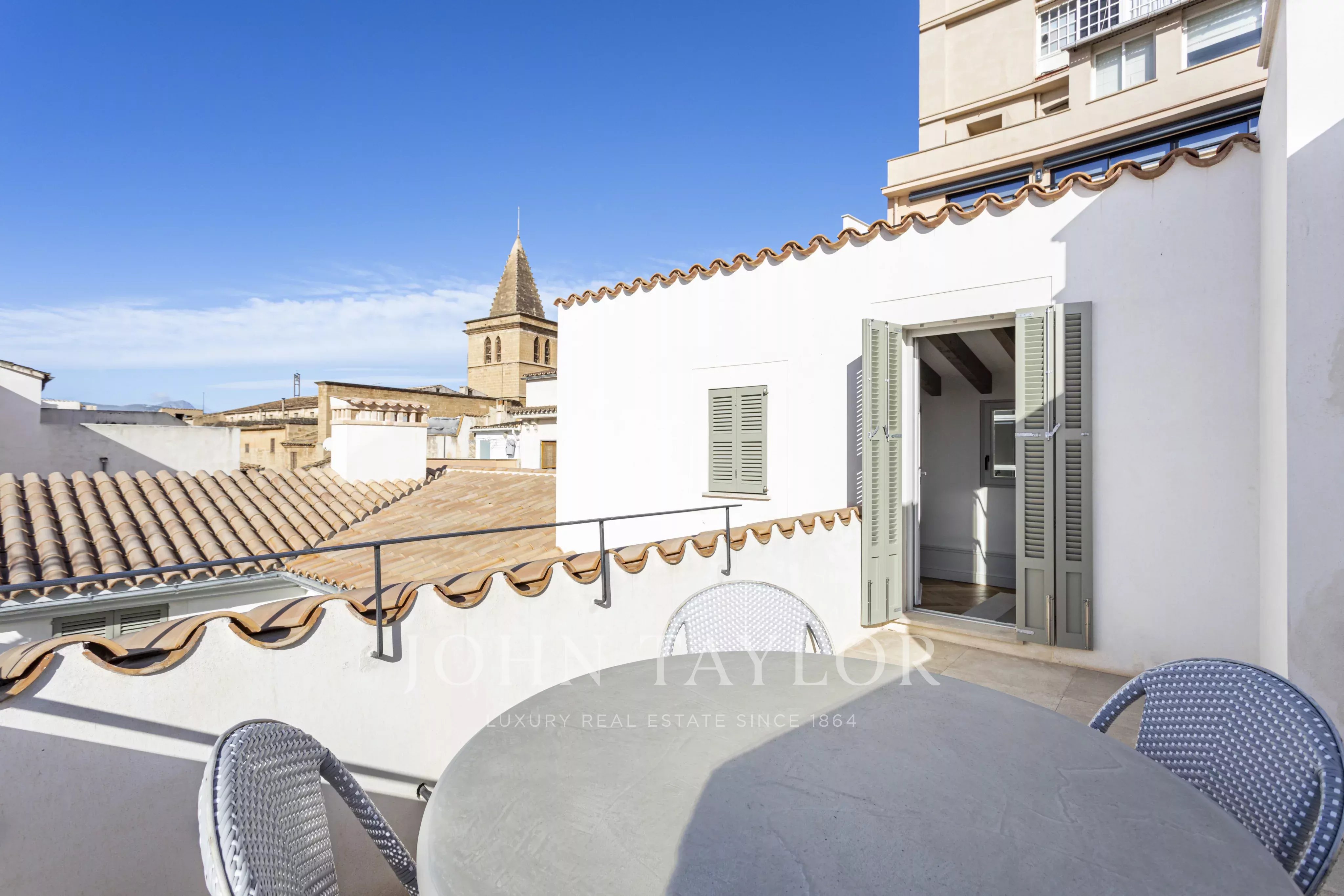 Localizada no coração da Cidade Velha de Palma de Maiorca, esta exclusiva penthouse duplex combina o encanto histórico com o conforto contemporâneo, oferecendo acesso direto e privado por elevador à propriedade.