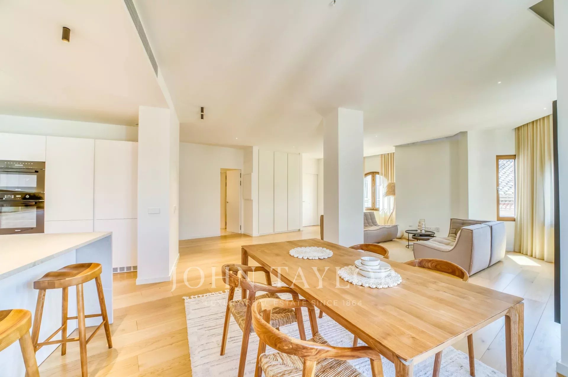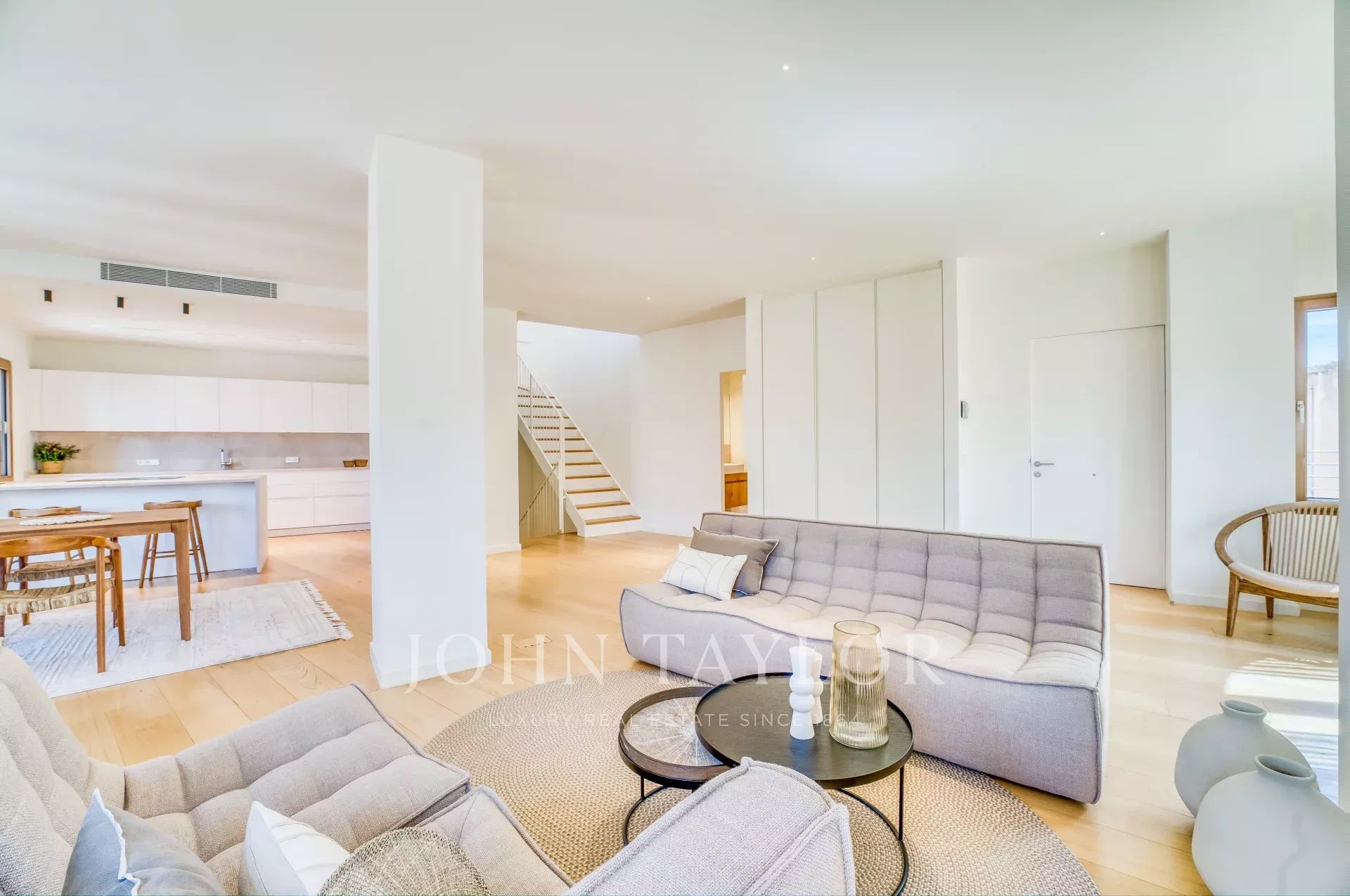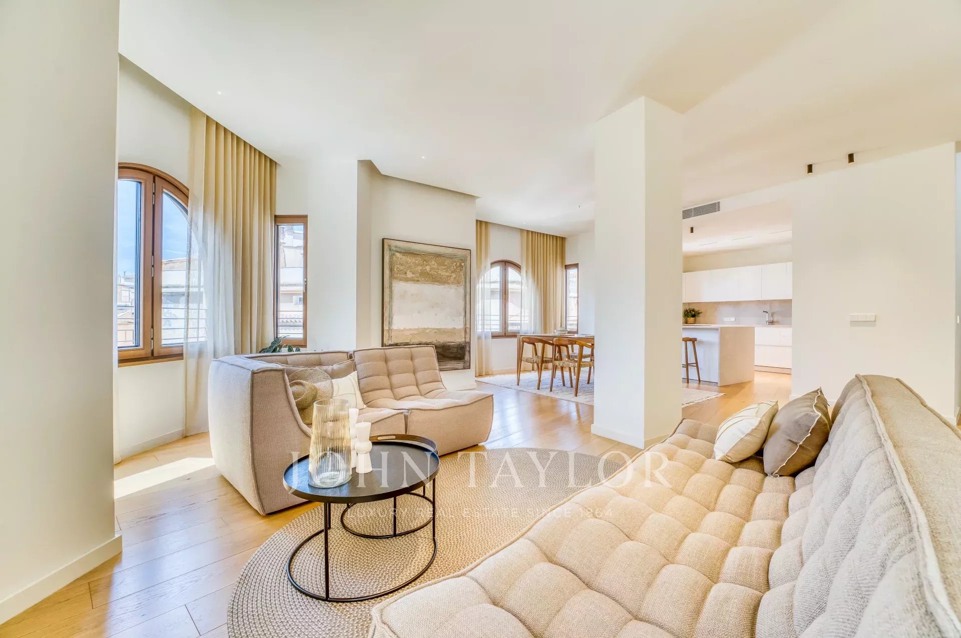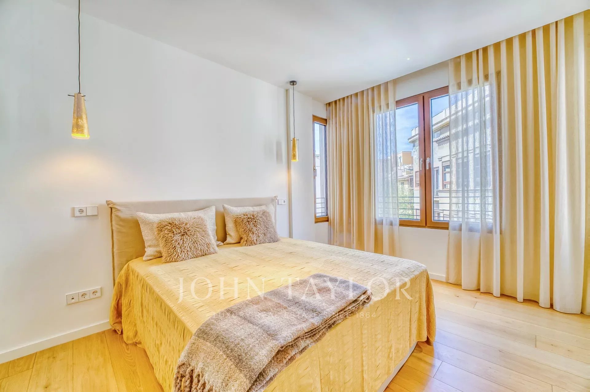 Situada numa praça tranquila no coração da cidade velha de Palma, esta luxuosa penthouse duplex é composta por dois quartos, três casas de banho (duas en-suite, uma casa de banho de hóspedes), uma lavandaria, bem como um terraço único no telhado. Enquanto o nível de entrada oferece uma ampla planta aberta para a cozinha/jantar/área de estar, os quartos criam uma privacidade tranquila no nível inferior. As grandes janelas personalizadas, o pavimento em madeira e os tons quentes no interior asseguram um ambiente acolhedor em todas as divisões. Um verdadeiro destaque da propriedade é o terraço privado no telhado com uma torre espetacular, que é acessível diretamente através do apartamento. A partir daqui, pode desfrutar de vistas panorâmicas sobre a cidade velha e o mar. Para seu conforto, toda a penthouse está equipada com aquecimento por piso radiante, ar condicionado e domótica. Se necessário, pode ser adquirido adicionalmente um estacionamento em garagem no mesmo edifício.