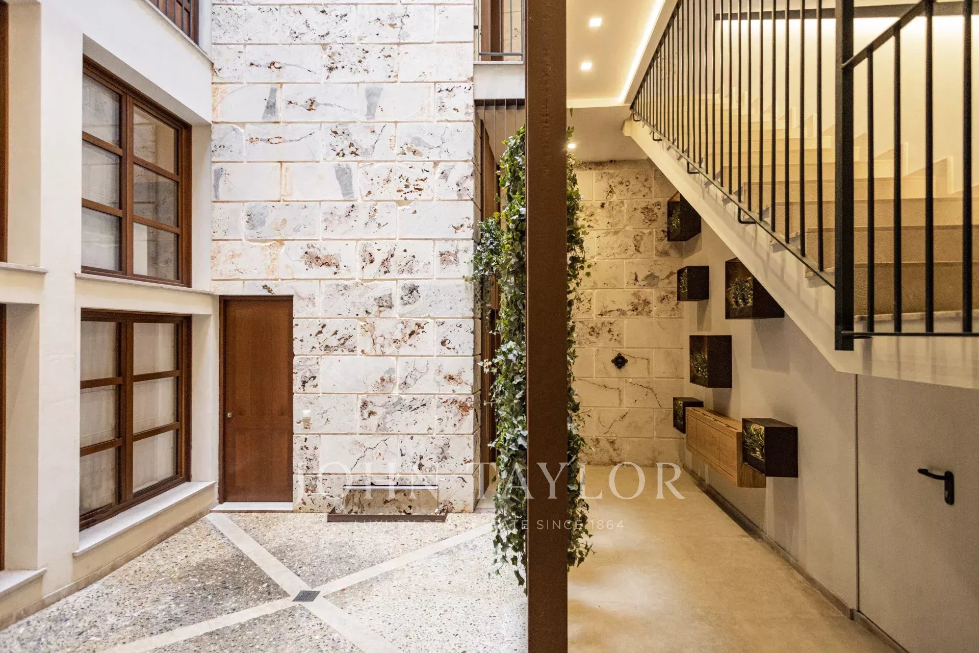 Apresentamos-lhe uma joia requintada, situada no coração do centro histórico de Palma. Descubra o encanto deste edifício meticulosamente restaurado, perfeitamente situado numa rua encantadora do centro histórico de Palma, devido à sua proximidade com o Banco de Espanha. A penthouse situa-se no terceiro andar, ao qual se acede sem esforço por elevador. Entre na sala de estar/jantar em plano aberto, inundada de luz natural e adornada com uma cozinha contemporânea em plano aberto. Este espaço extraordinário possui uma lareira que acrescenta calor e ambiente. Com uma área de habitação de aproximadamente 120 m2, esta residência possui três quartos, cada um com casa de banho privativa. O quarto principal oferece um retiro de luxo sem paralelo, com acesso a um encantador pátio de 8 m2 no mesmo nível. Também tem uso exclusivo de um alpendre de 30 m2 e de um terraço de 30 m2. Os tons naturais e os toques de madeira permeiam o apartamento, criando uma atmosfera de serenidade acolhedora. A completar esta penthouse excecional está uma garagem espaçosa de 30 m2, diretamente ligada à área de entrada do edifício, elegantemente concebida. Este espaço versátil não só acomoda um carro grande, como também satisfaz as suas necessidades de arrumação.