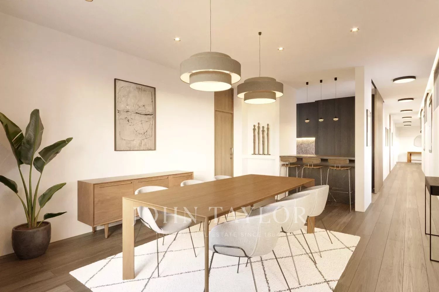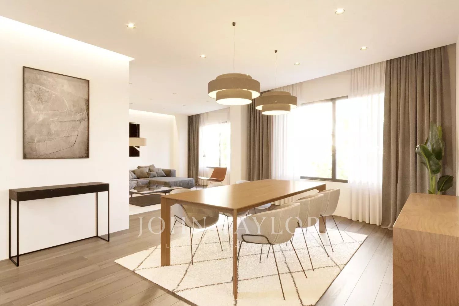 O projeto prevê um apartamento de 200 m2 com dois quartos espaçosos com casas de banho privativas, uma cozinha moderna, uma área de refeições, uma sala de estar acolhedora, um espaço de escritório e uma lavandaria. Embora o apartamento não tenha um terraço, possui grandes janelas em todas as divisões, garantindo uma abundância de luz natural em todo o espaço.